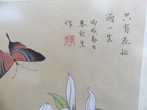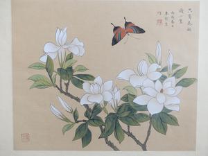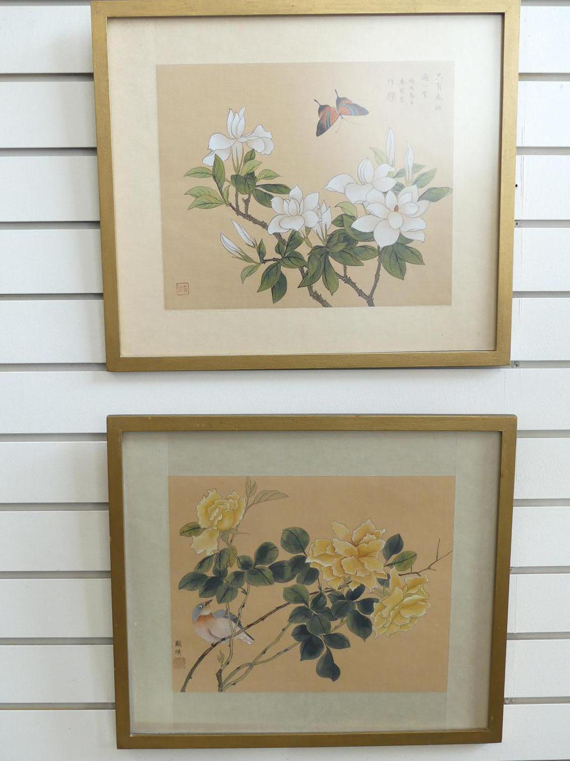 pair of chinese watercolours, 10" x 12", "flowering branches"