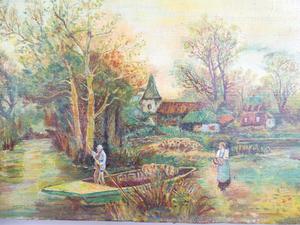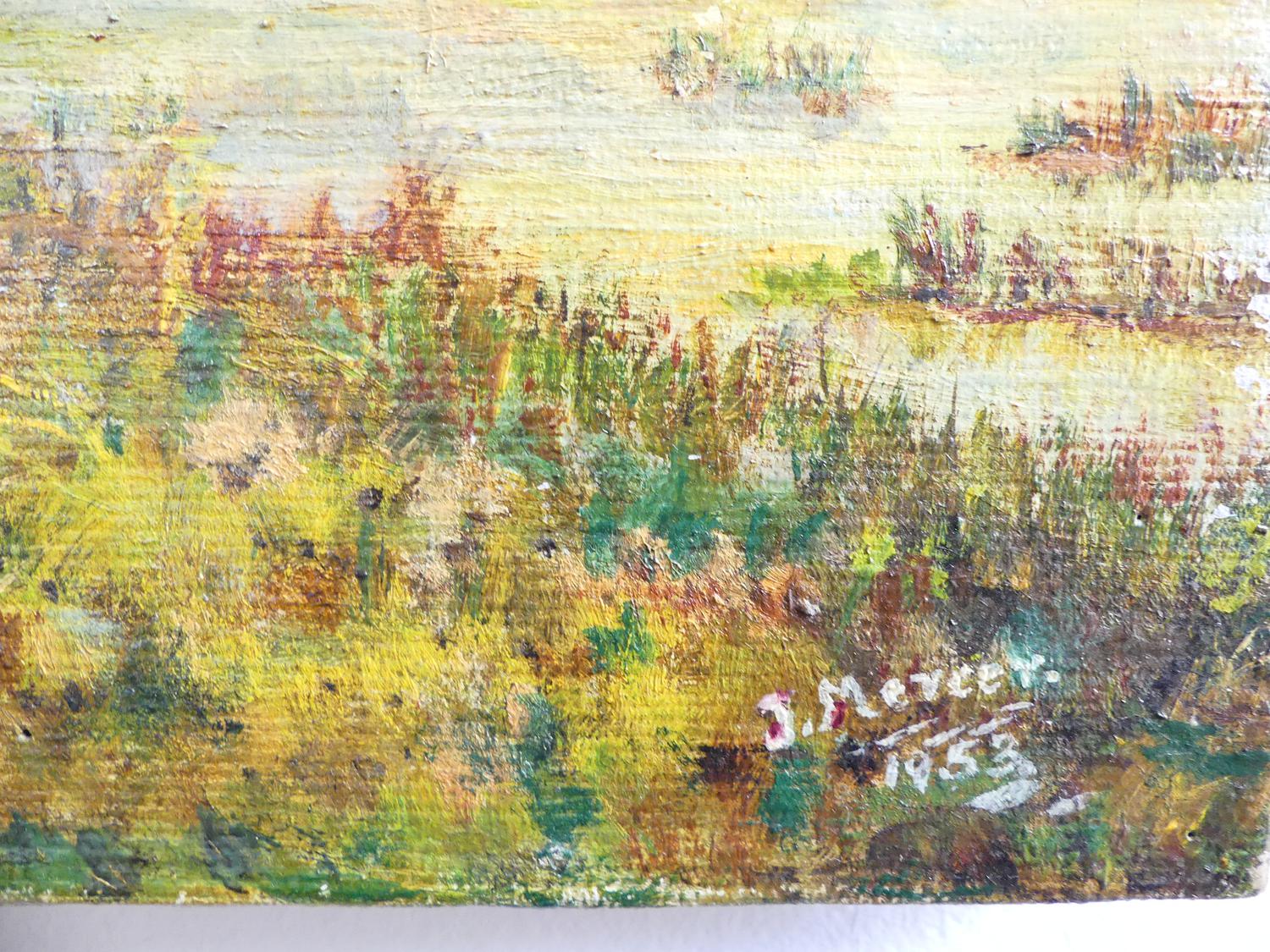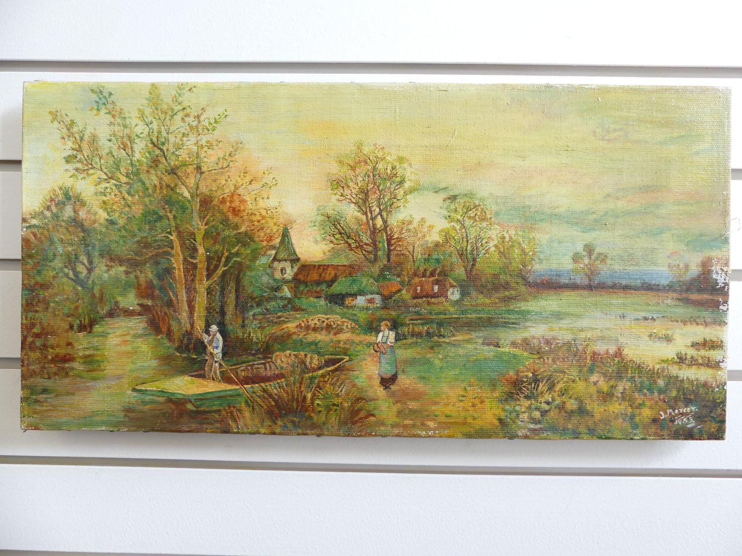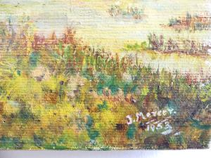 j. mercer, d.1953, oil on canvas, 10" x 20", "landscape with figures"