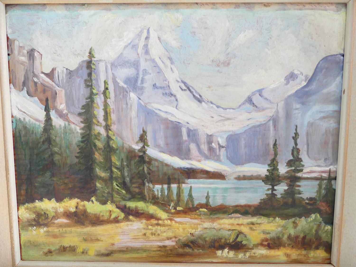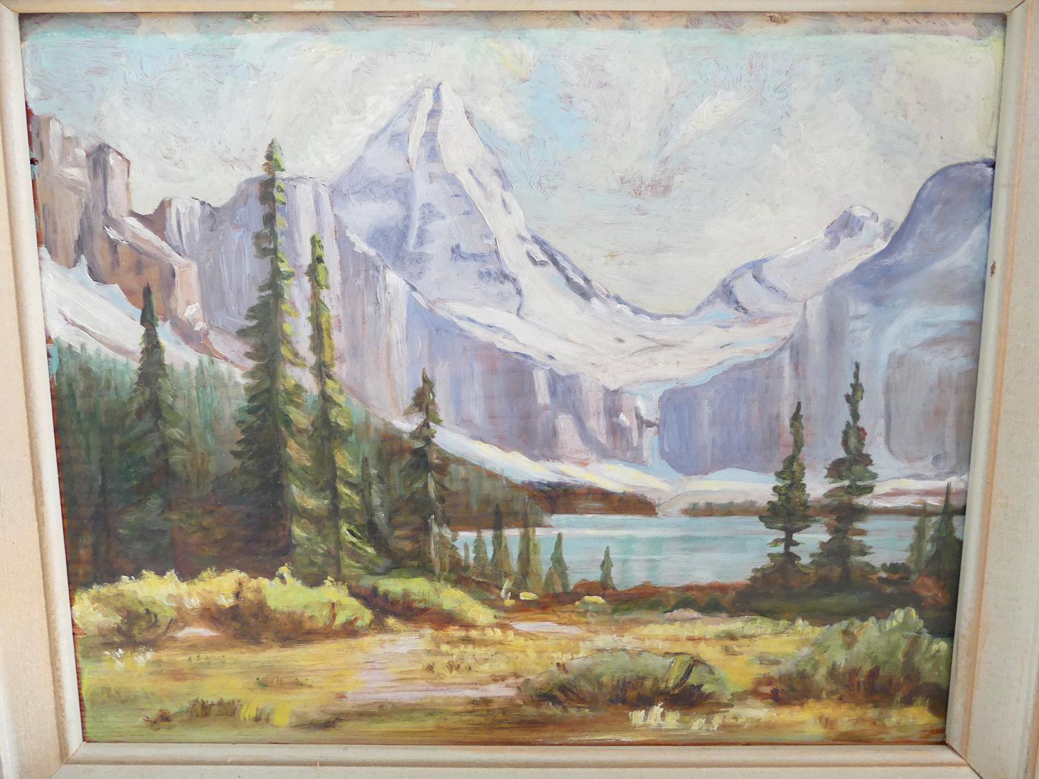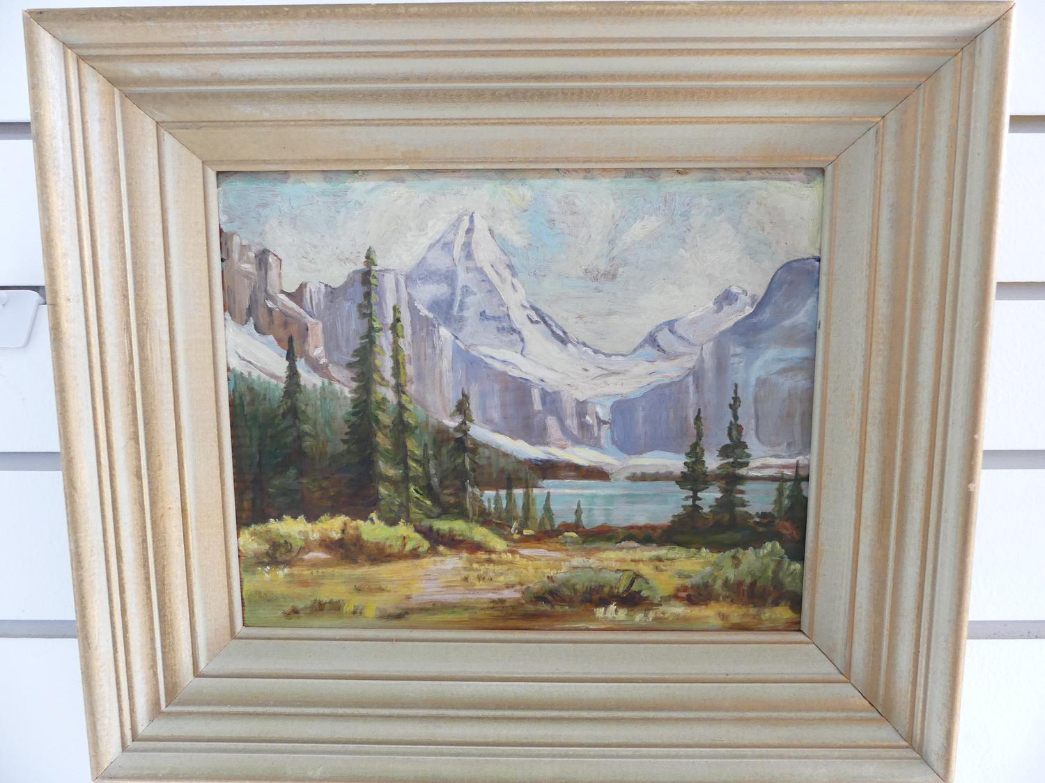 unsigned oil on panel, 8" x 10", "rocky mountain landscape"