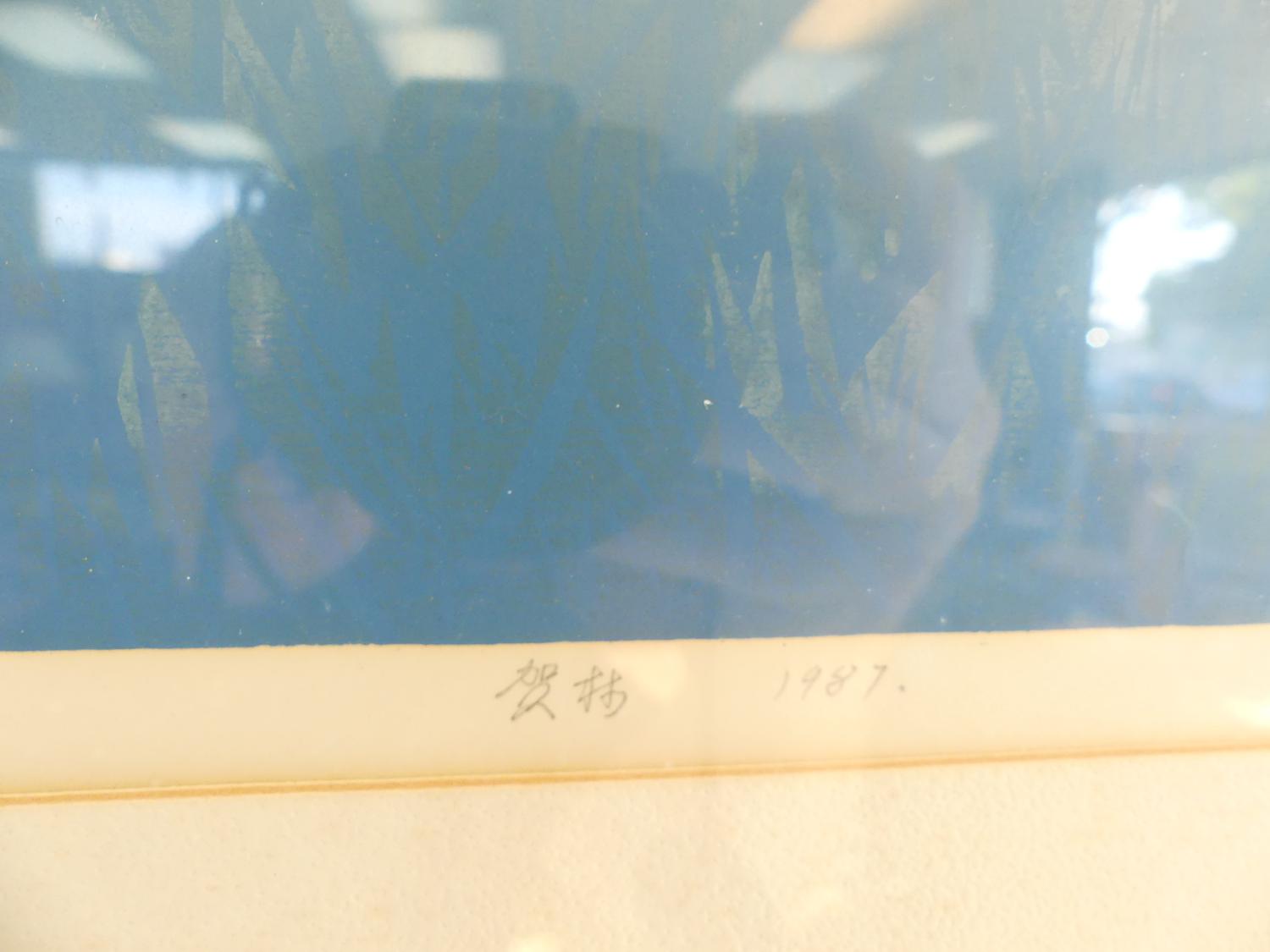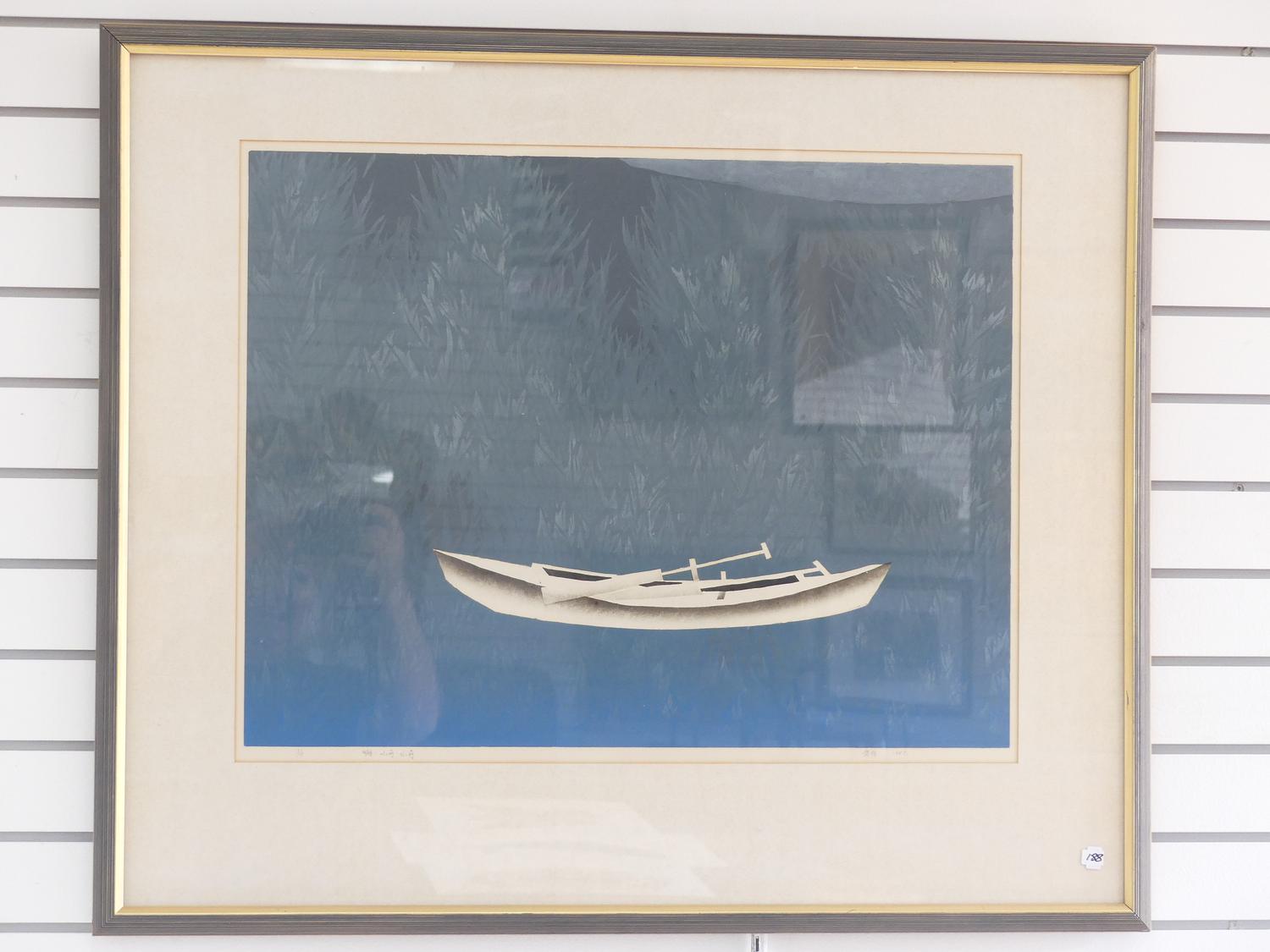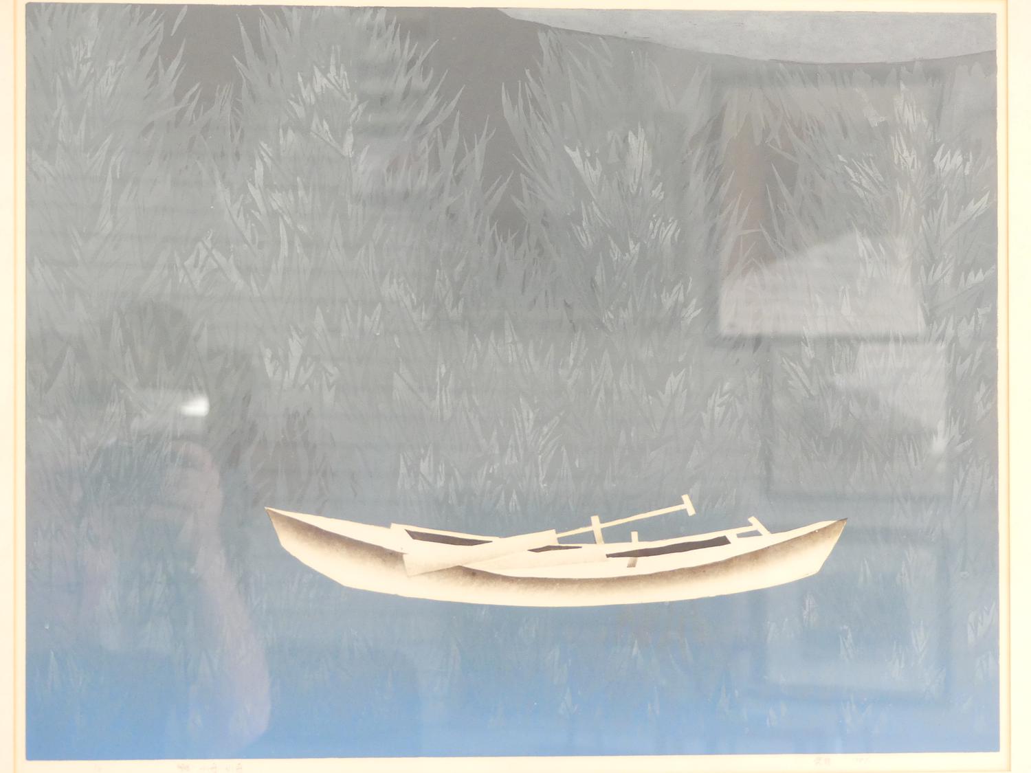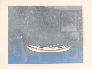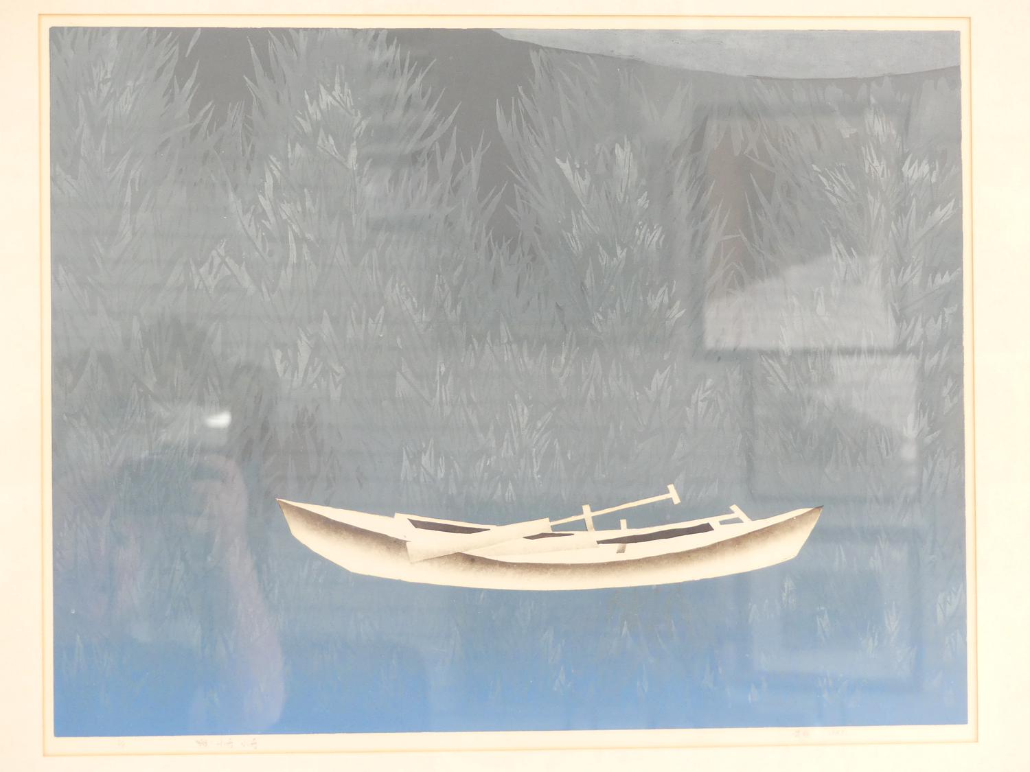 asian school d.1987, #3/9, 20" x 26", "canoe with trees"