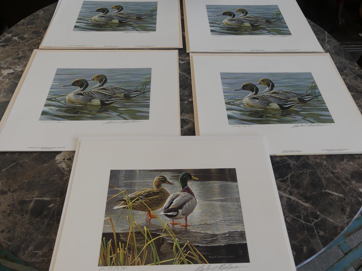 robert mclellan bateman (b. 1930), 5 limited edition prints, 12" x 4", "ducks"