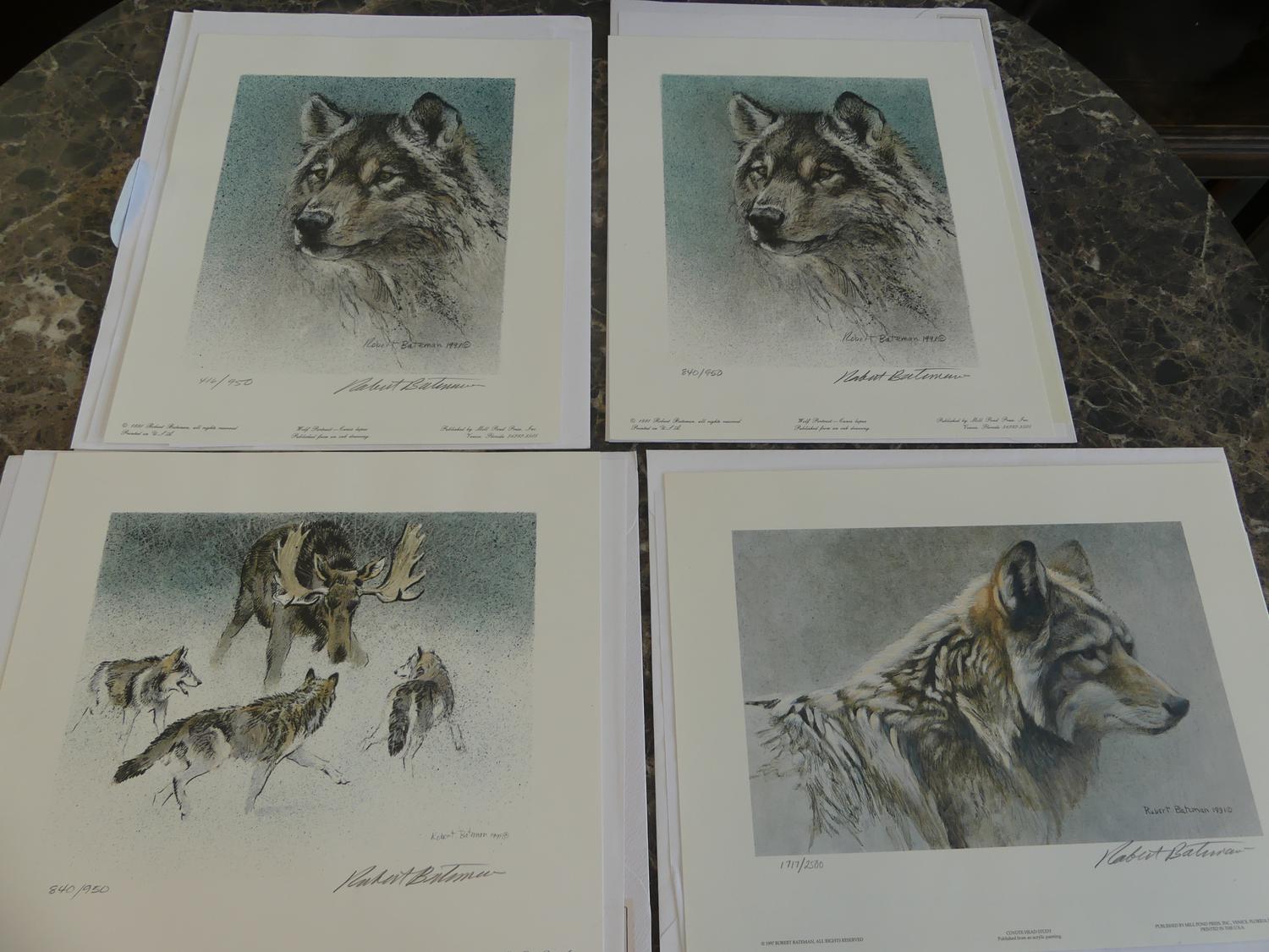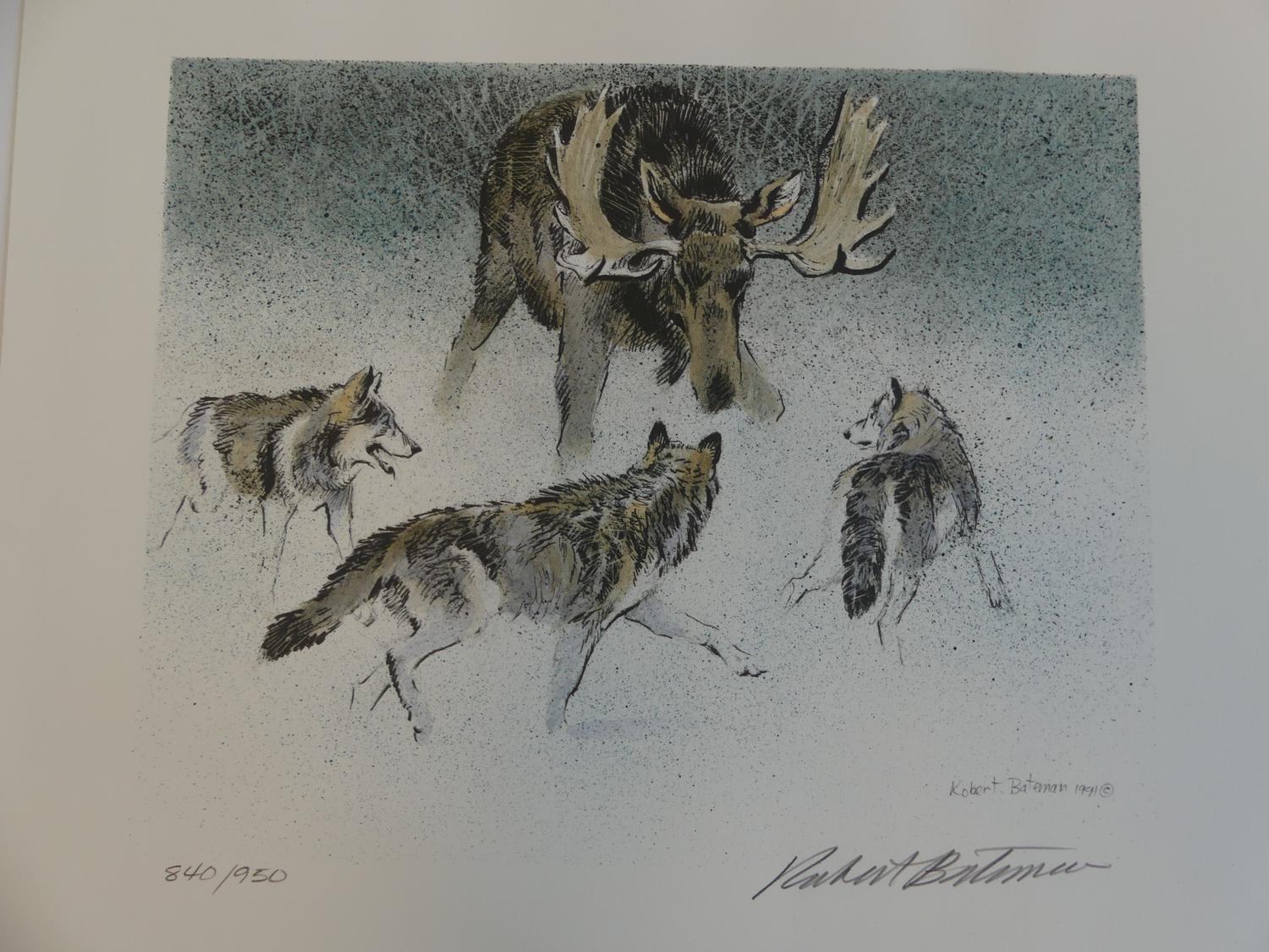robert mclellan bateman (b. 1930), 4 limited edition prints, 13 1/2" x 11", "wolves & moose"