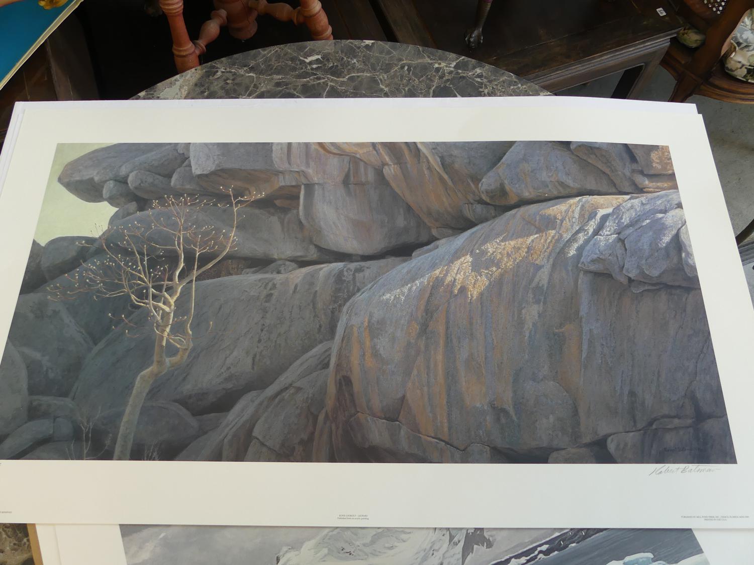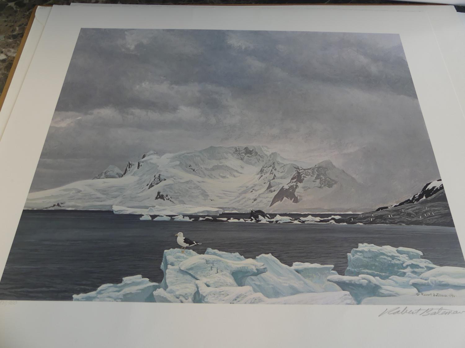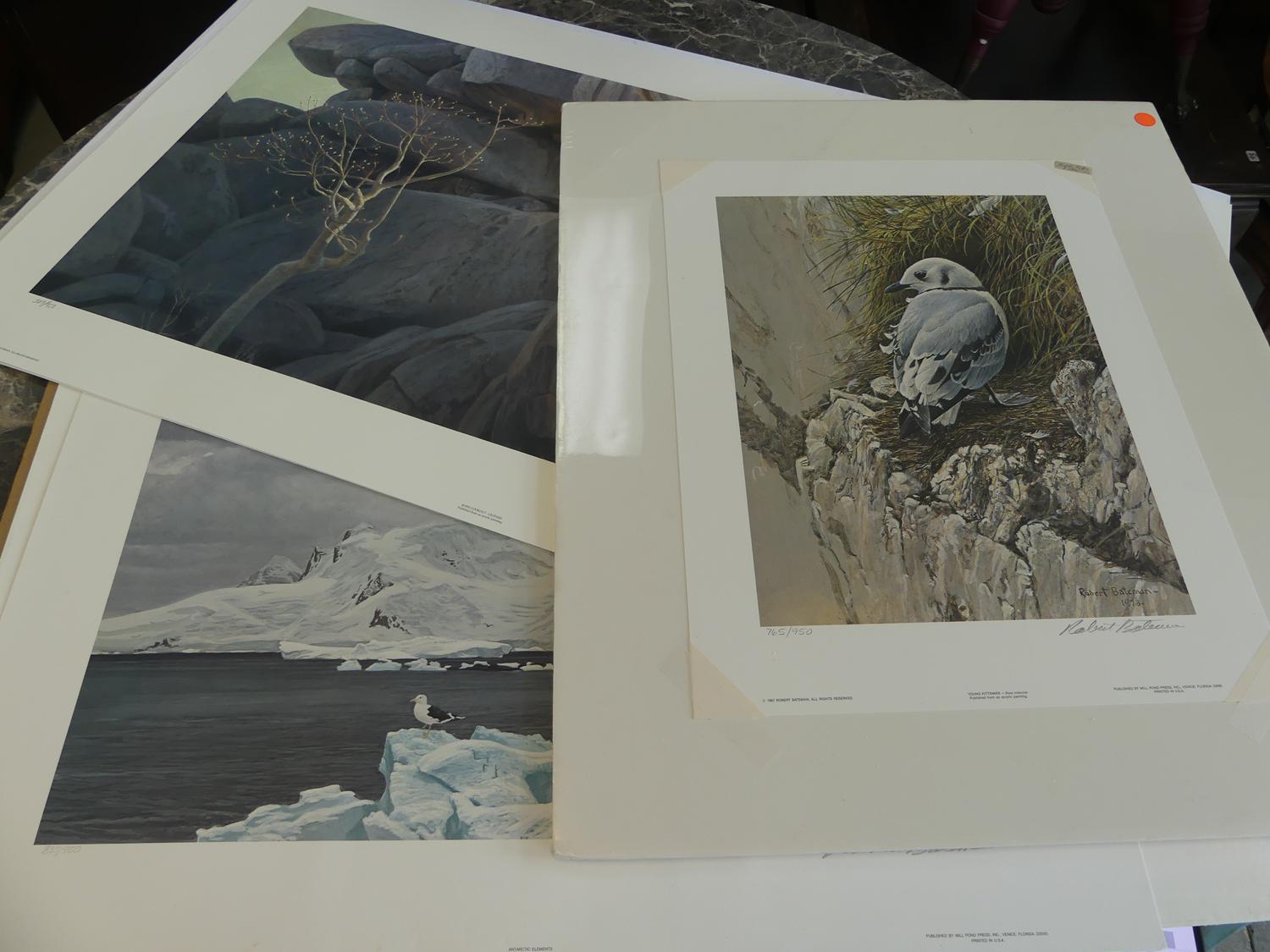 robert mclellan bateman (b. 1930), 3 limited edition prints, 21" x 37", "leopard, antarctica & bird"