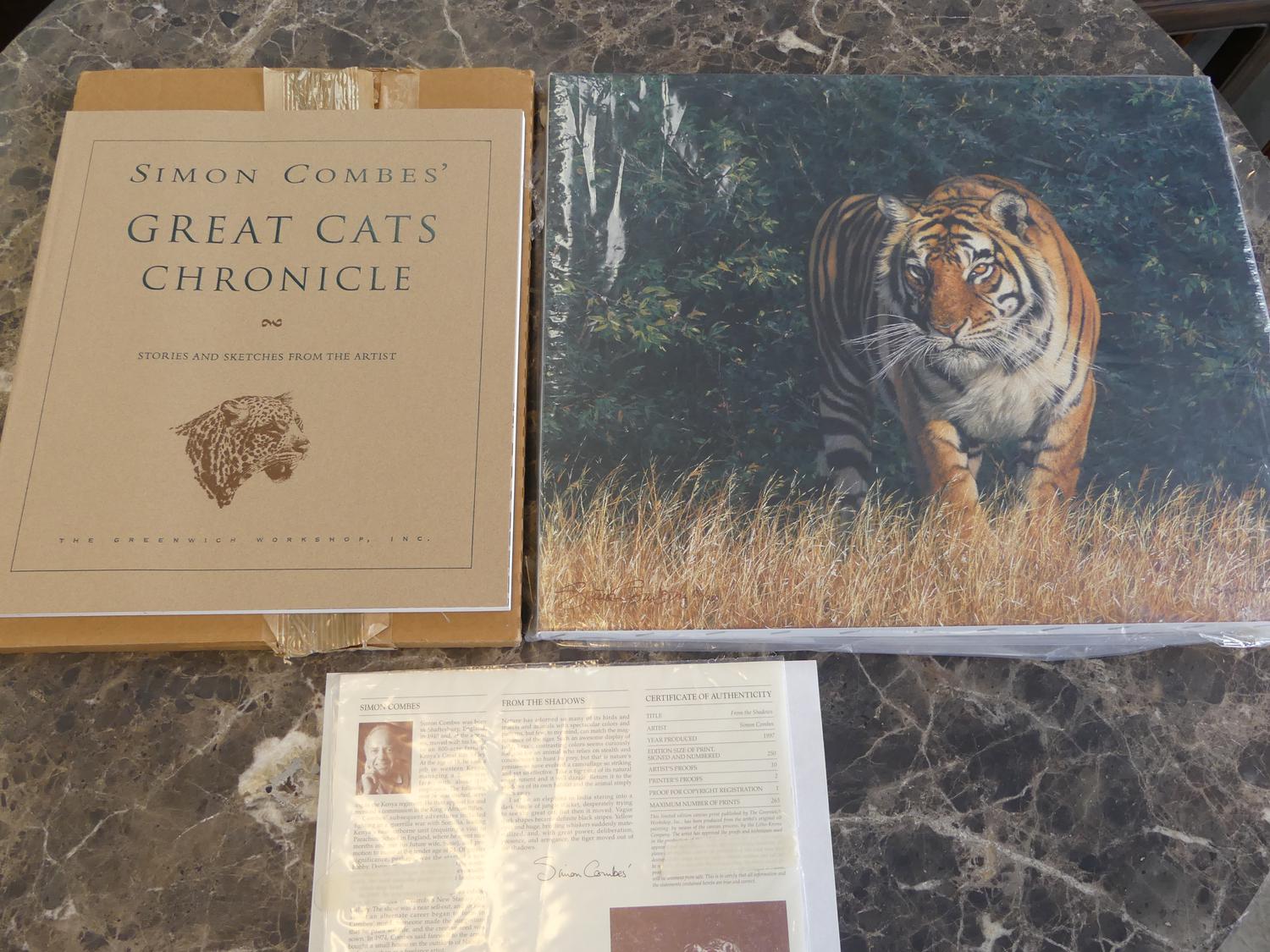 simon combes (1940-2004), limited edition canvas print, 15" x 18", "from the shadows" together with a limited edition book.