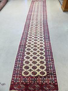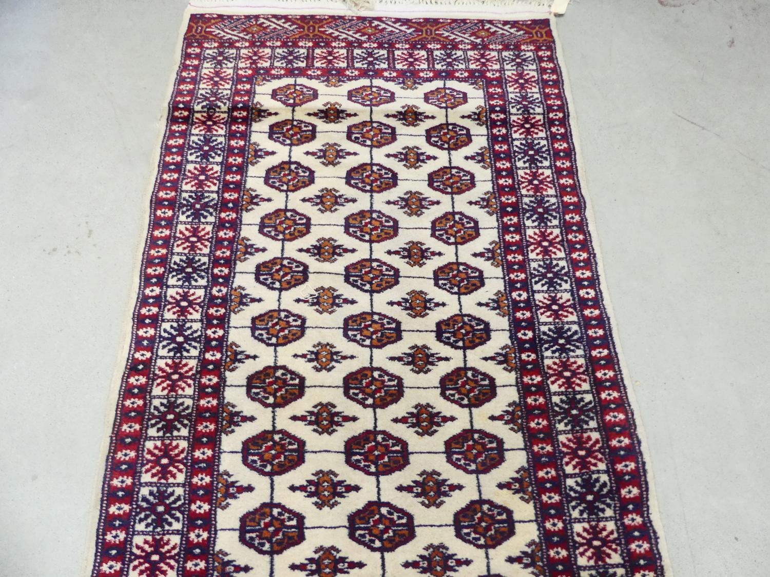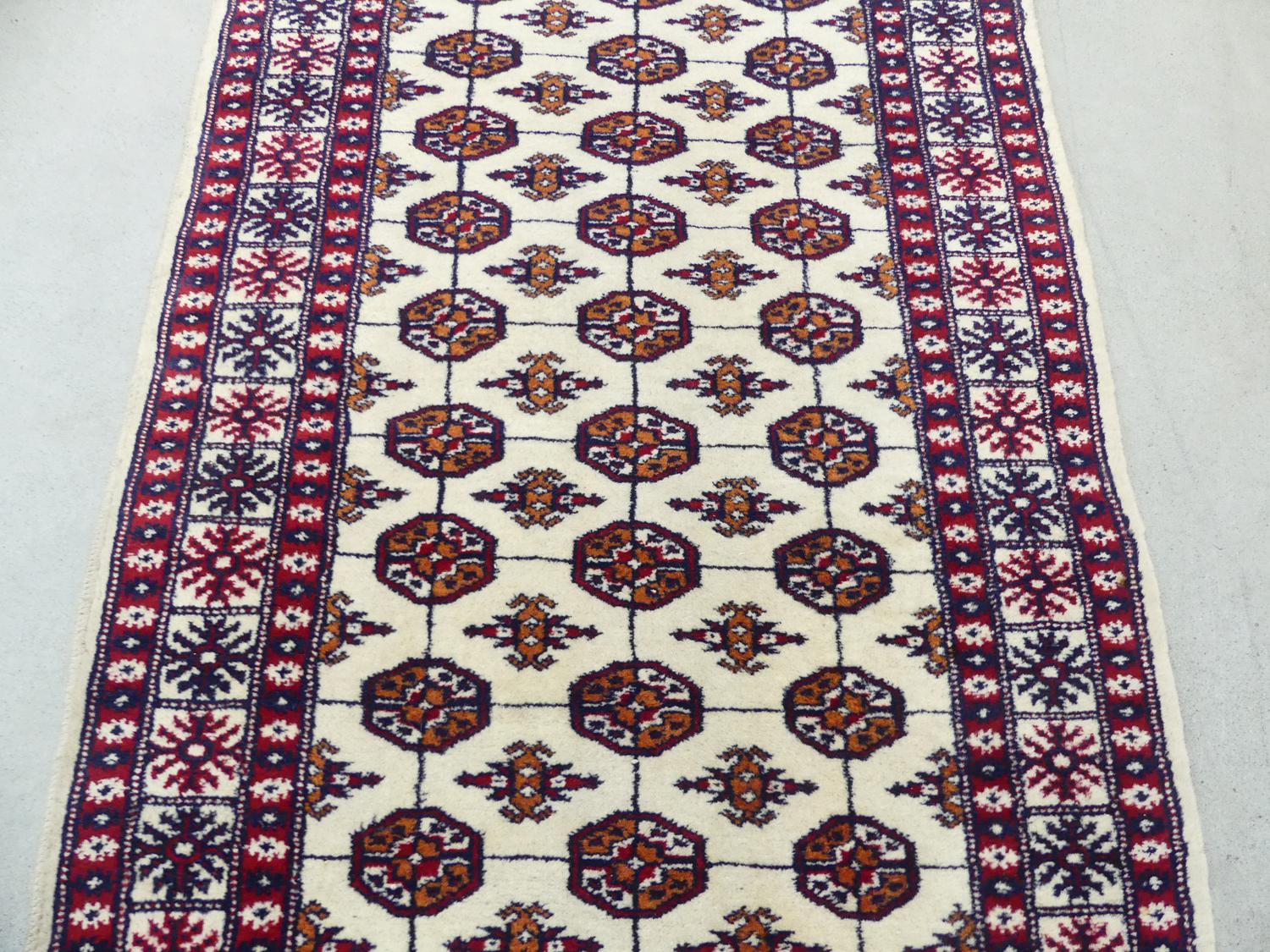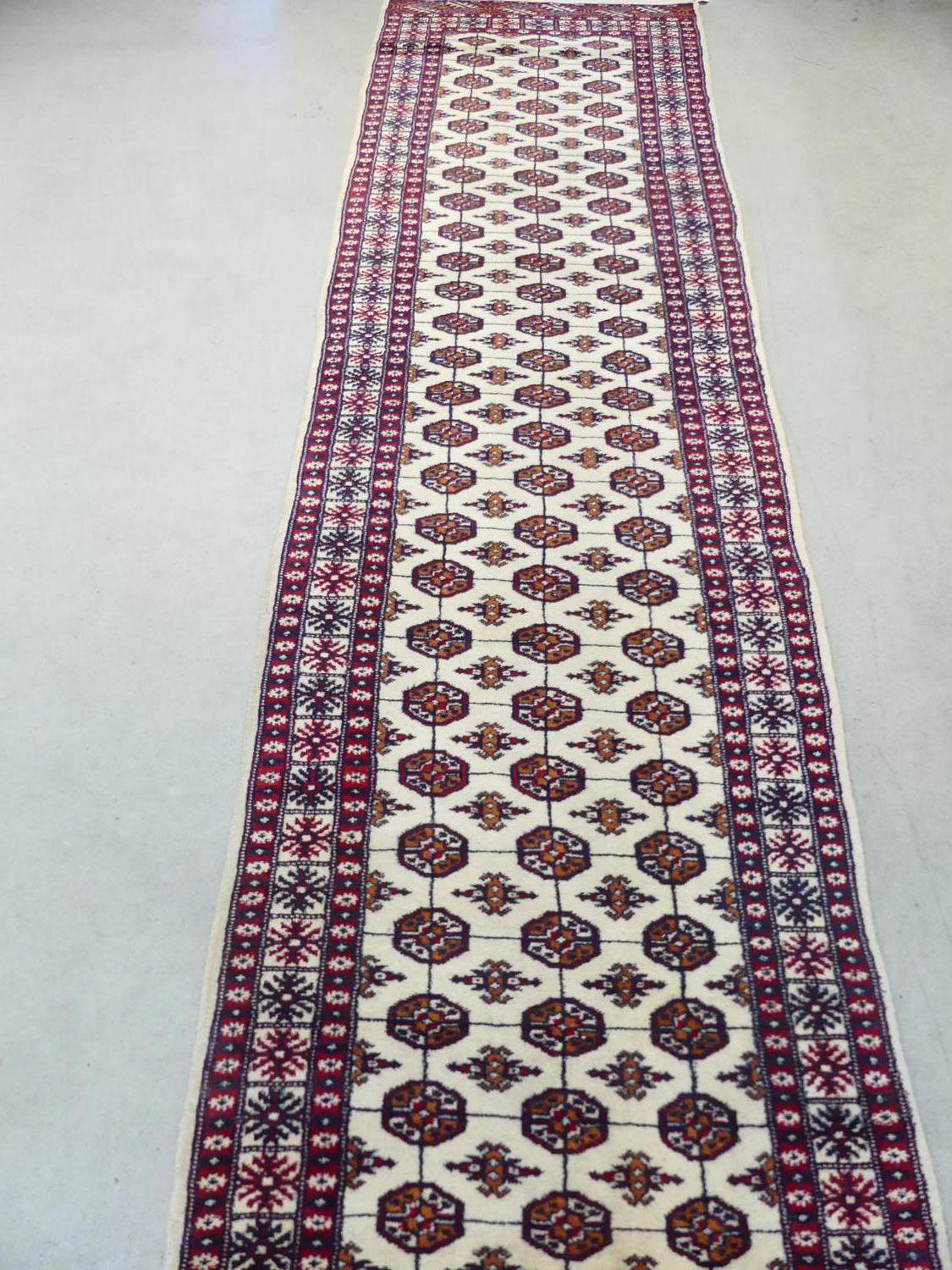ivory bokhara runner, pakistani late 20th century, 15'4" x 2'8"