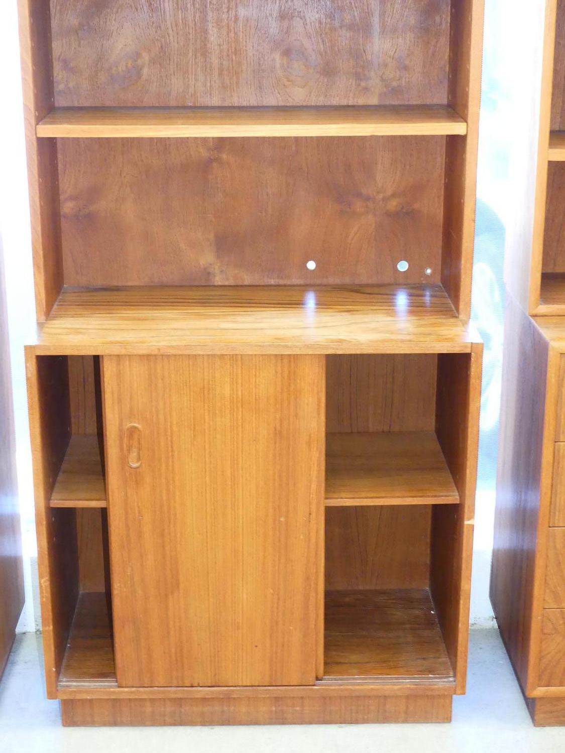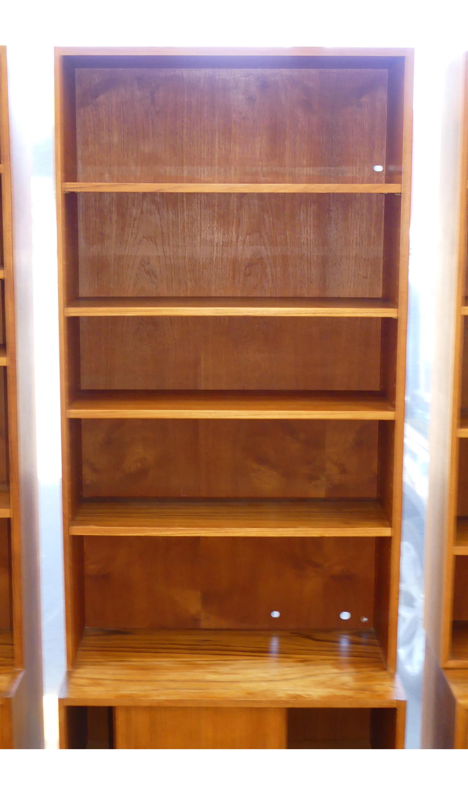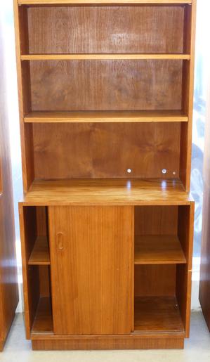 teak bookcase cabinet, 84" x 30" x 15 1/2"
