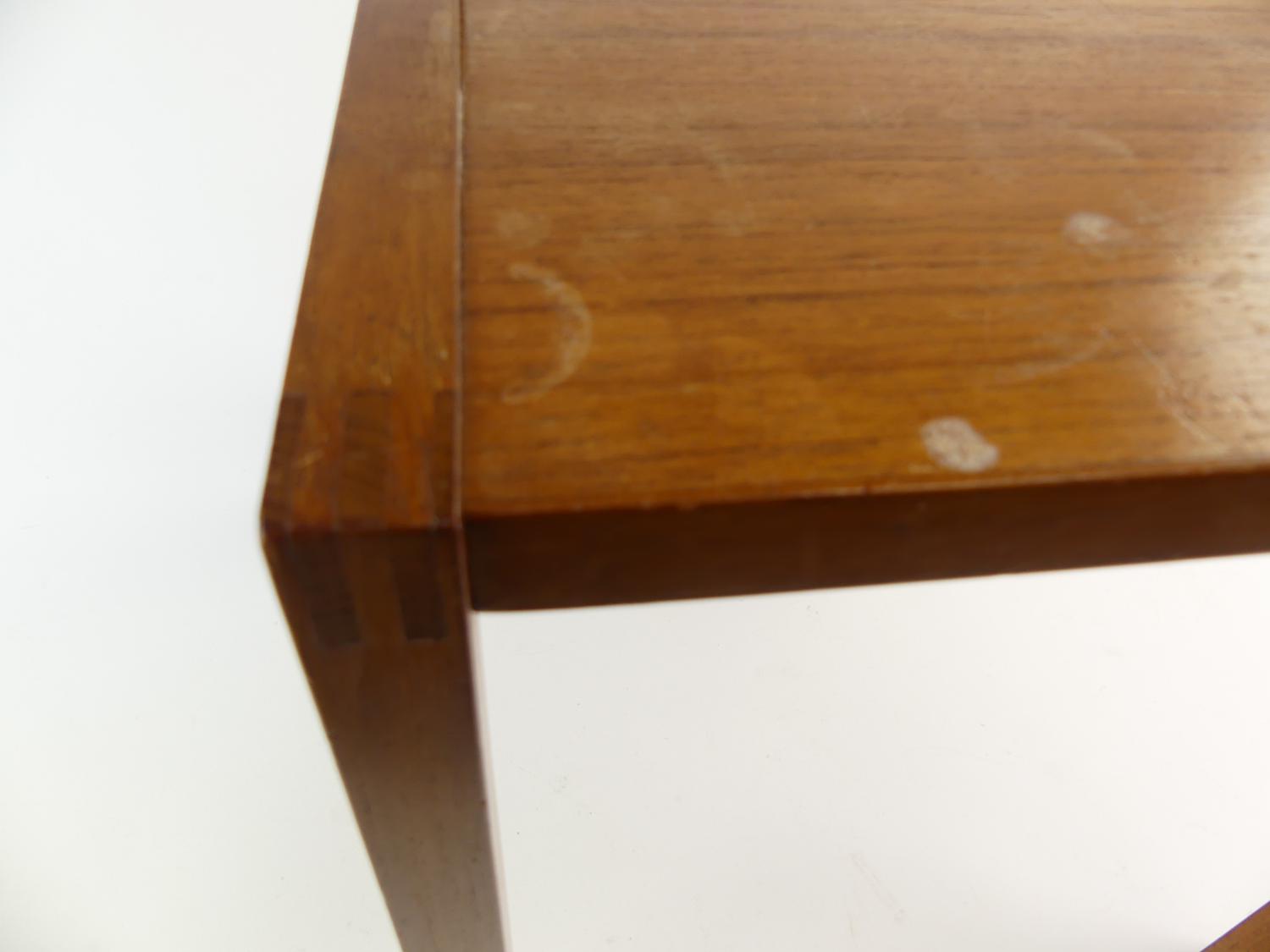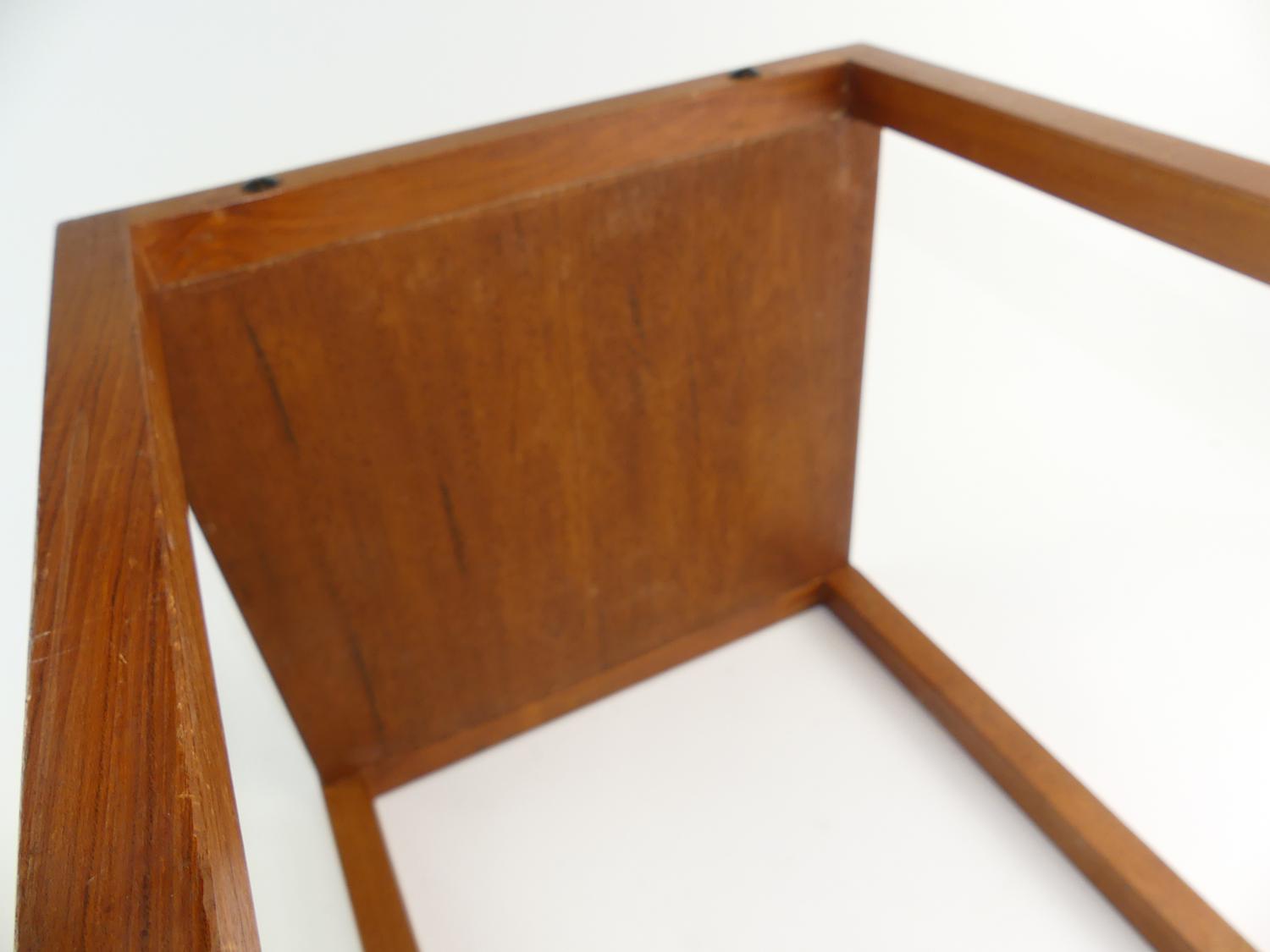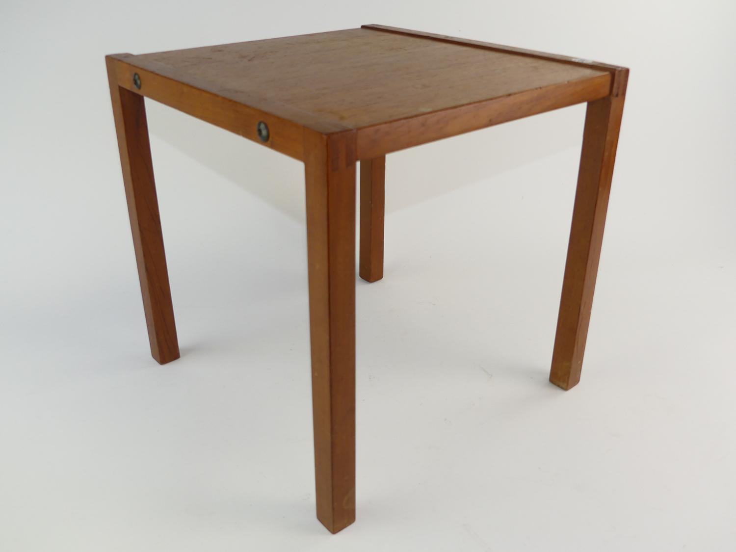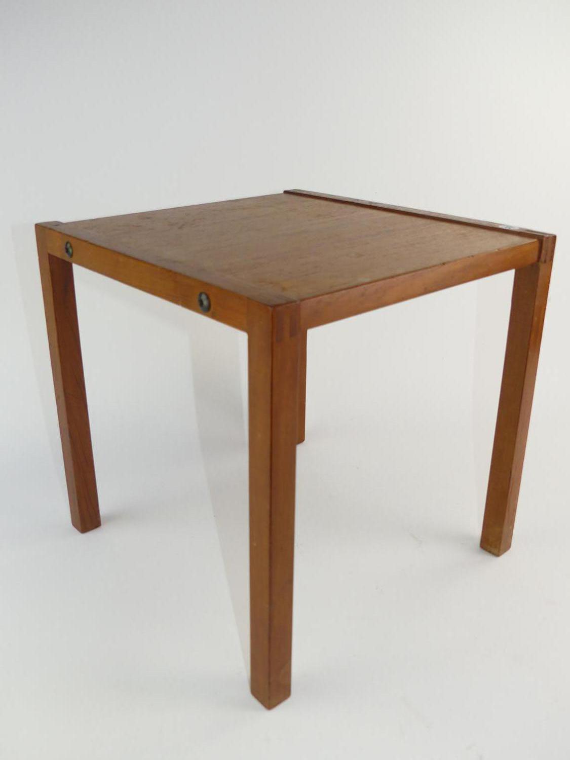 mid century teak square side table, 13 3/4" x 14" x 13 3/4"