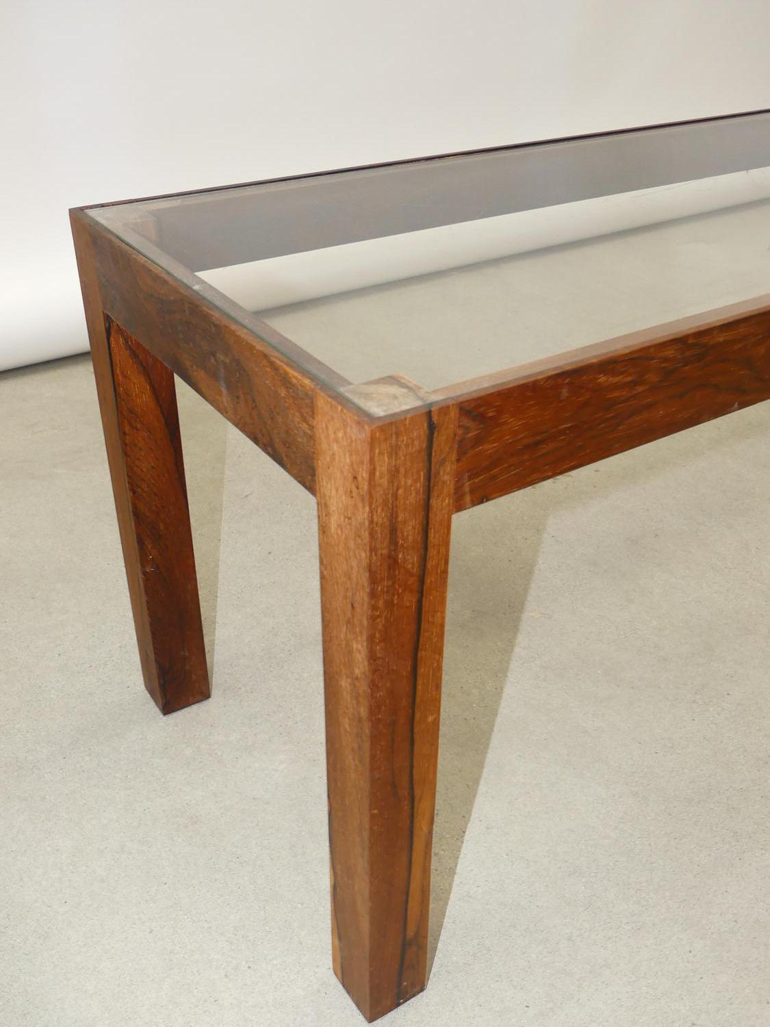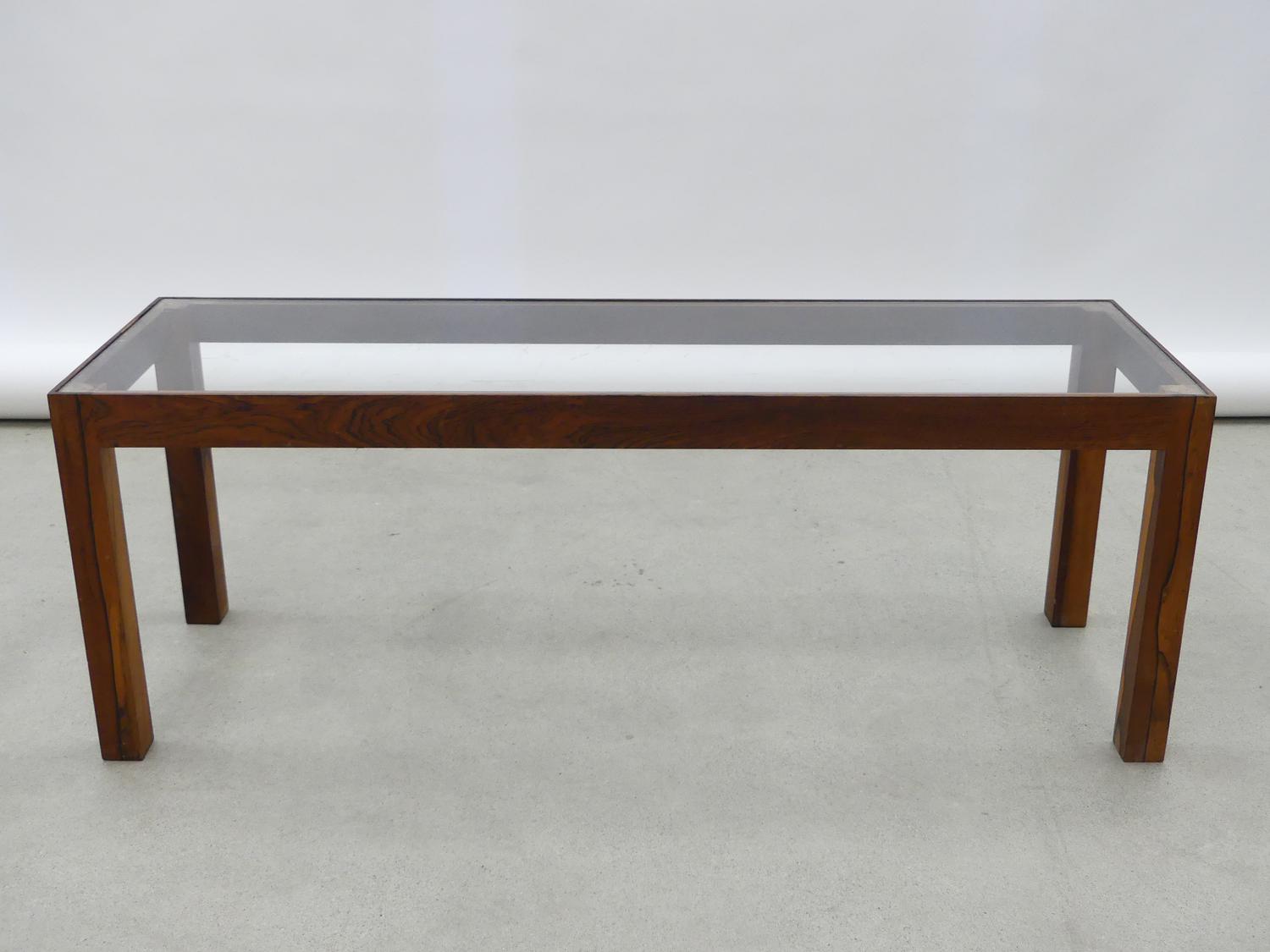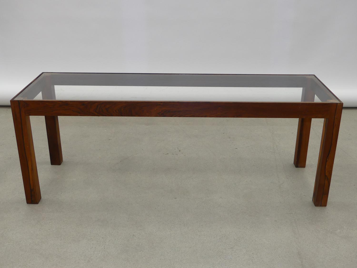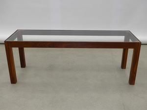 glass inset rosewood coffee table, 16" x 44" x 14"