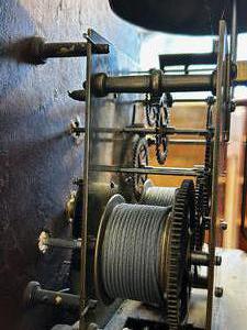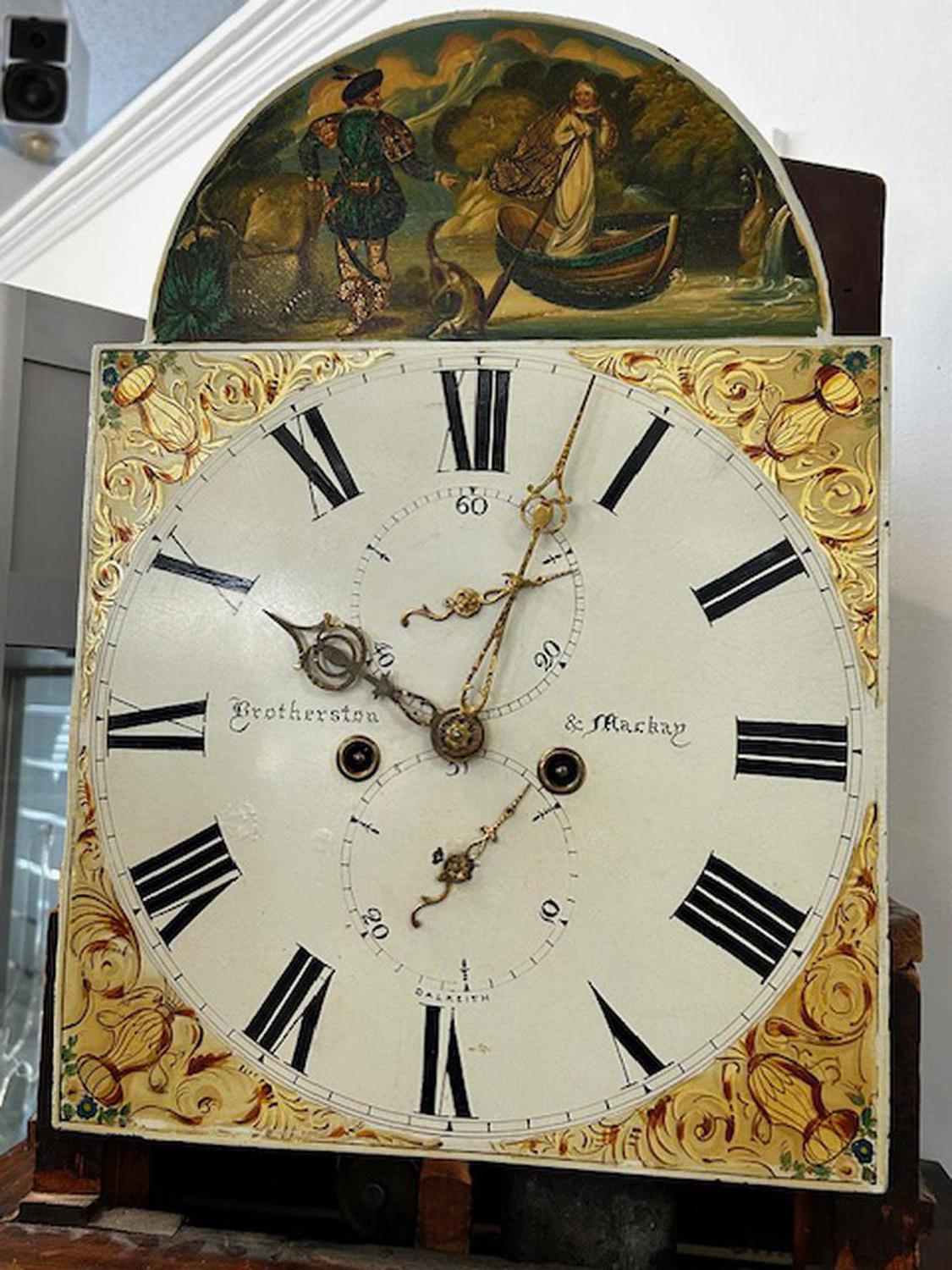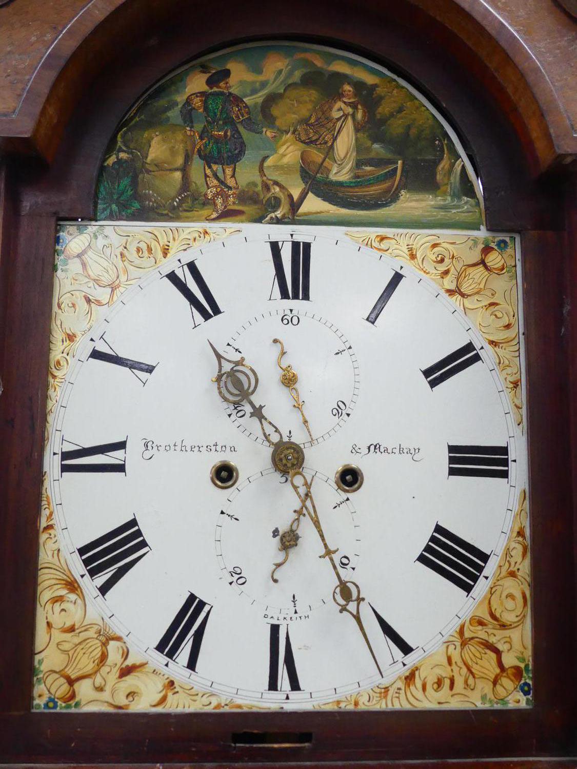 19th century inlaid mahogany longcase clock, brotherston & mackay, dalkieth, ht. 86"