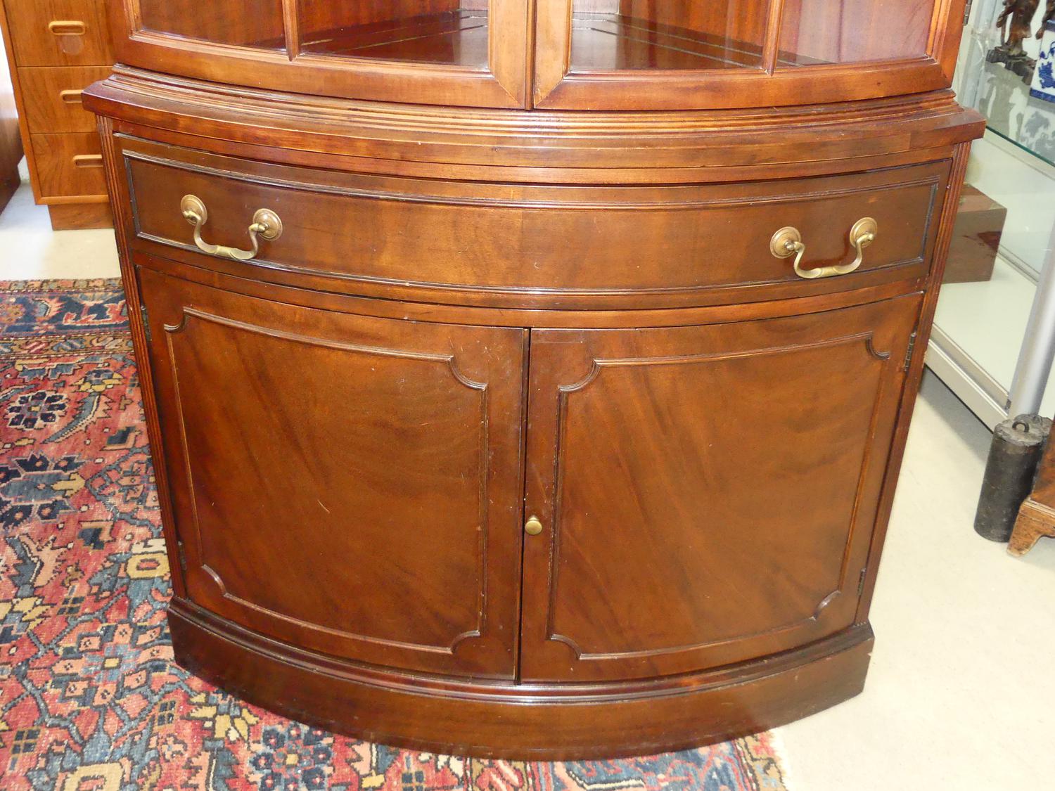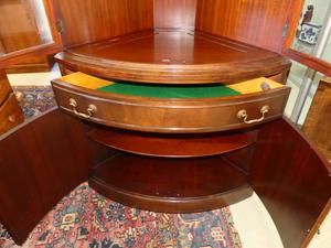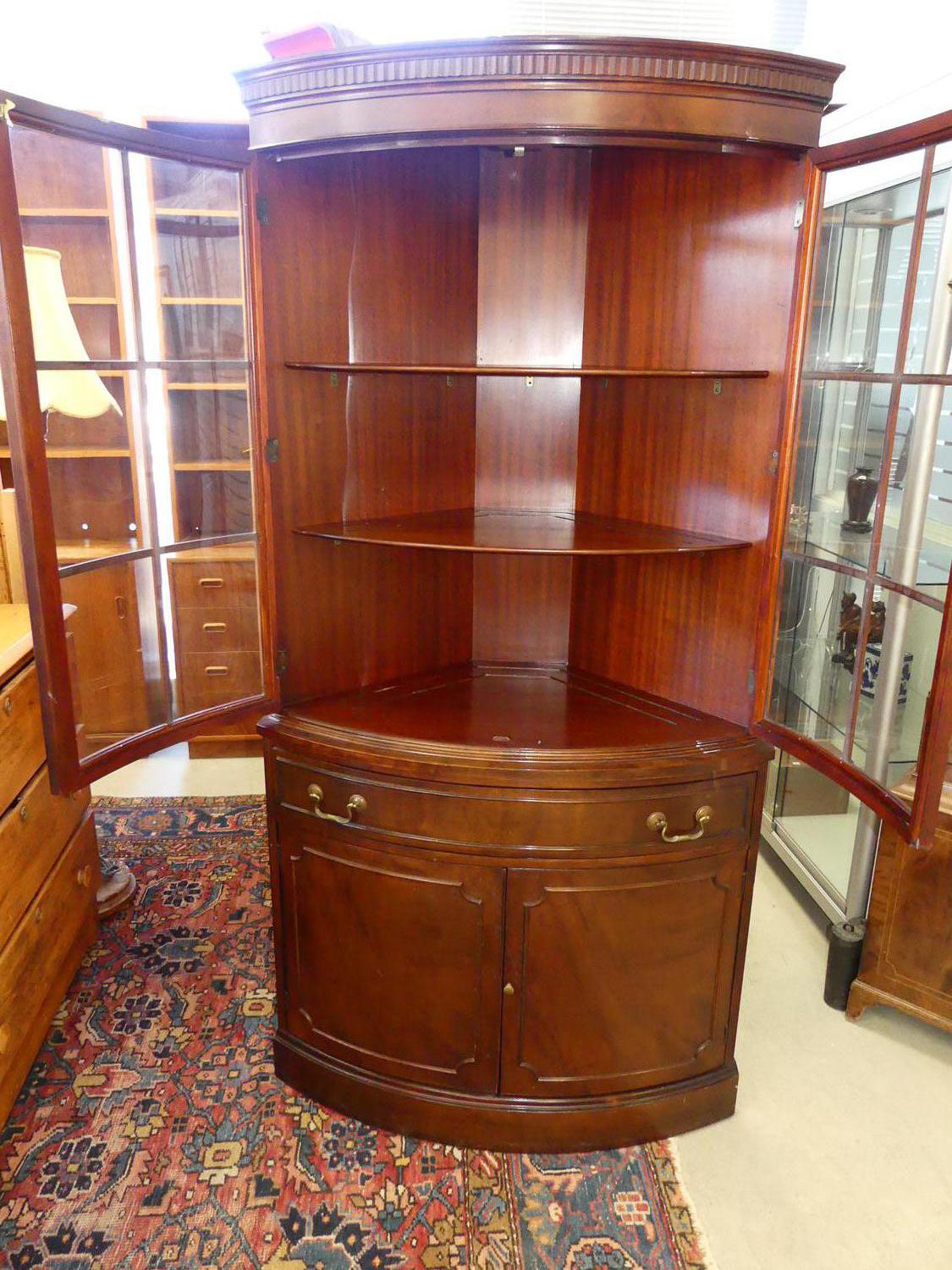 mahogany glazed corner cupboard in the 18th century english manner, 71 1/2" x 36" x 20"