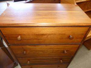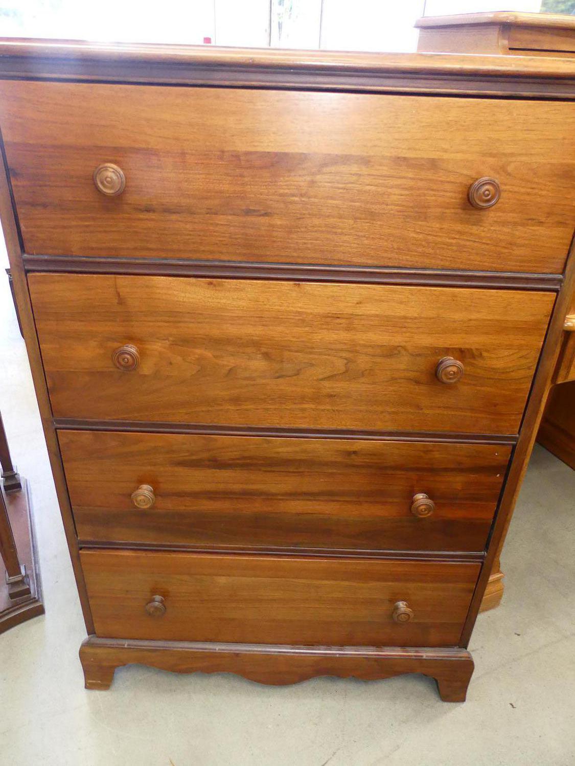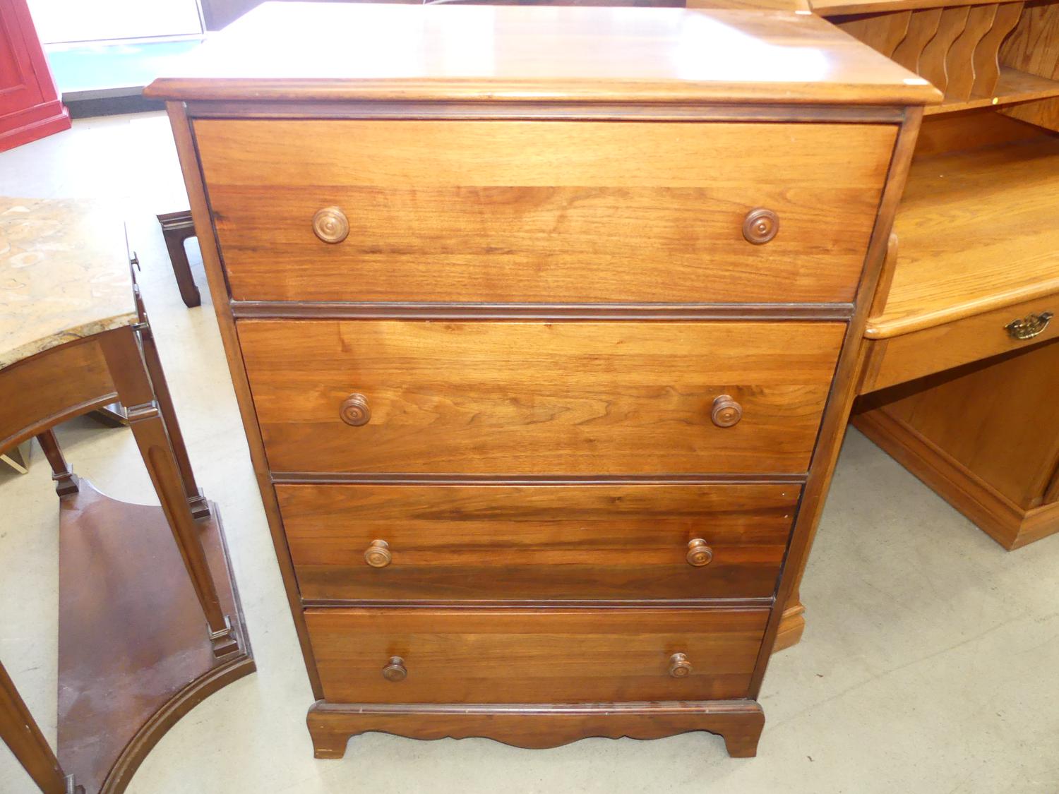 walnut finished chest of four drawers, circa 1940, 45" x 30" x 16"