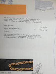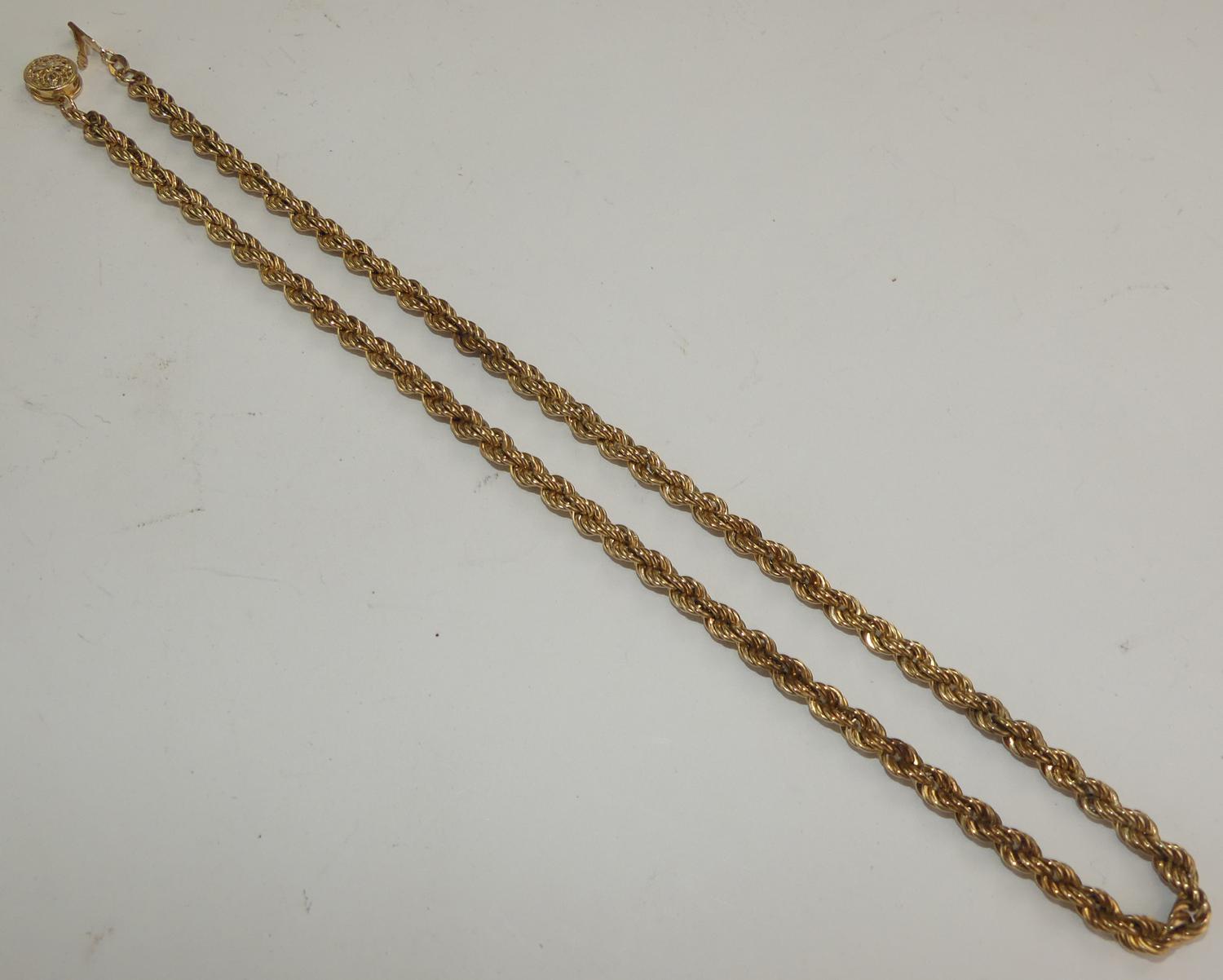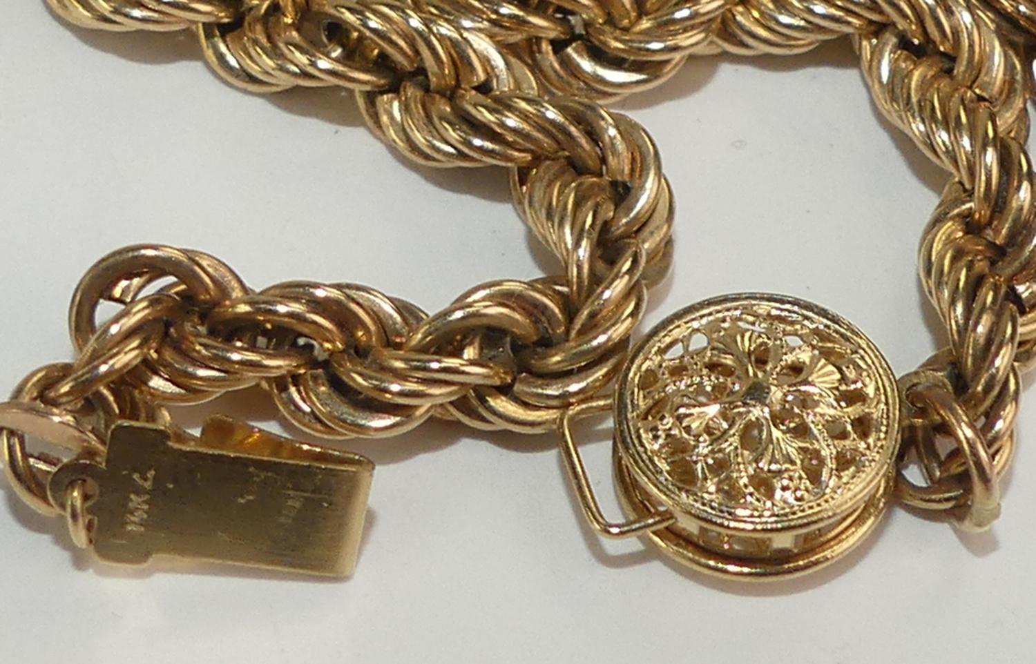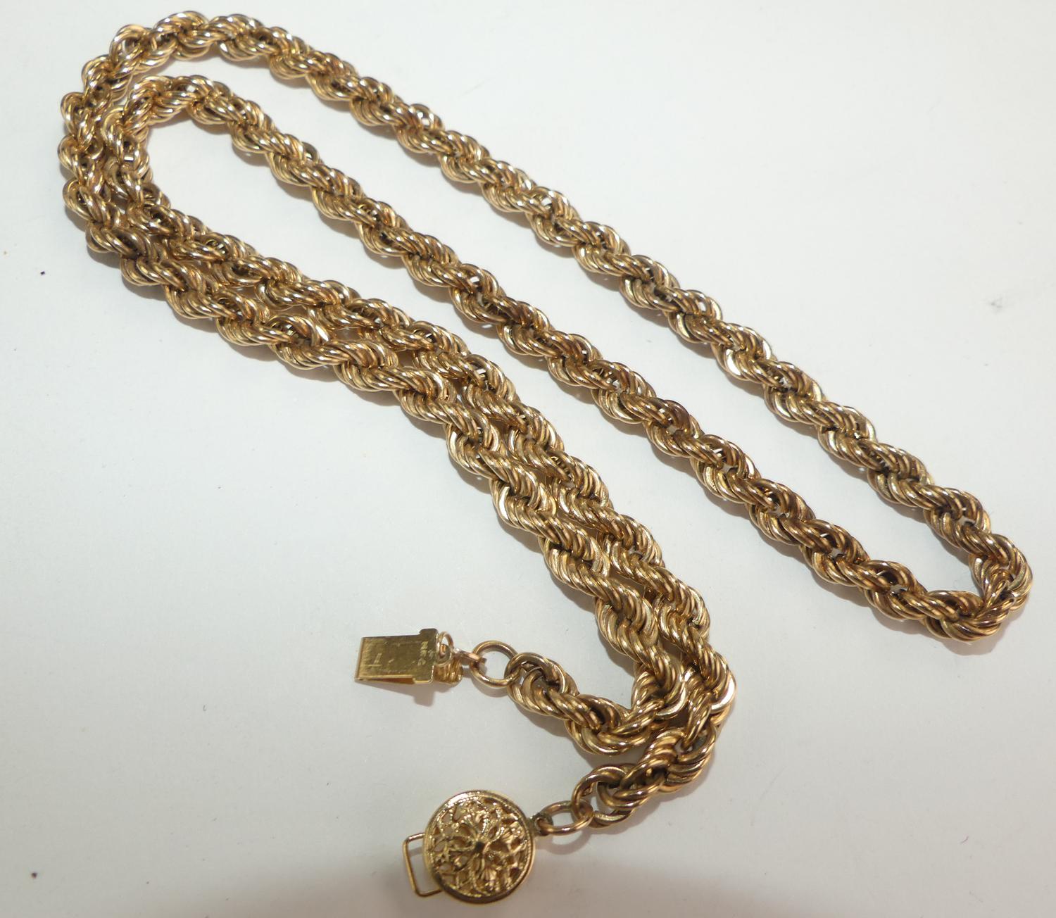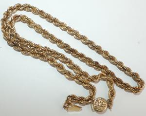 10k yellow gold rope necklace with 14k clasp, length 18", weighing approx 13.6 grams