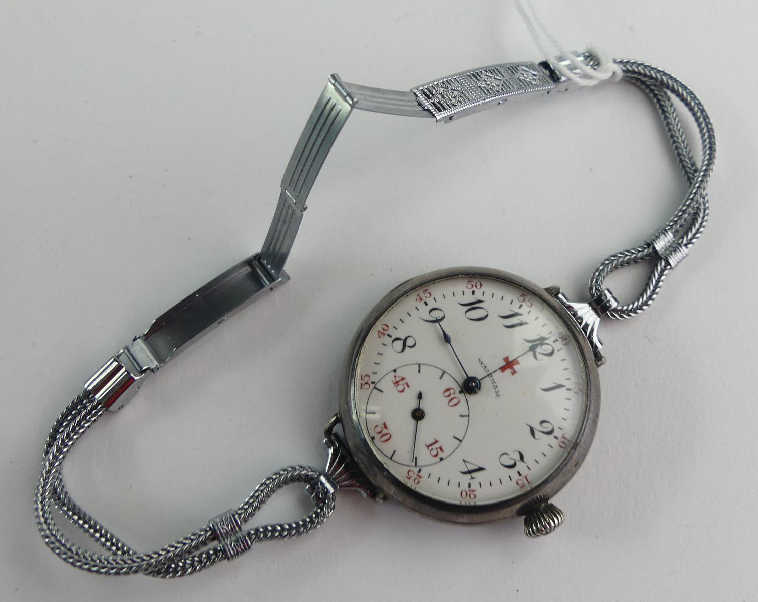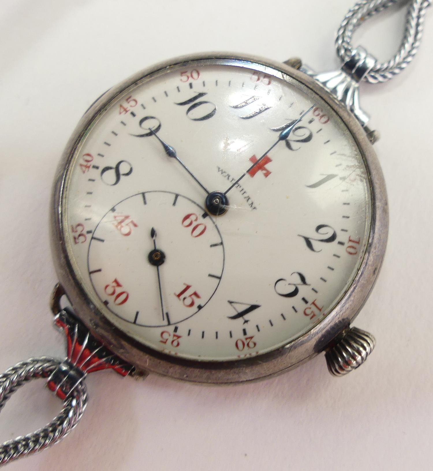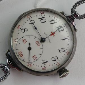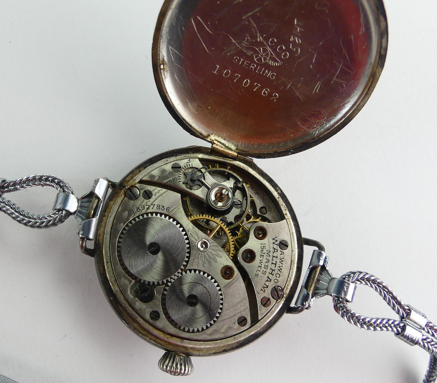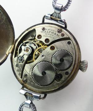 ladies waltham sterling silver transitional case watch, "a. mason s. joseph hospital, victoria, bc, may 7, 1918", 15 jewel movement # 18927836, case # 1070762