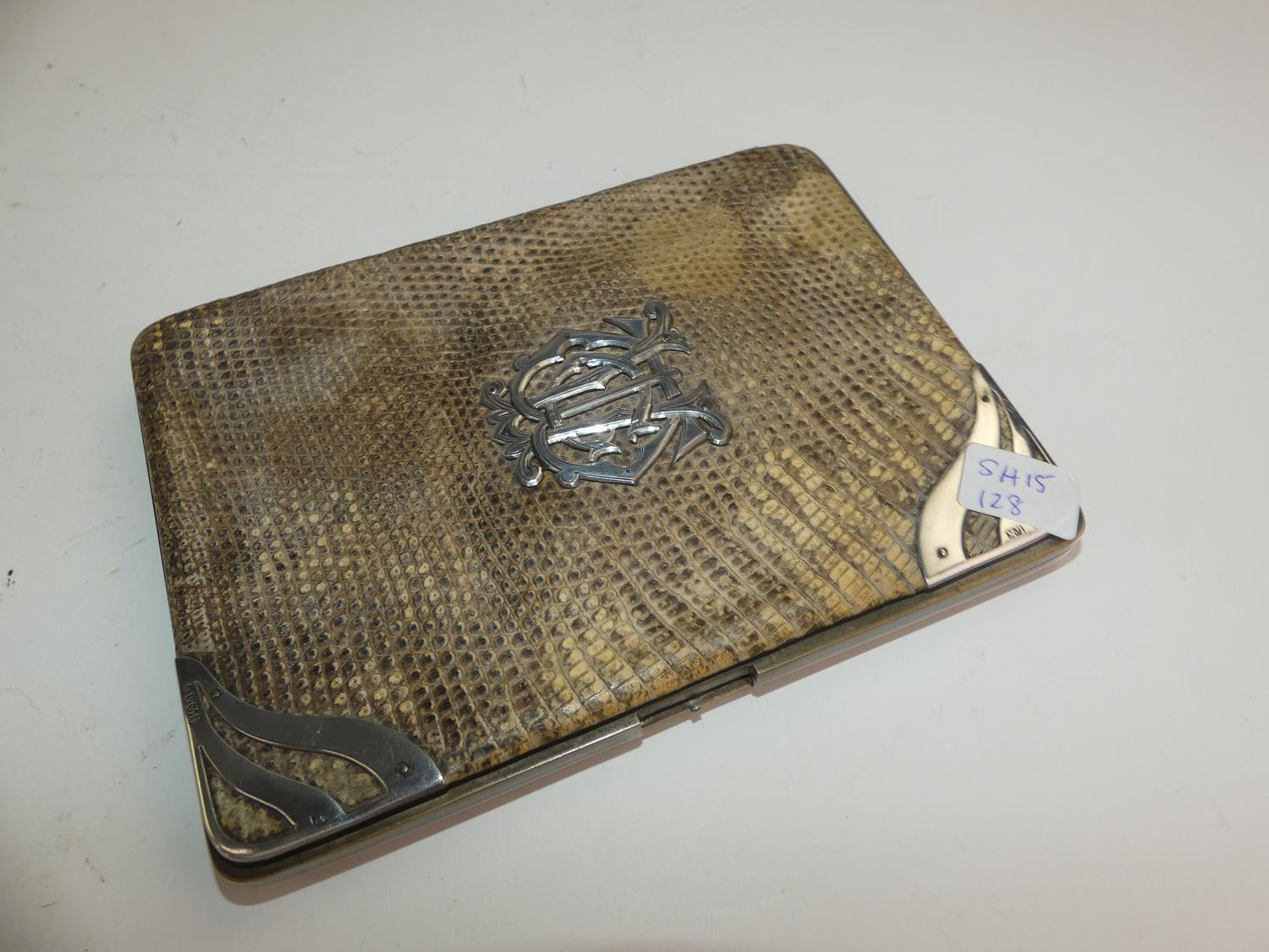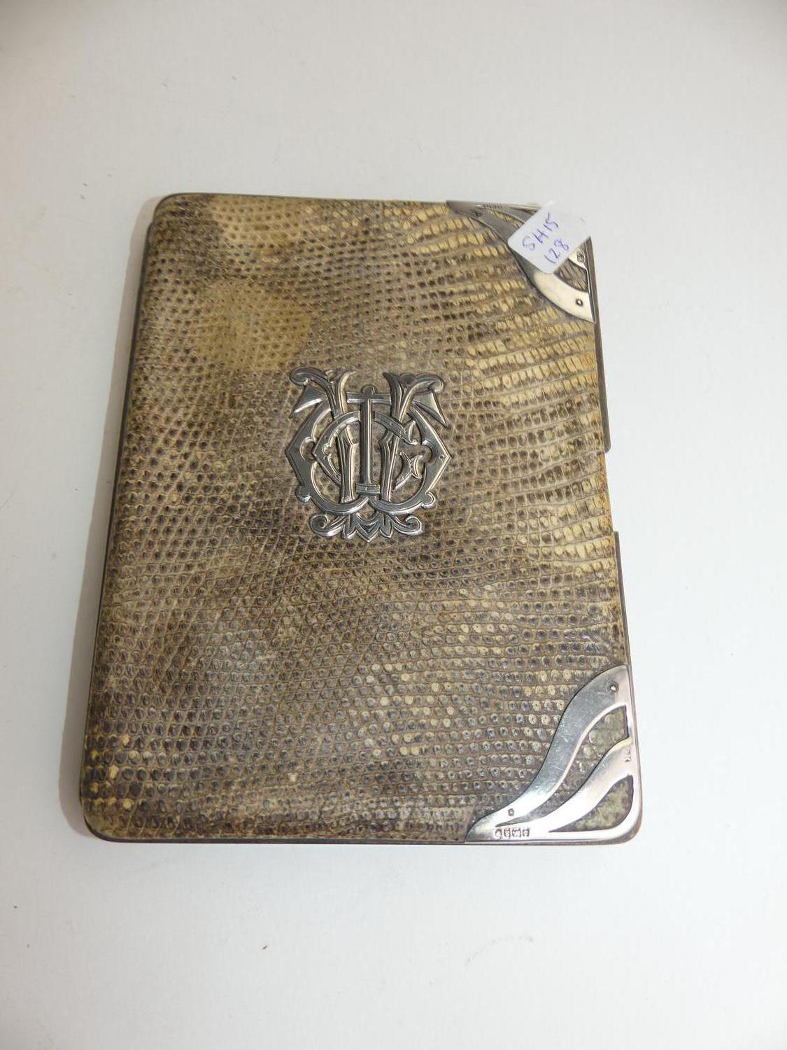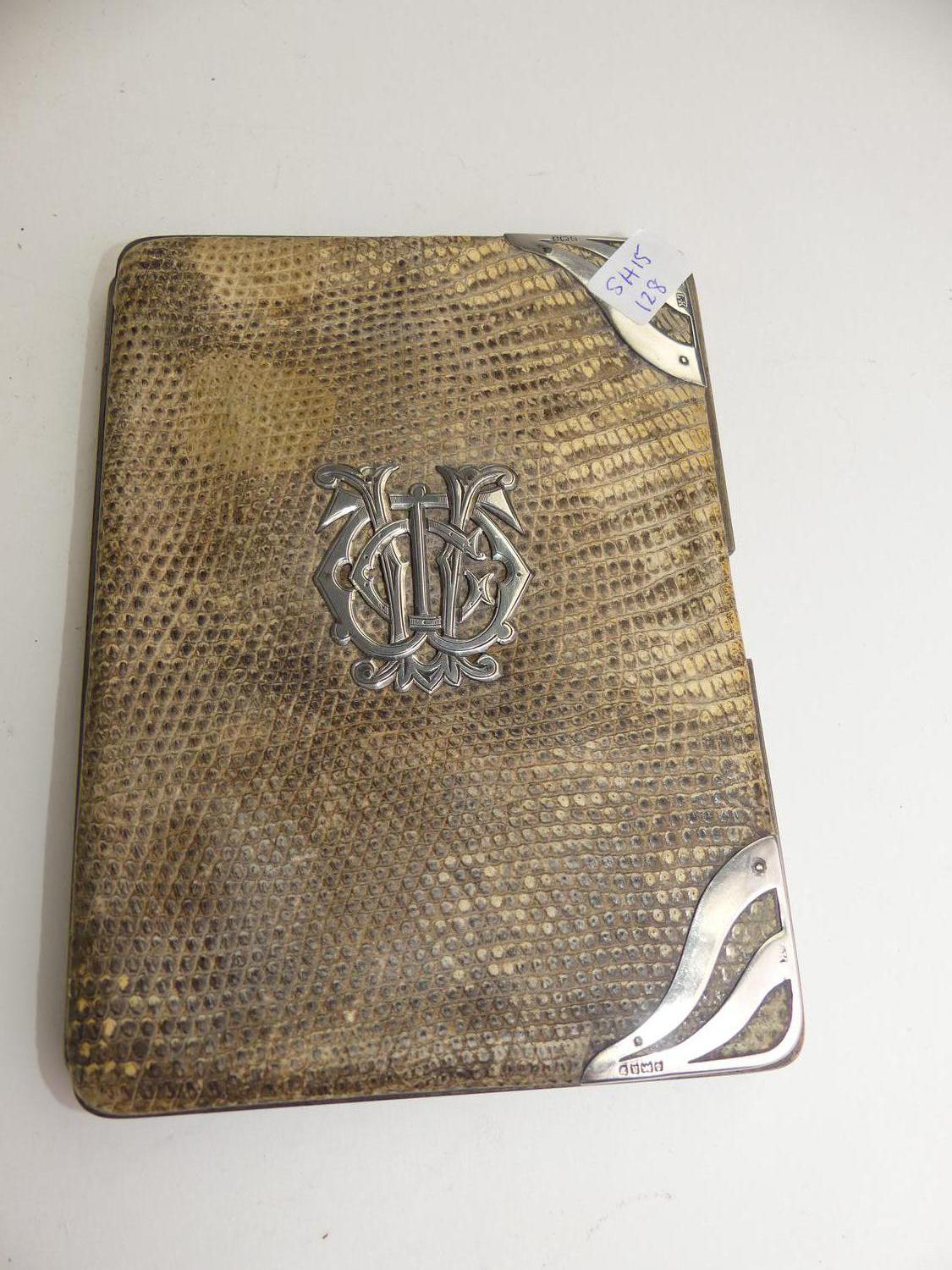 victorian snakeskin wallet with sterling silver hallmarked fittings, 4 1/2 x 5 1/2"