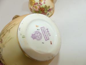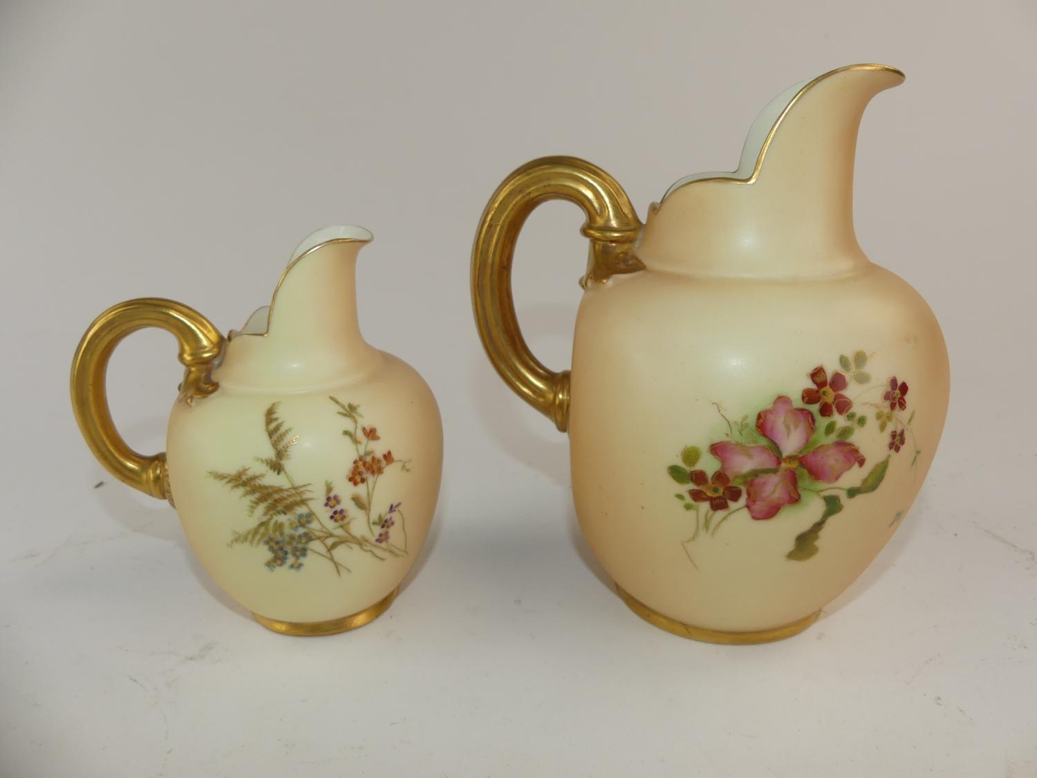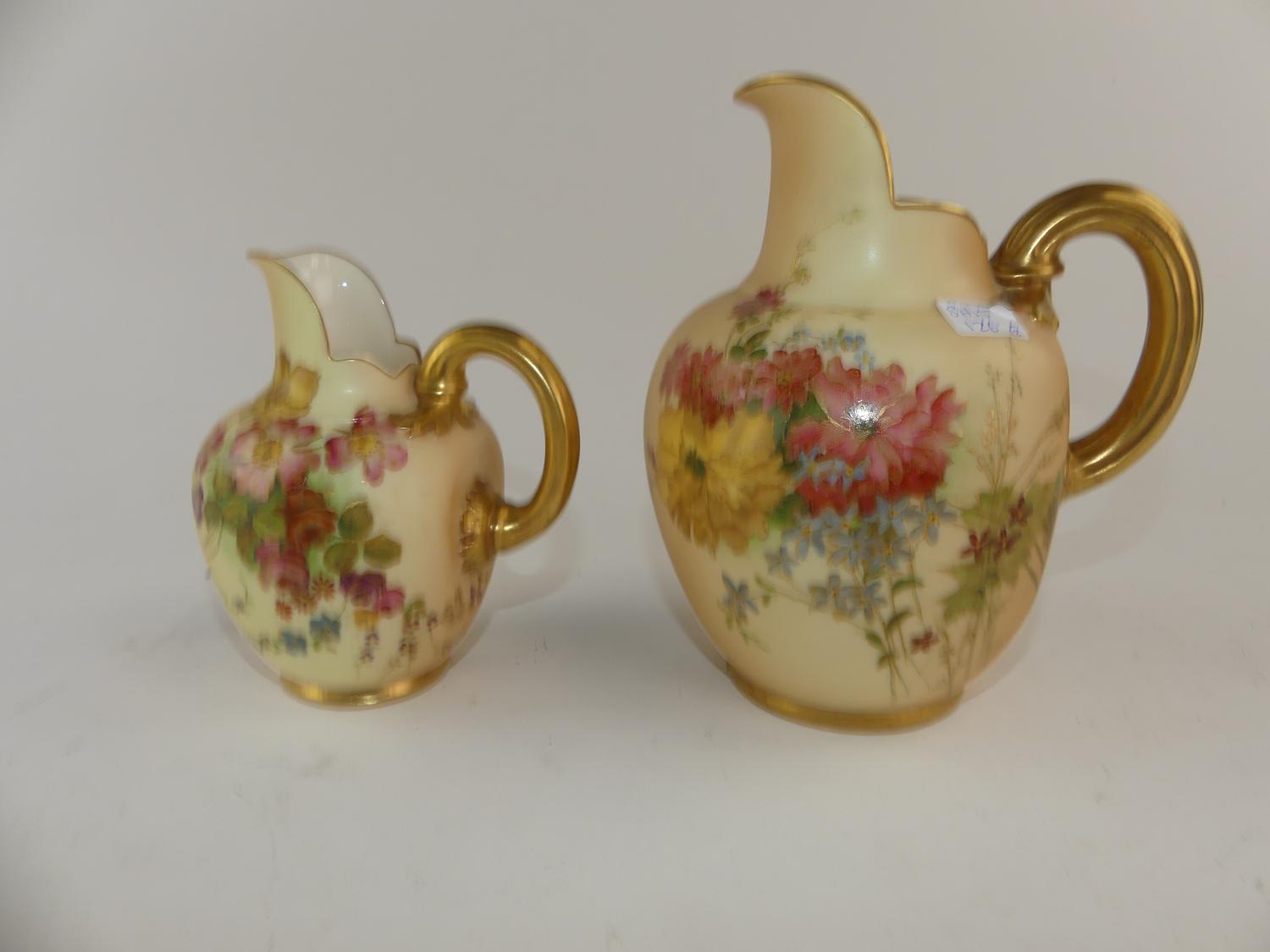 2 royal worcester floral gilt jugs, ht 6 1/2" and smaller