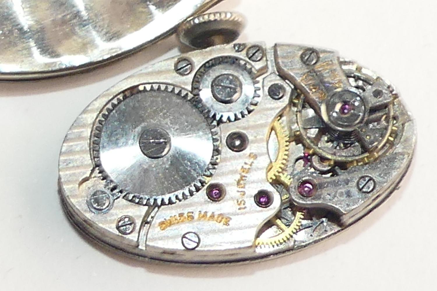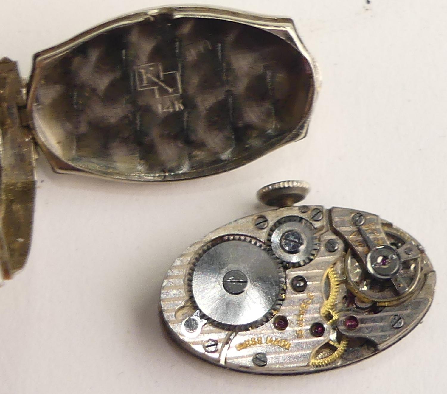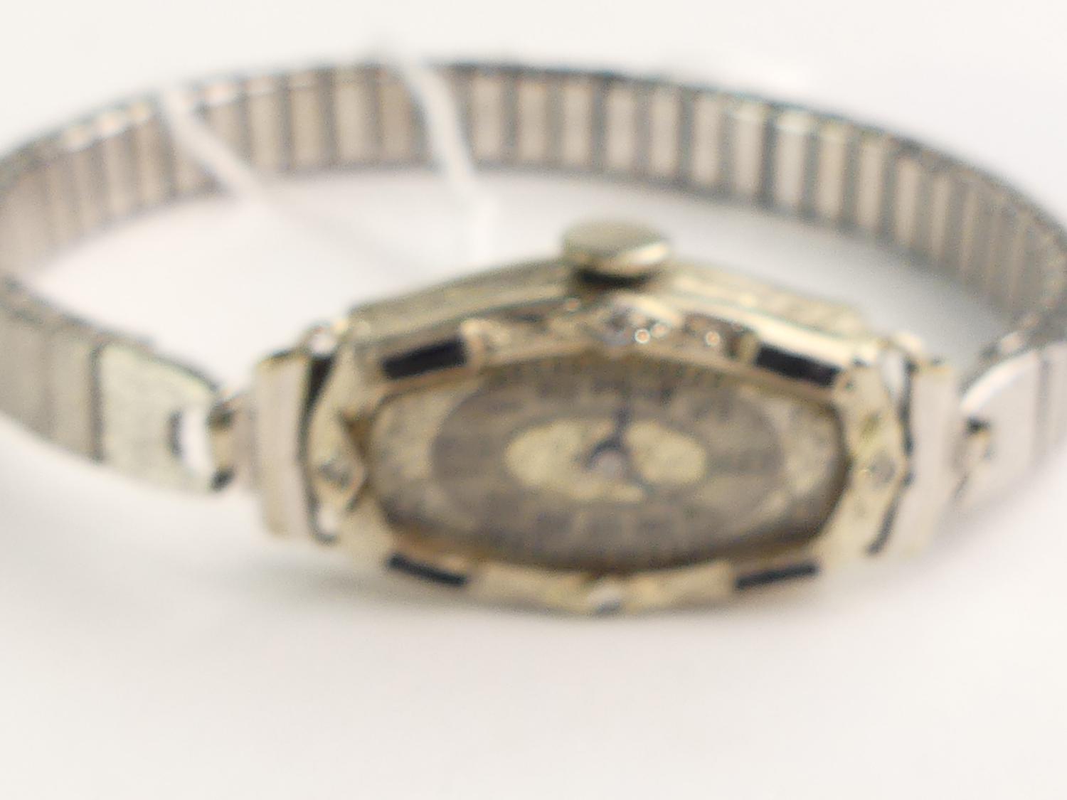 art deco 14k white gold diamond watch, 17 jewel movement, expansion stainless steel bracelet