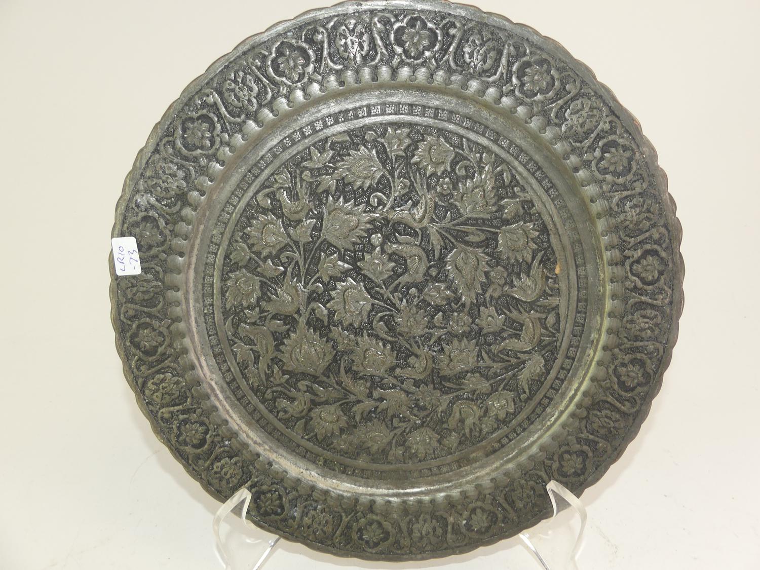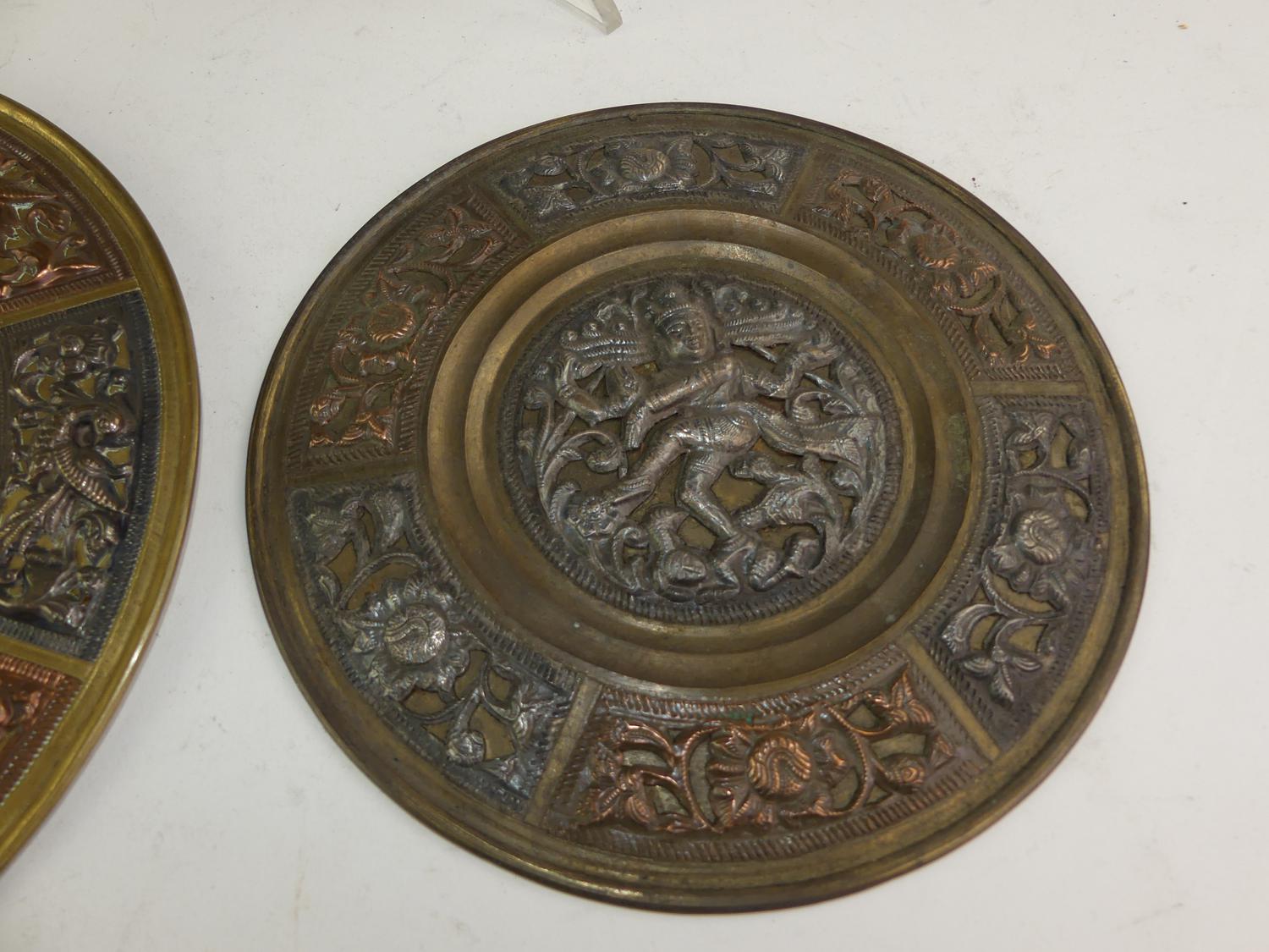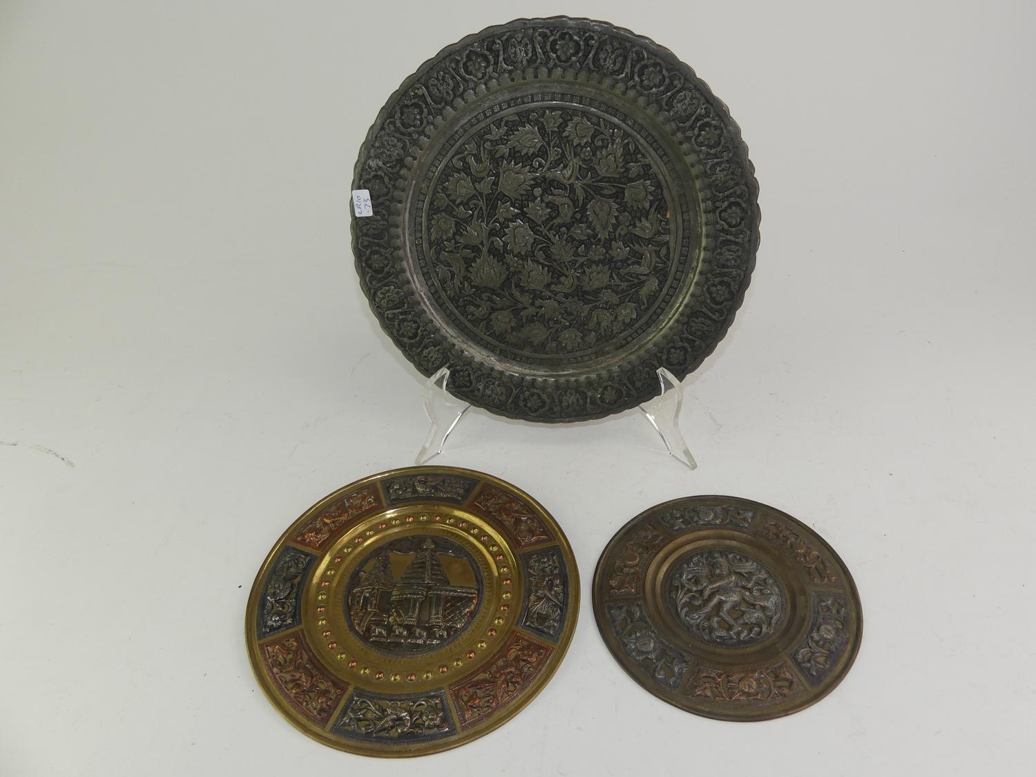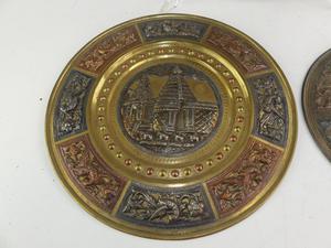 three asian mixed metal trays, diameter 12"