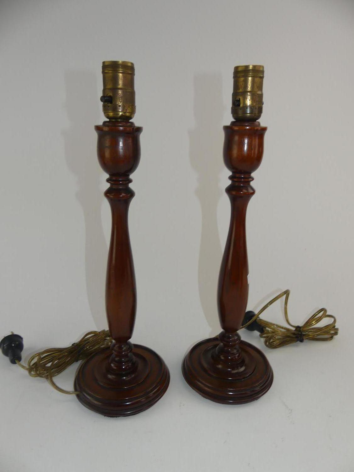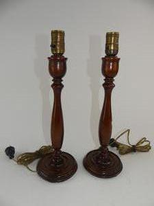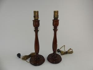 pair of antique tuned walnut table lamps, ht 15 1/2"