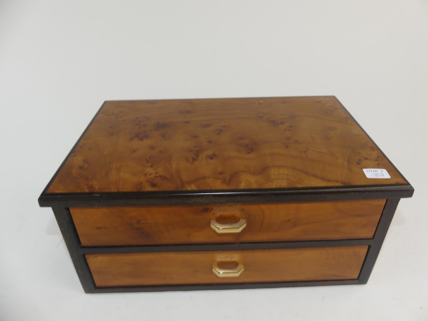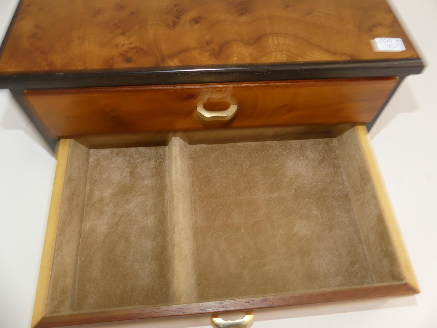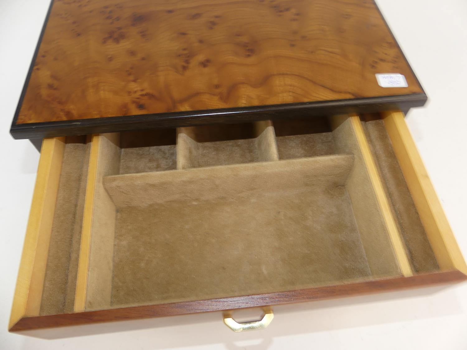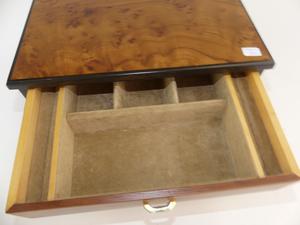 italian amboyna velvet lined jewelry box, 5 1/4" x 11 1/2"x 8"