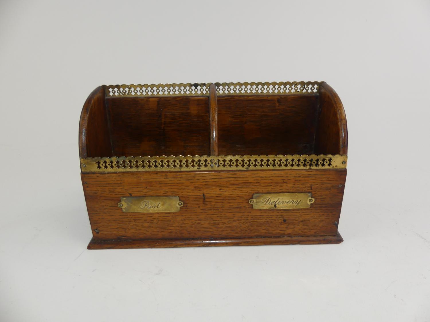 antique oak letter holder, 10" x 6" x 3 1/2"