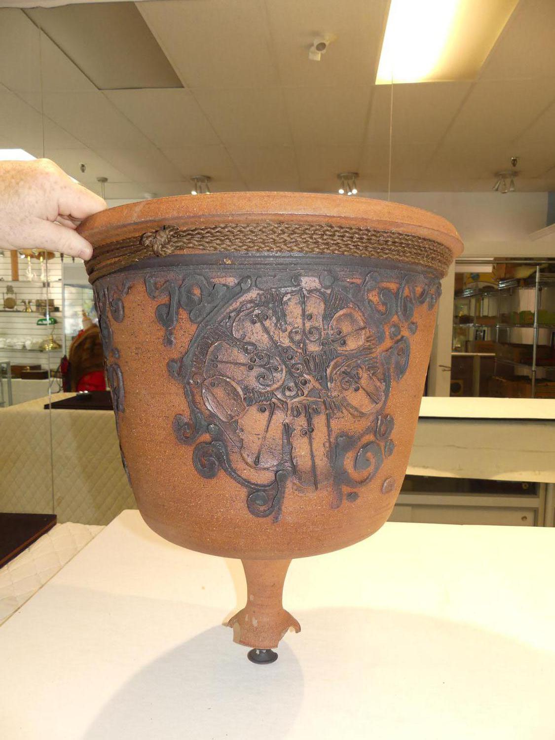 large ed drahanchuk alberta signed studio pottery hanging planter