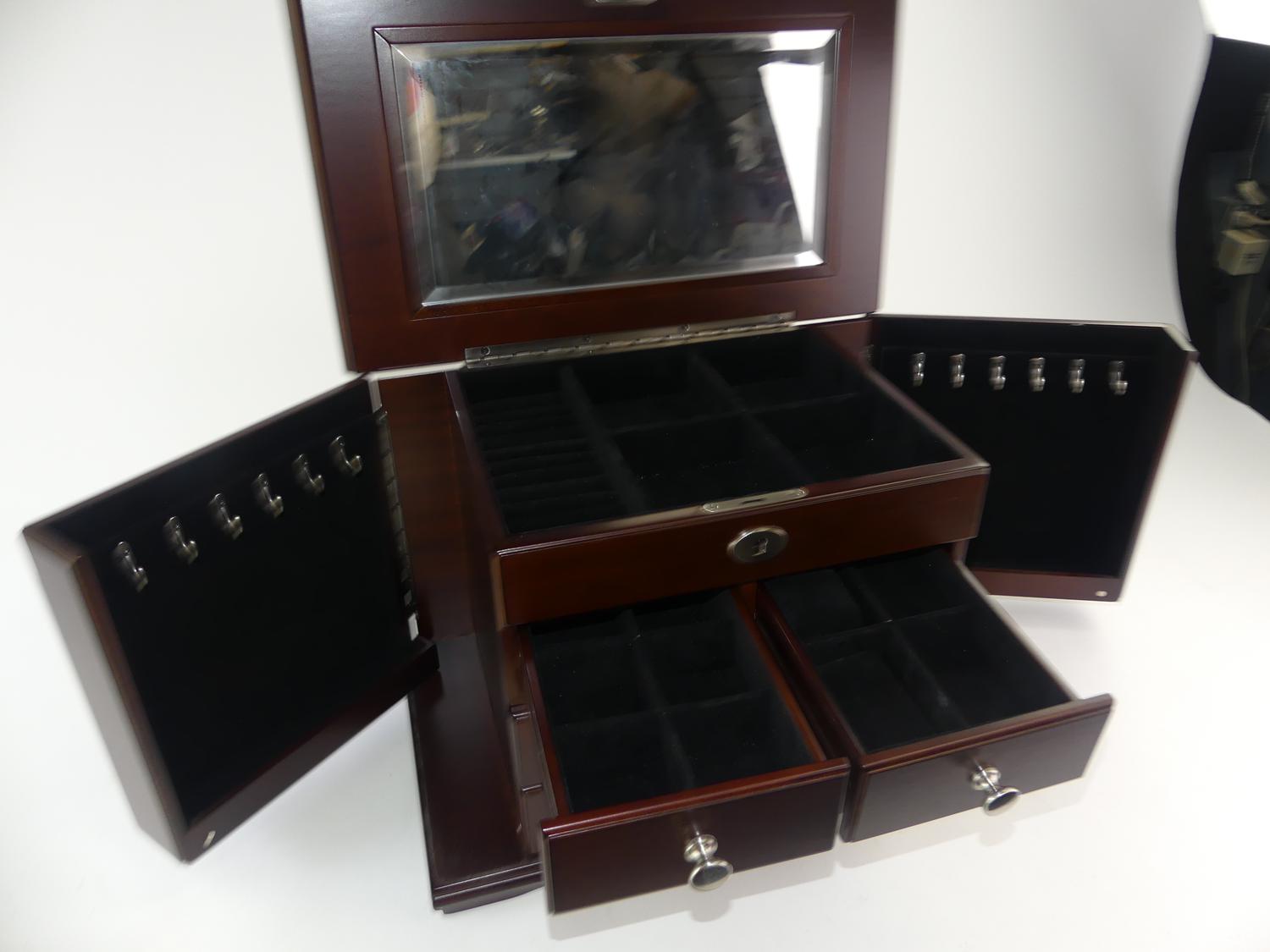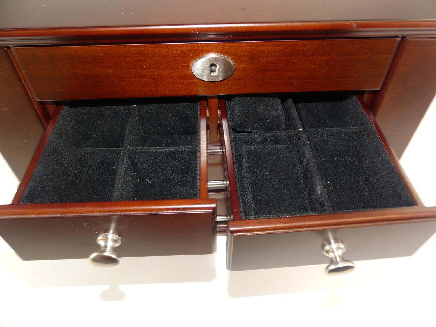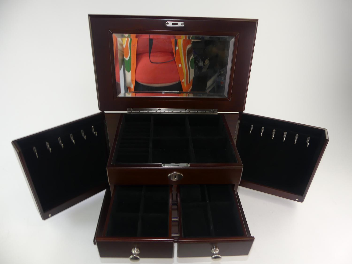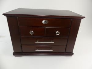 large mahogany finish jewelery box, 12 1/2" x 18" x 11"