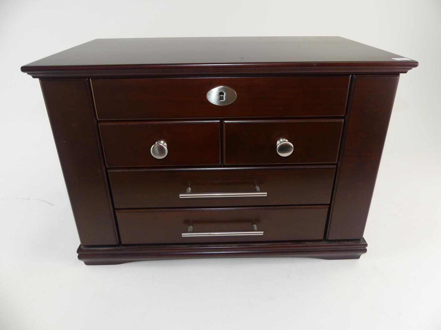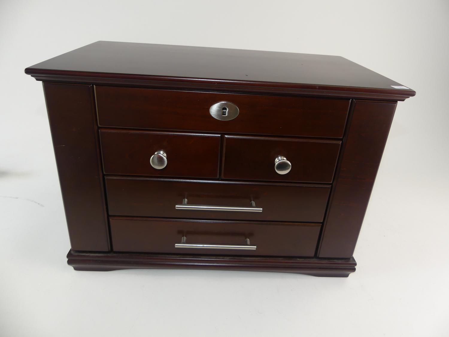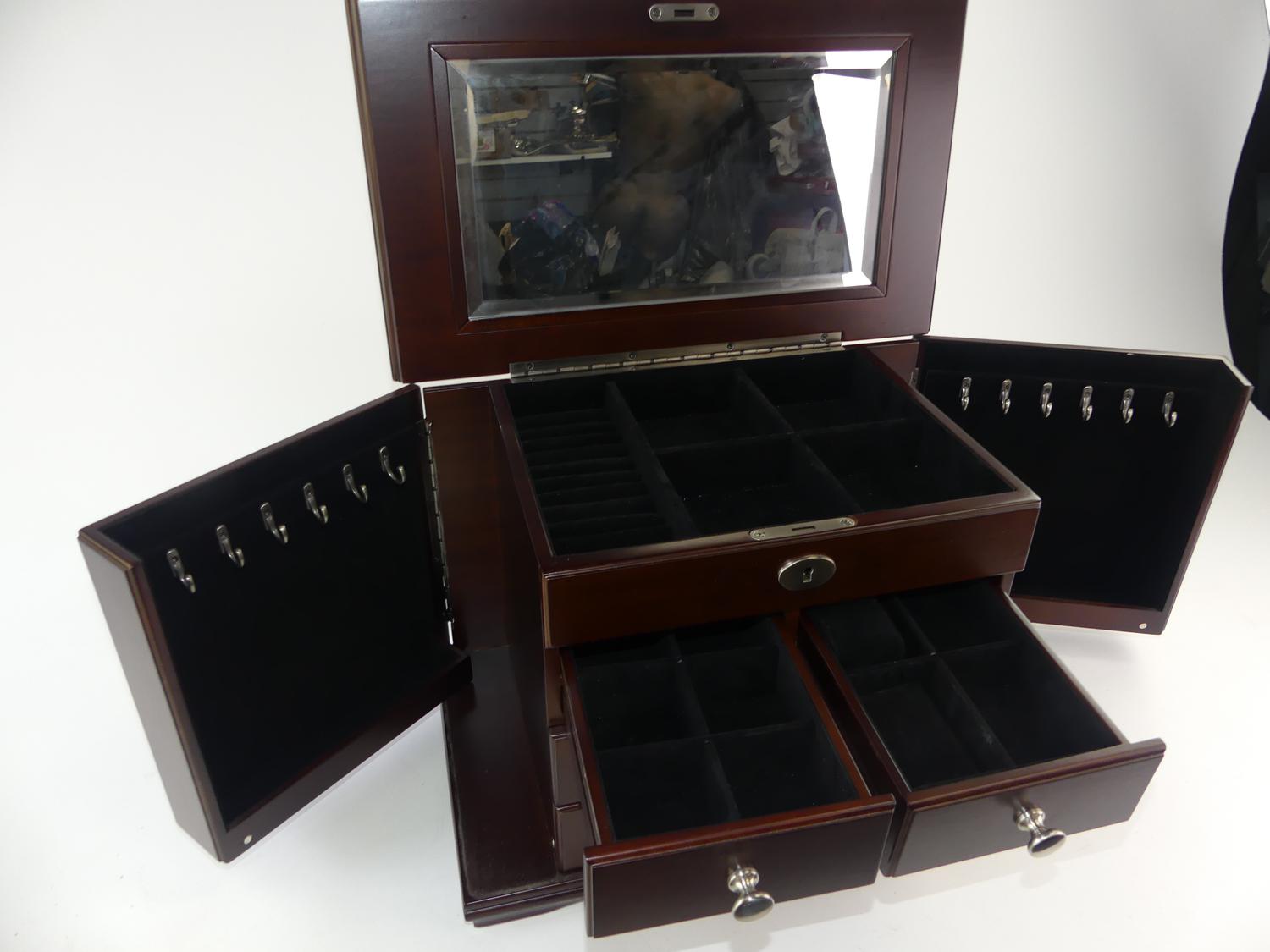 large mahogany finish jewelery box, 12 1/2" x 18" x 11"