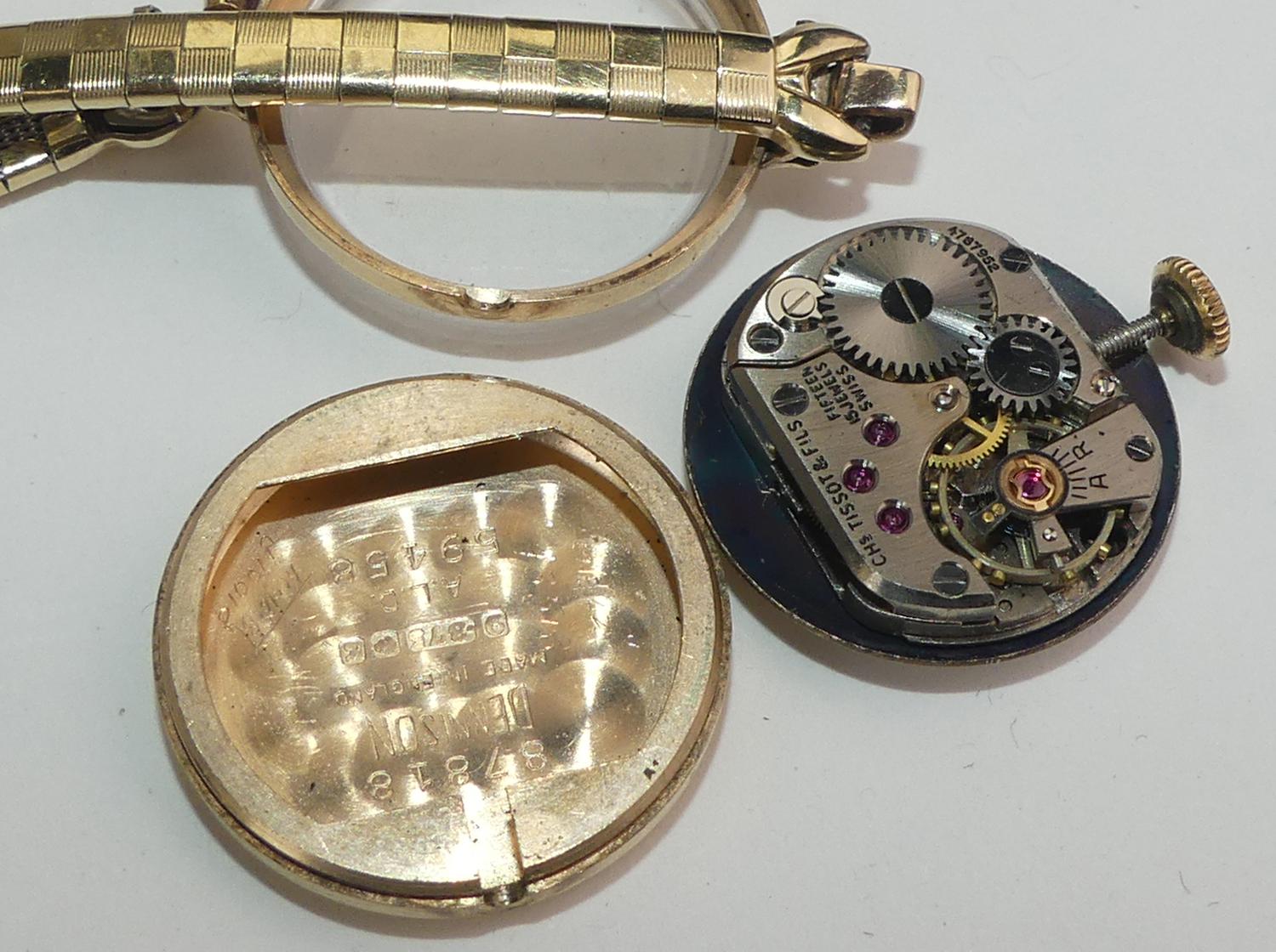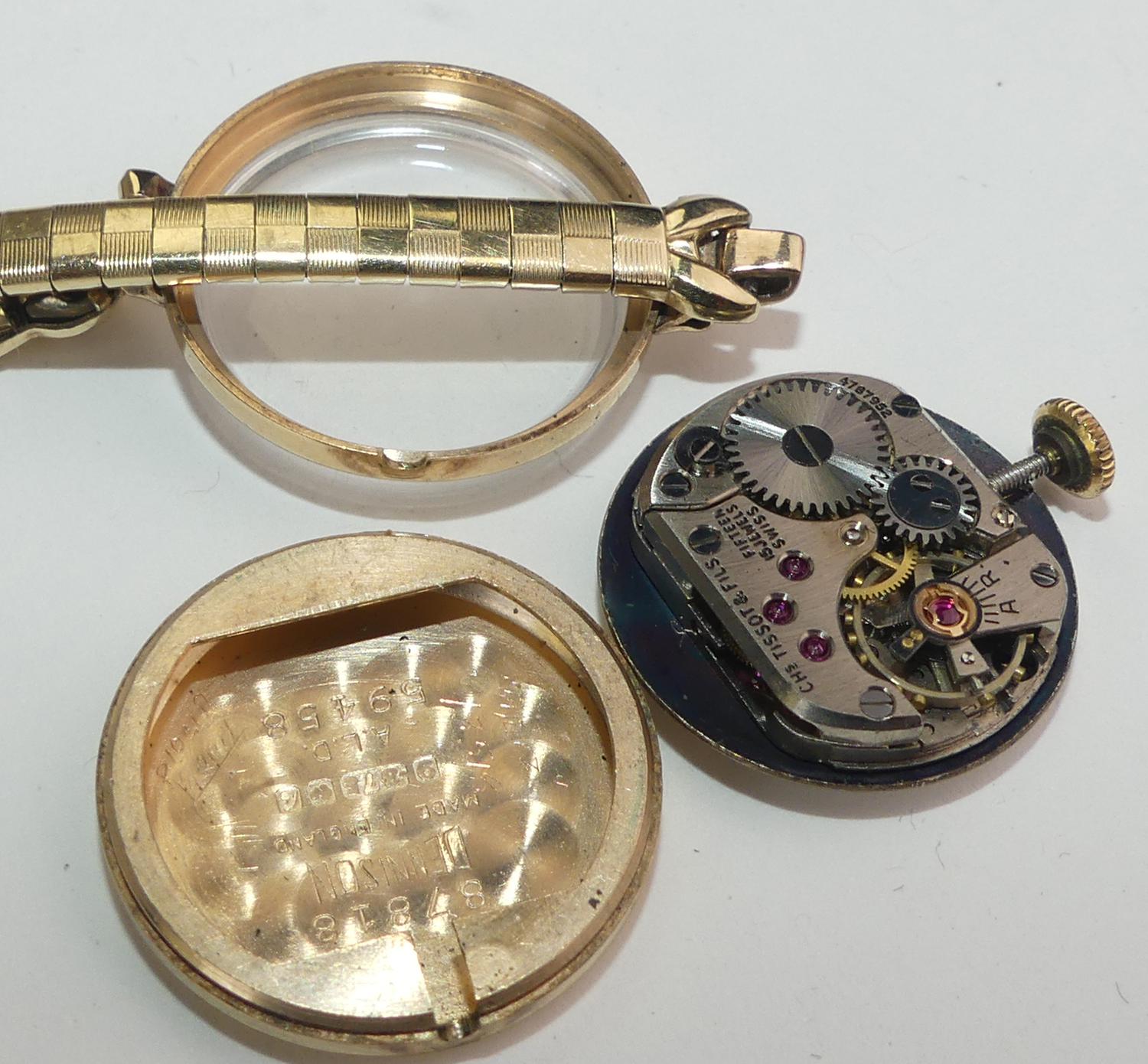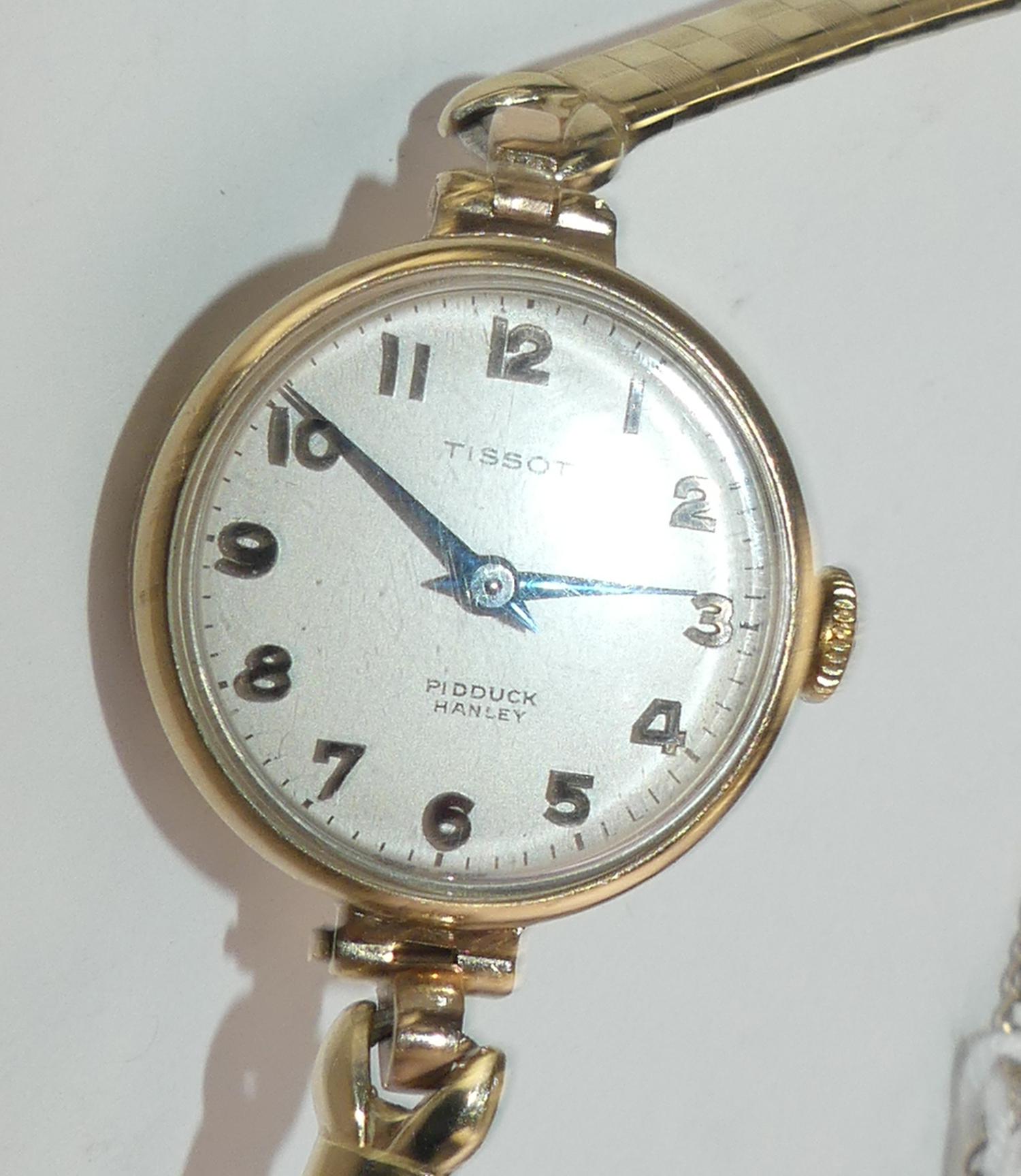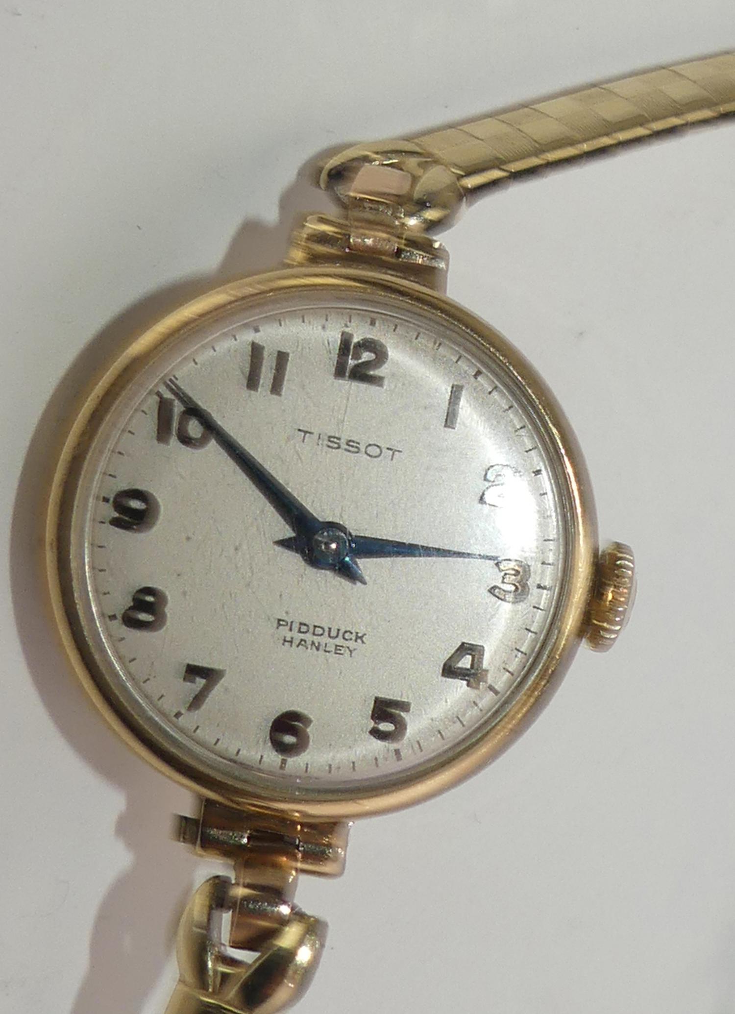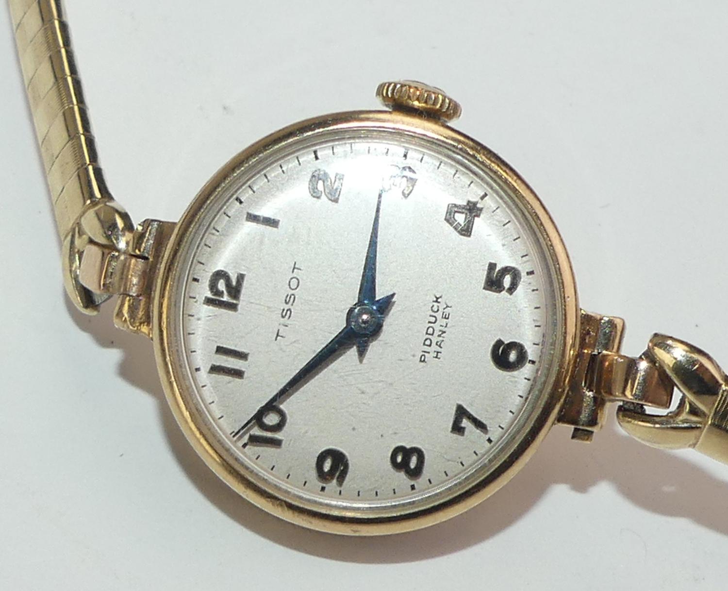 ladies 9k hallmarked 375 mechanical tissot watch, case #59458, 15 jewel movement