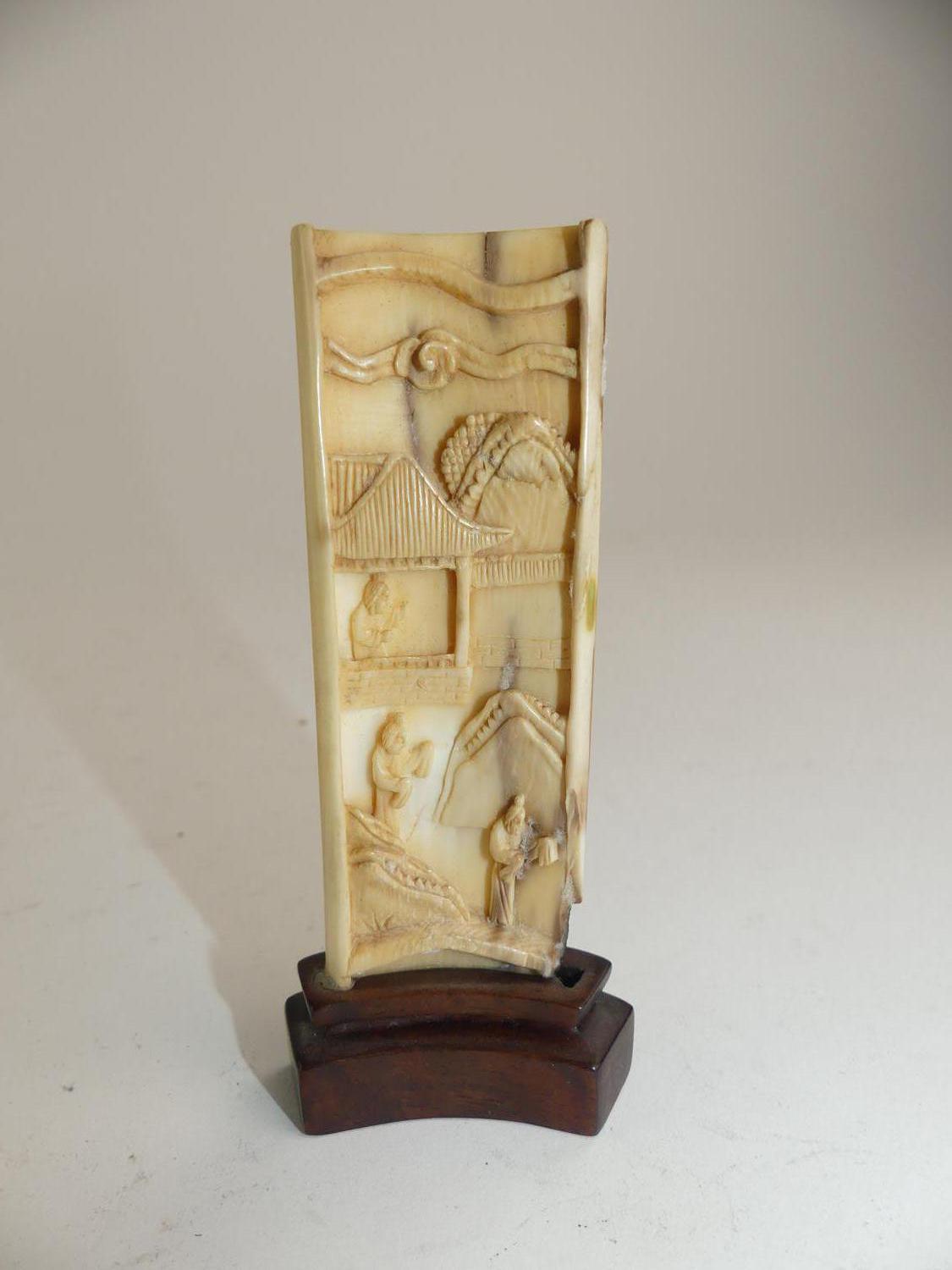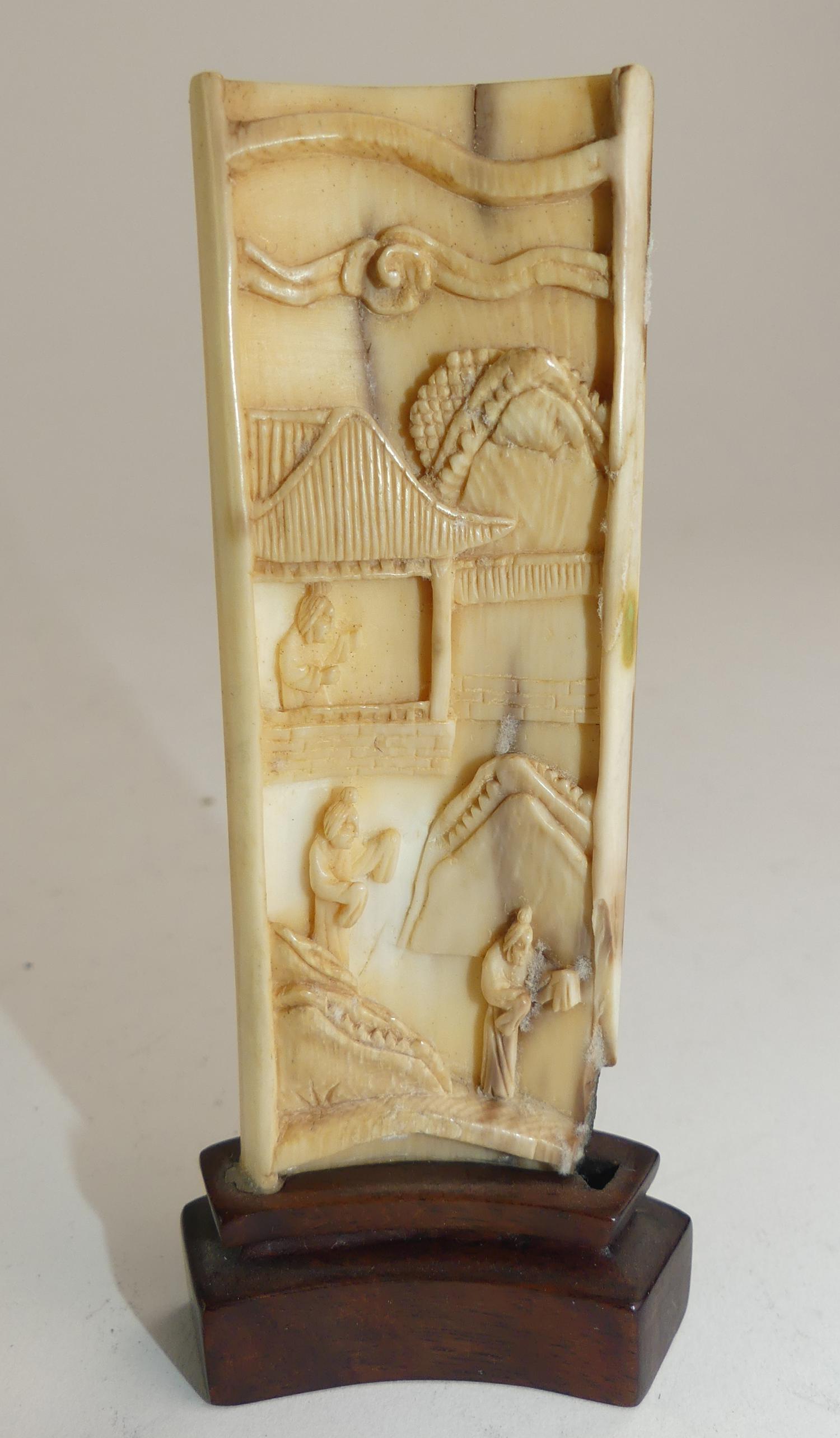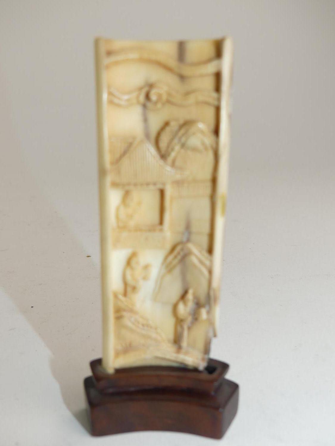 asian carved bone sculpture on stand, ht. 4 1/4"