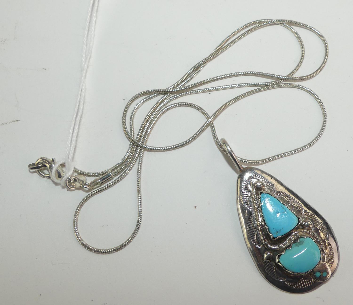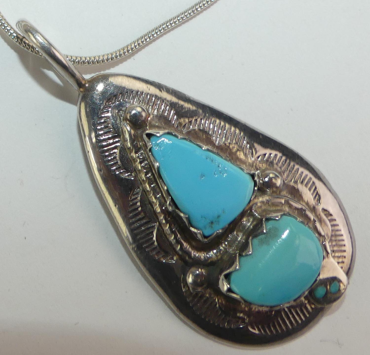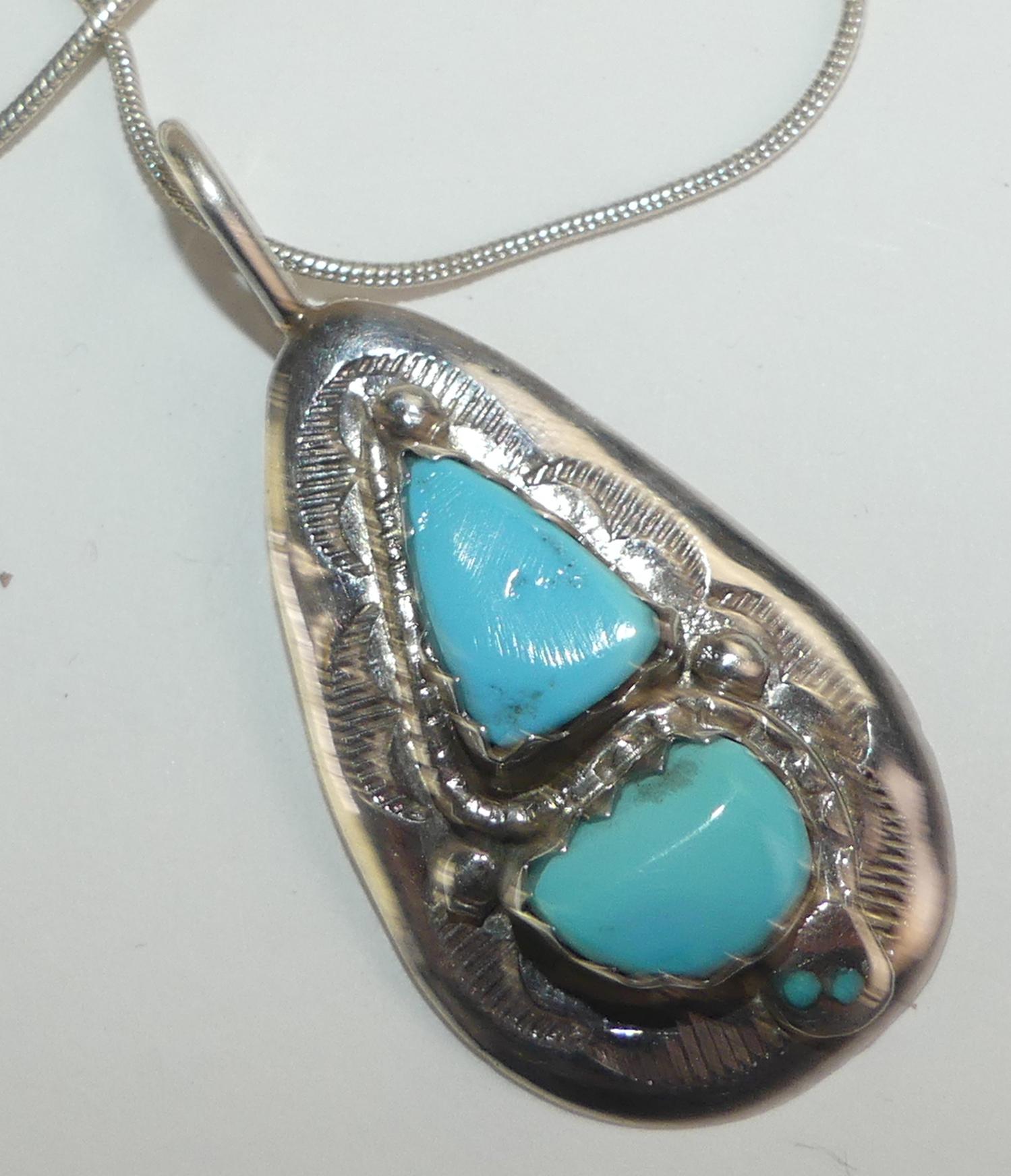 sterling silver zuni turquoise pendant necklace