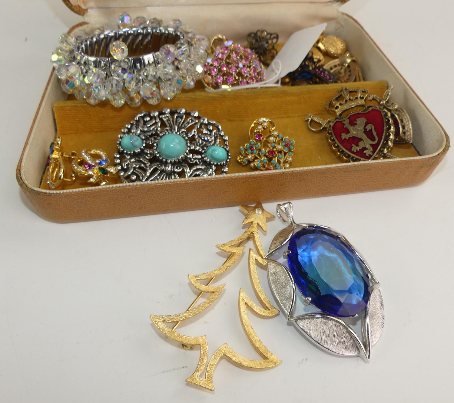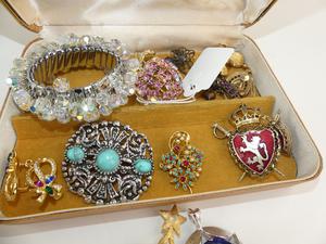 lot of vintage austrian crystal brooches, including pink coro
