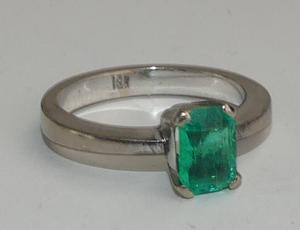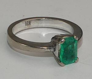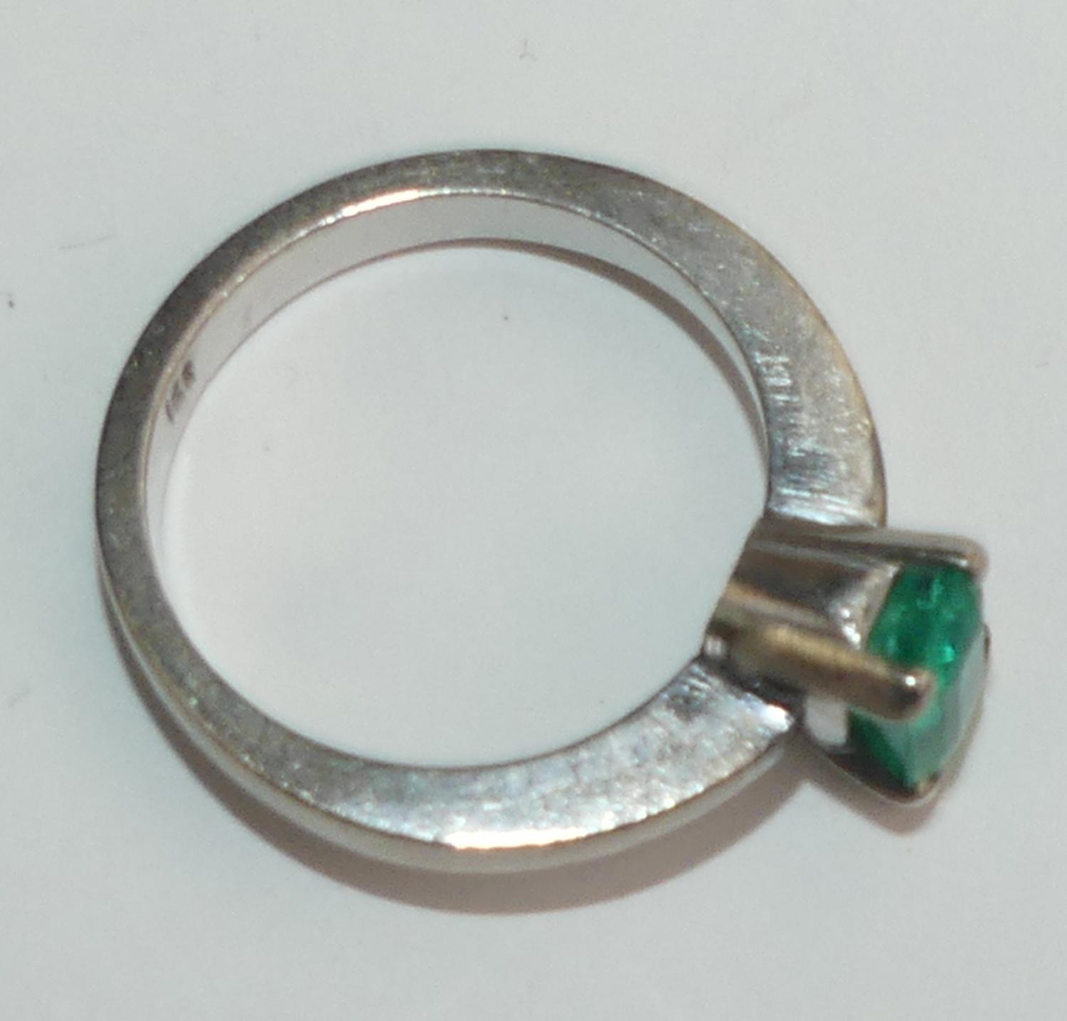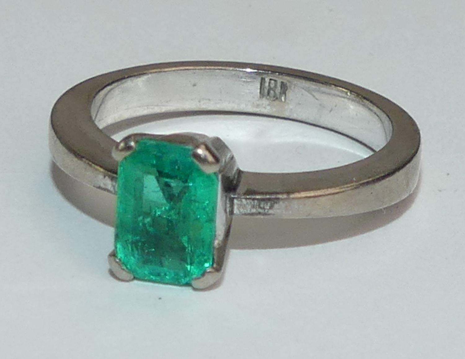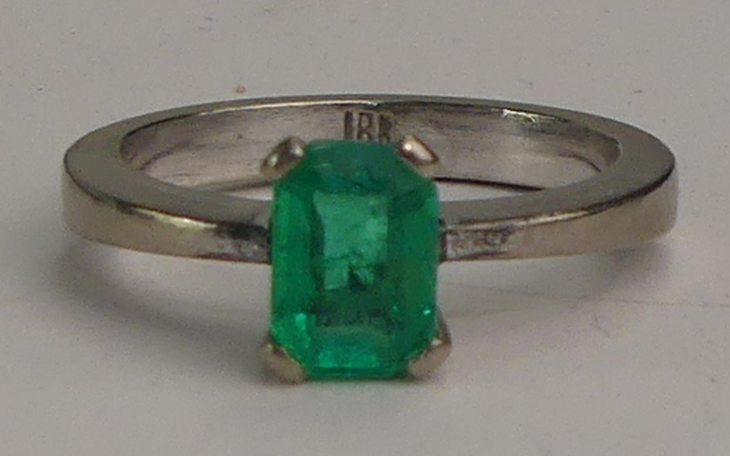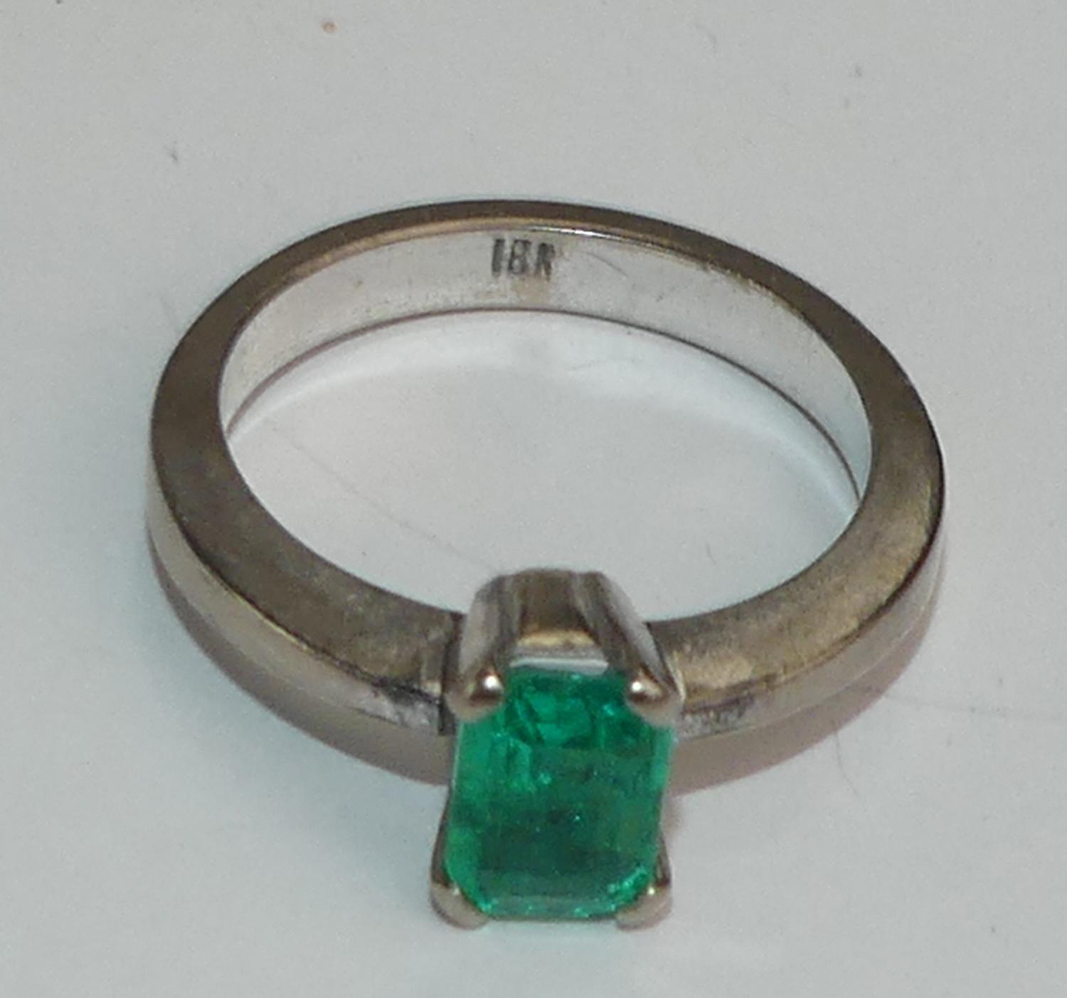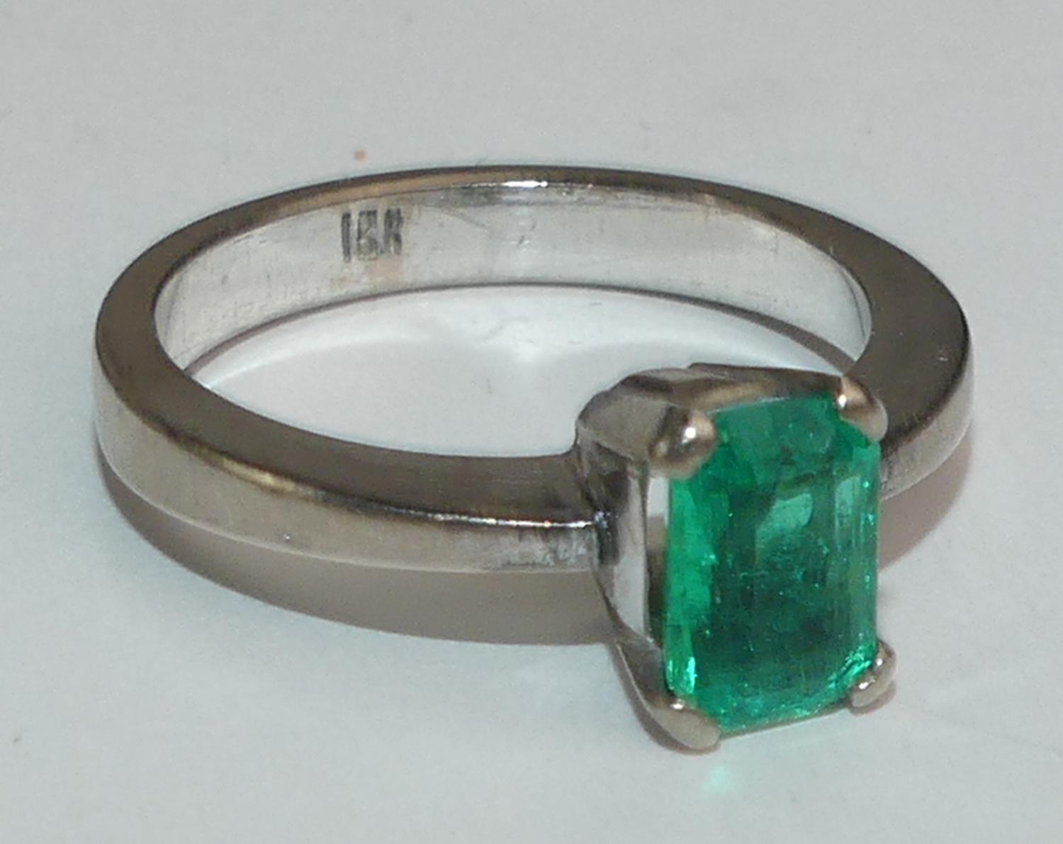 18k white gold emerald ring, size 6, weighing approx 4.9 grams