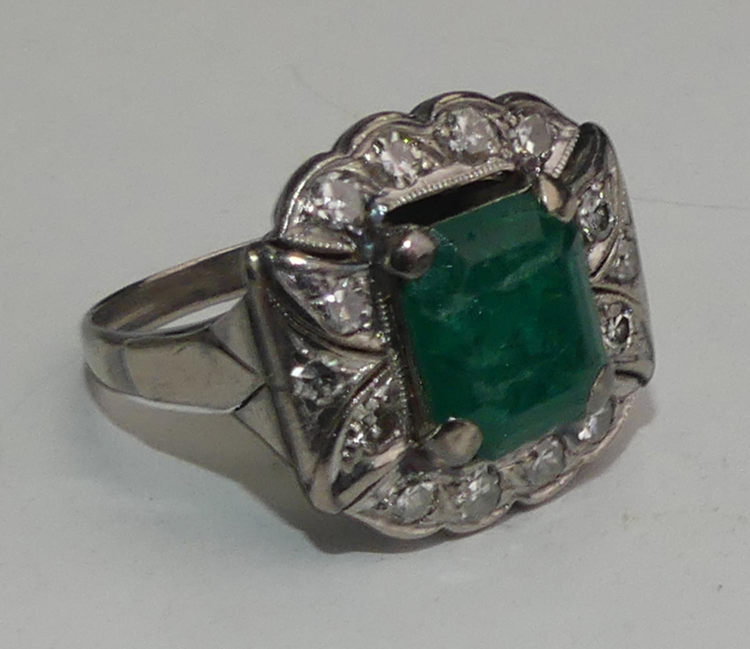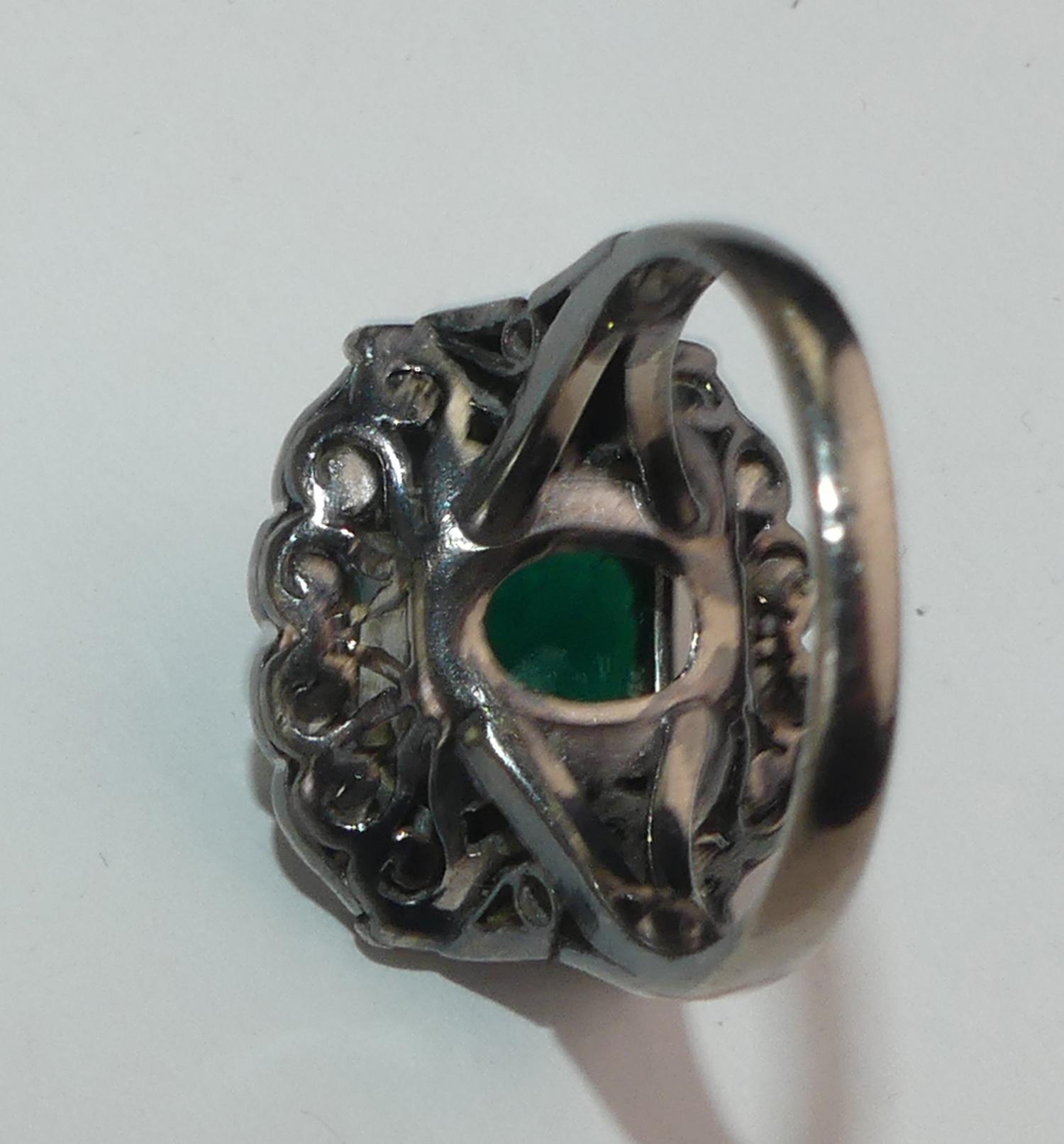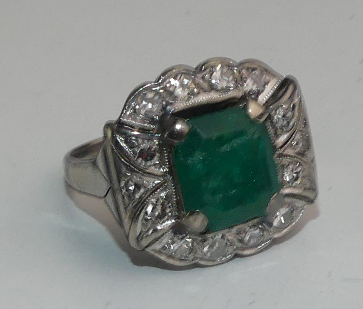 10k white gold silver emerald diamond ring, size 6 1/2