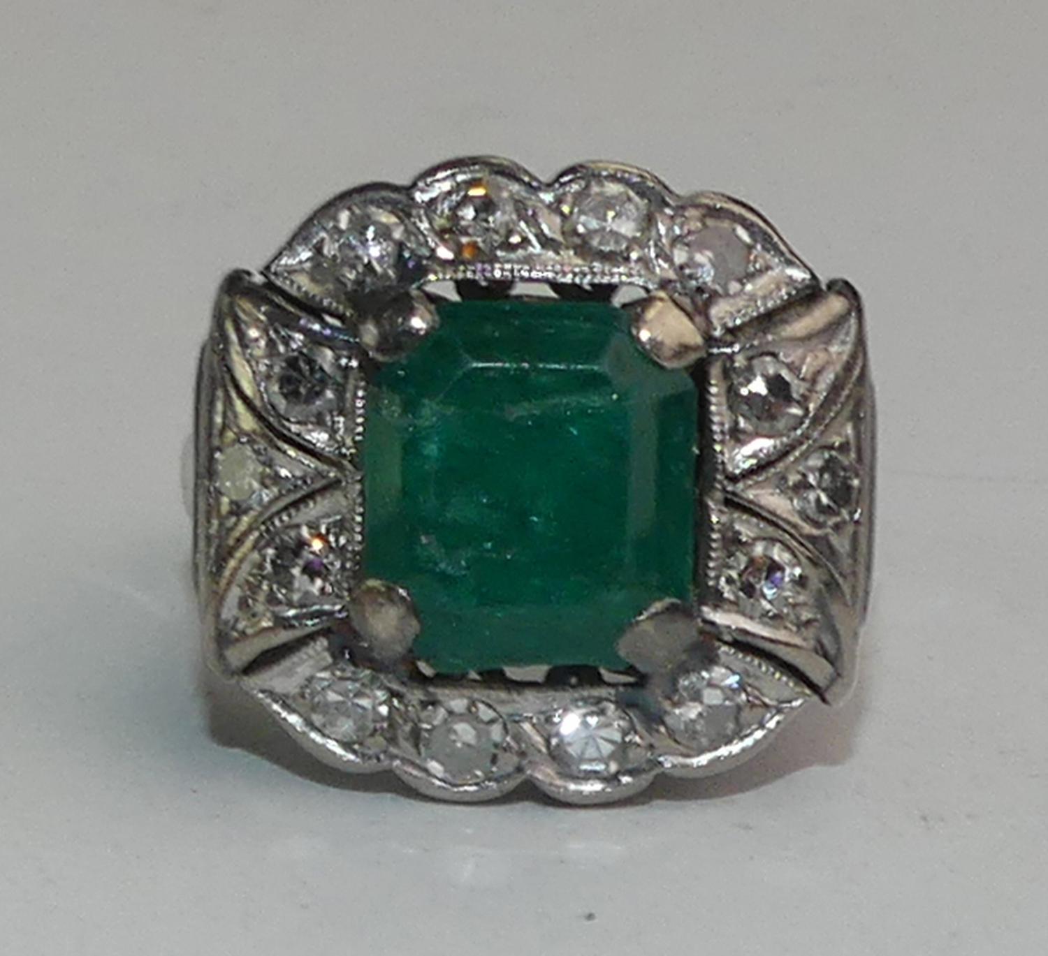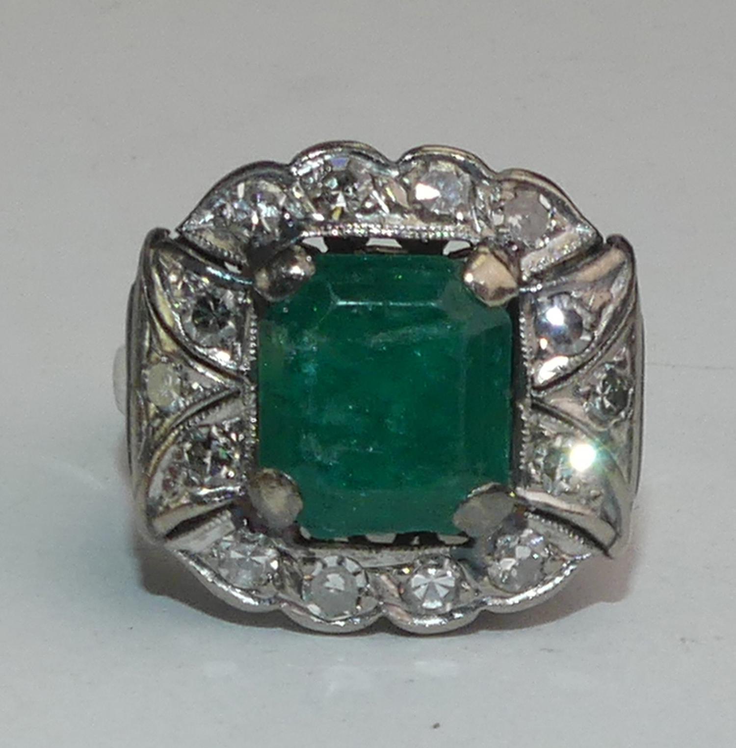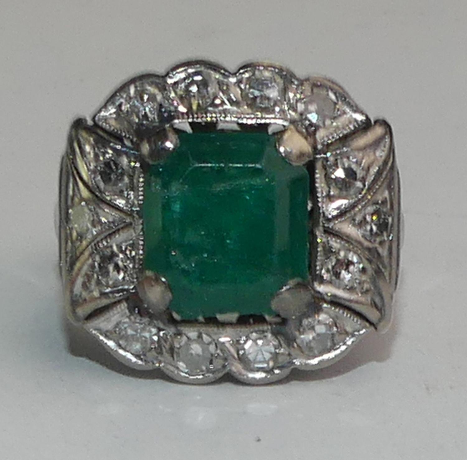 10k white gold silver emerald diamond ring, size 6 1/2