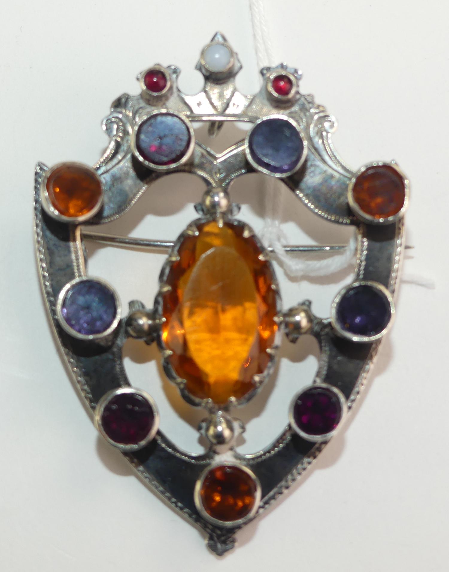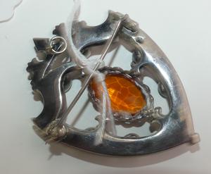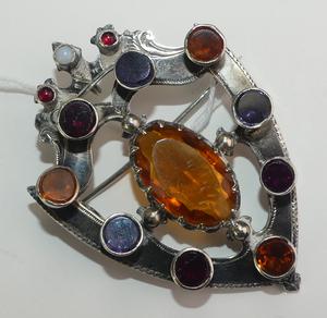 antique scottish silver agate cairngorm and amethyst brooch, pendant, 2"
