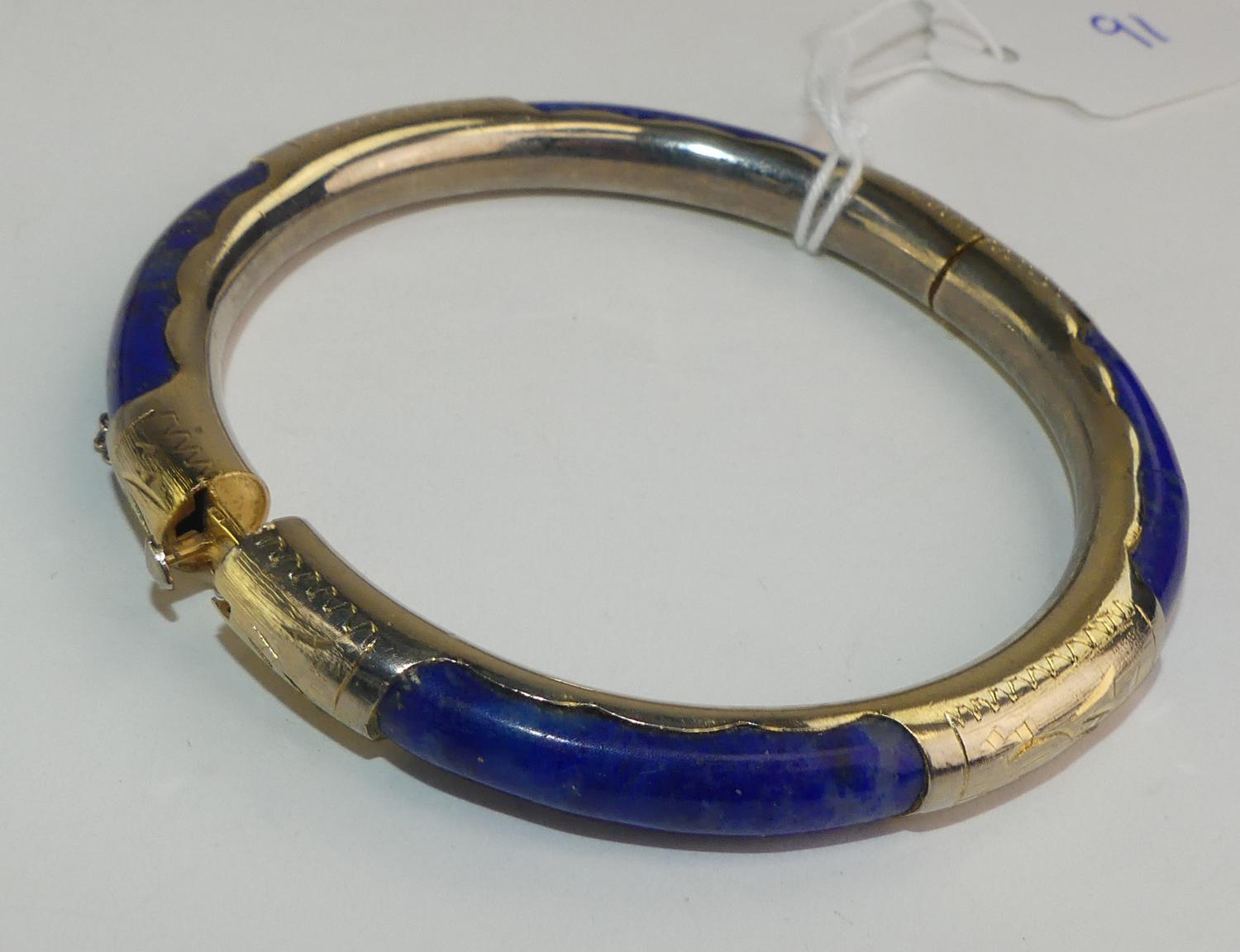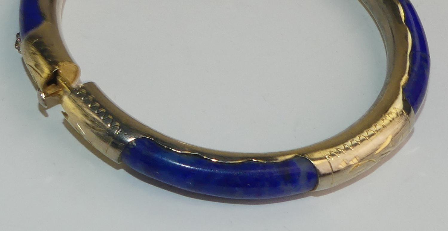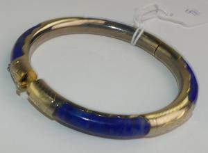 vintage asian lapis hinged bangle, diameter is 2 1/2"