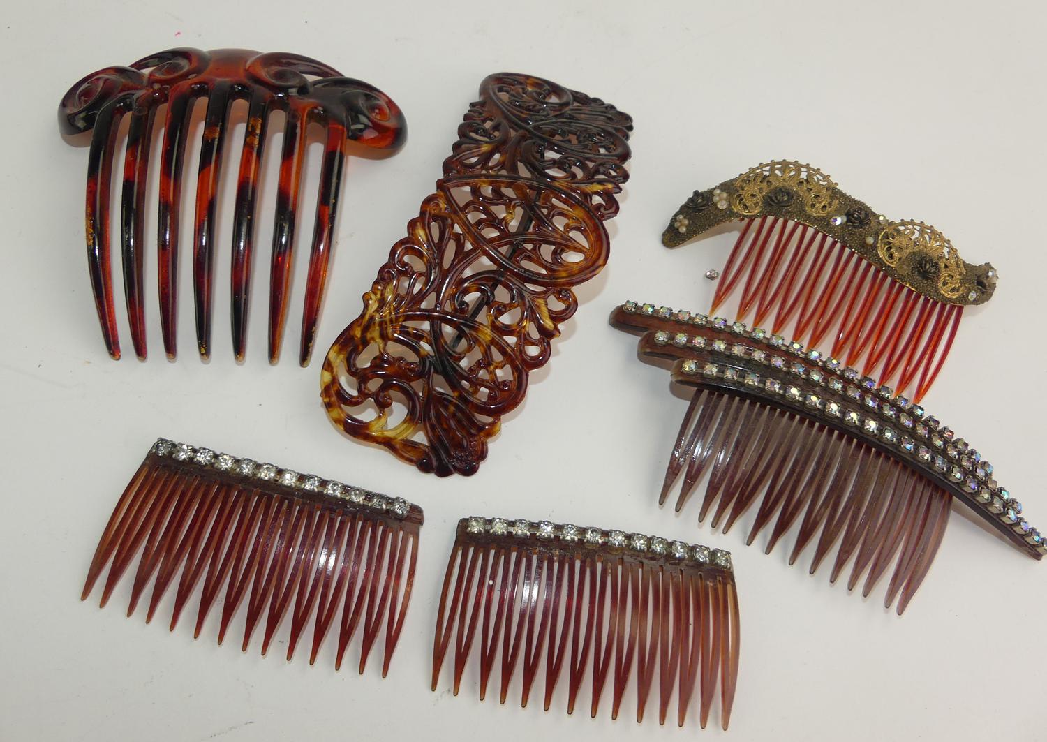 lot of art deco and later lucite rhinestone haircombs