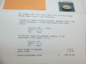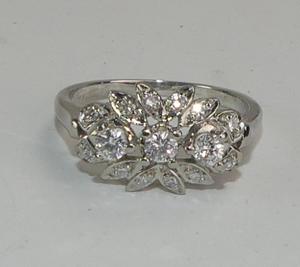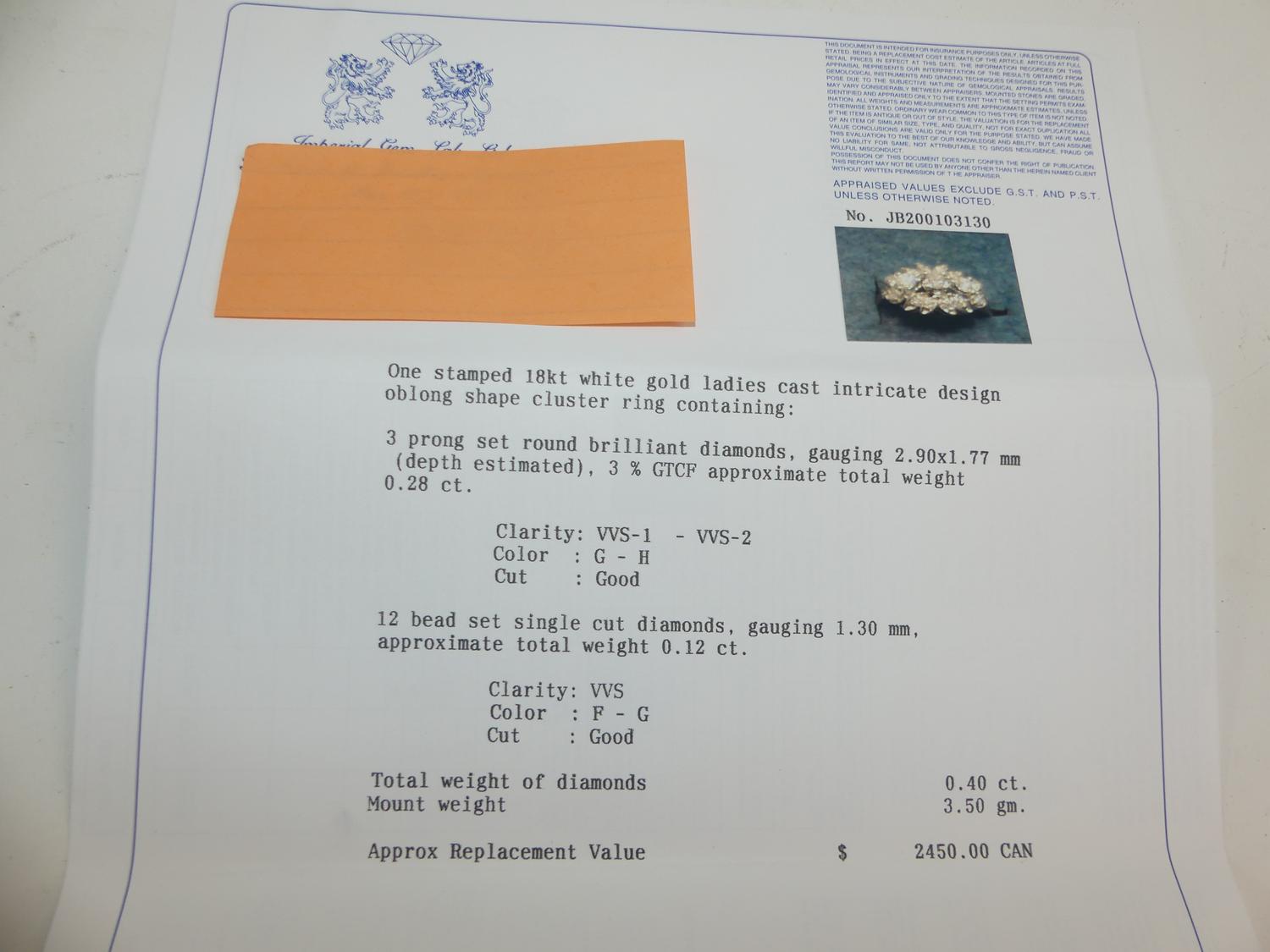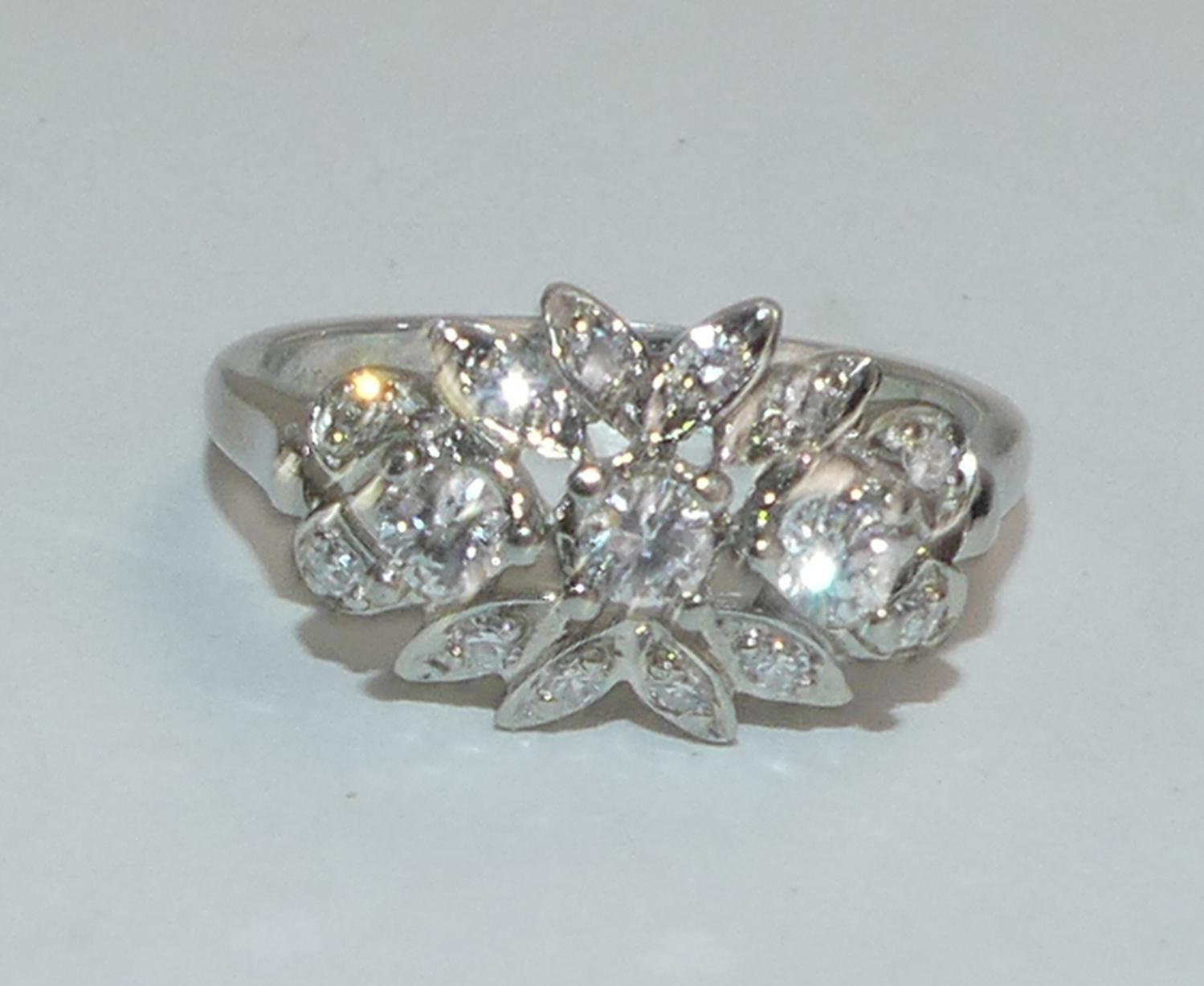 18k white gold flower ring set with 0.40cts of diamonds, size 5 3/4", weighing approx 3.5 grams, with appraisal