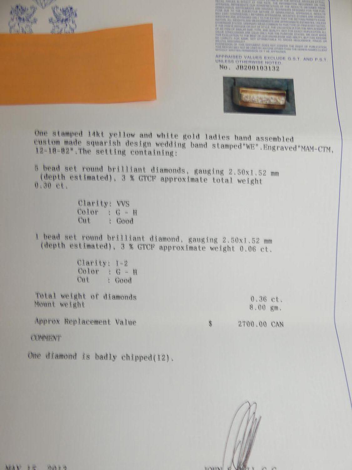 14k yellow and white gold diamond ring, 0.30cts, size 6, weighing approx 8.0grams, with appraisal