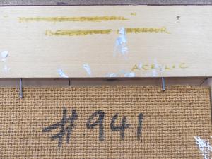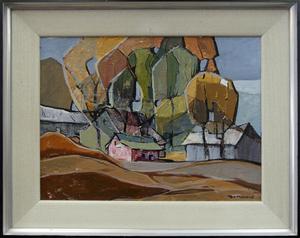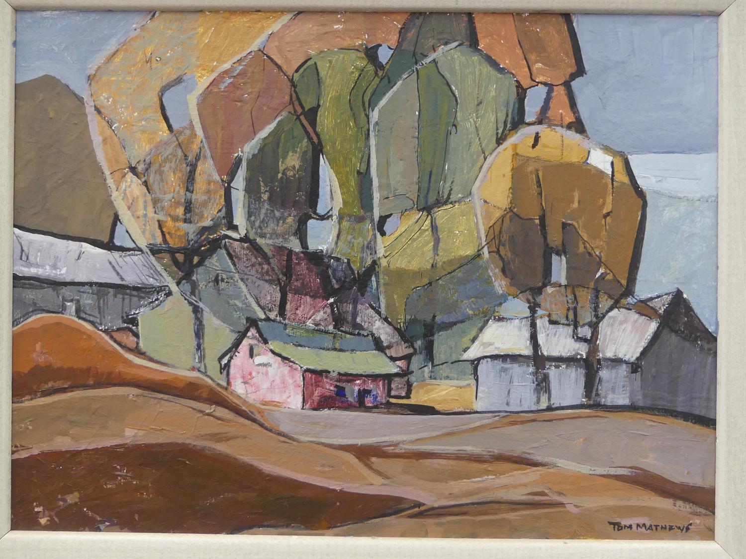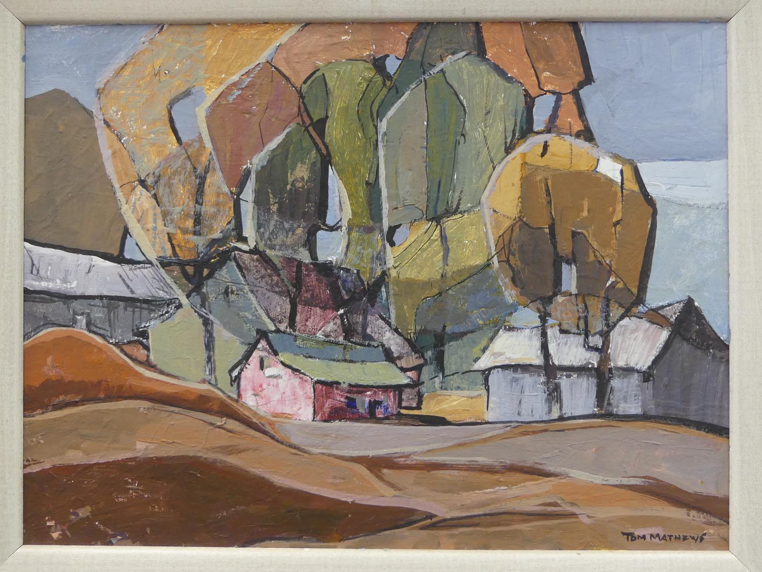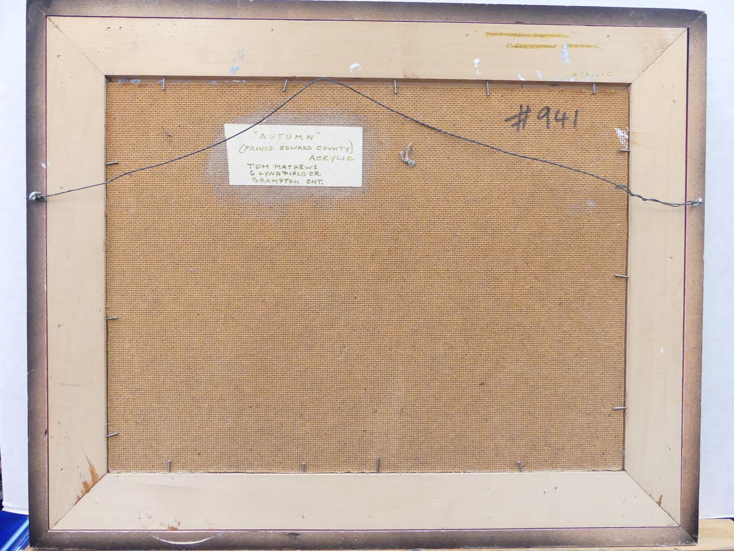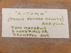 tom mathews (1920-2000), acrylic on masonite, 112" x 16", "autumn in prince edward county"