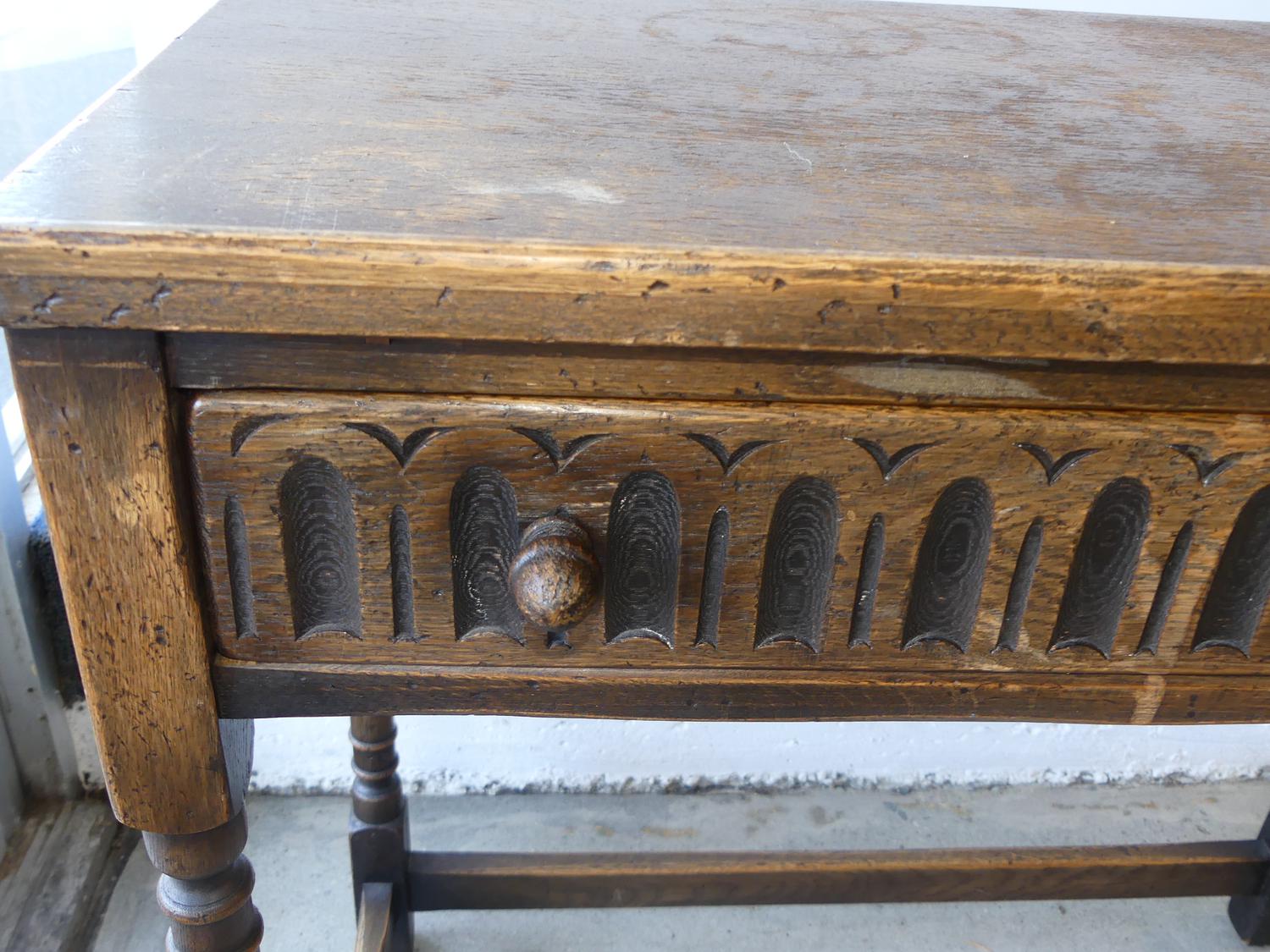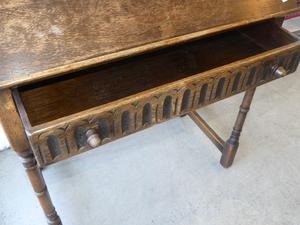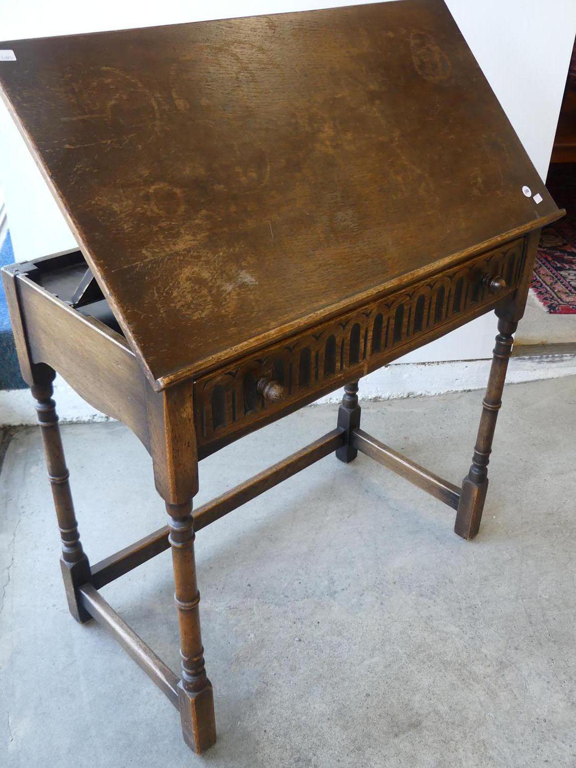 oak single drawer drafting table in the english 17th century manner, 38" x 32" x 17"
