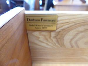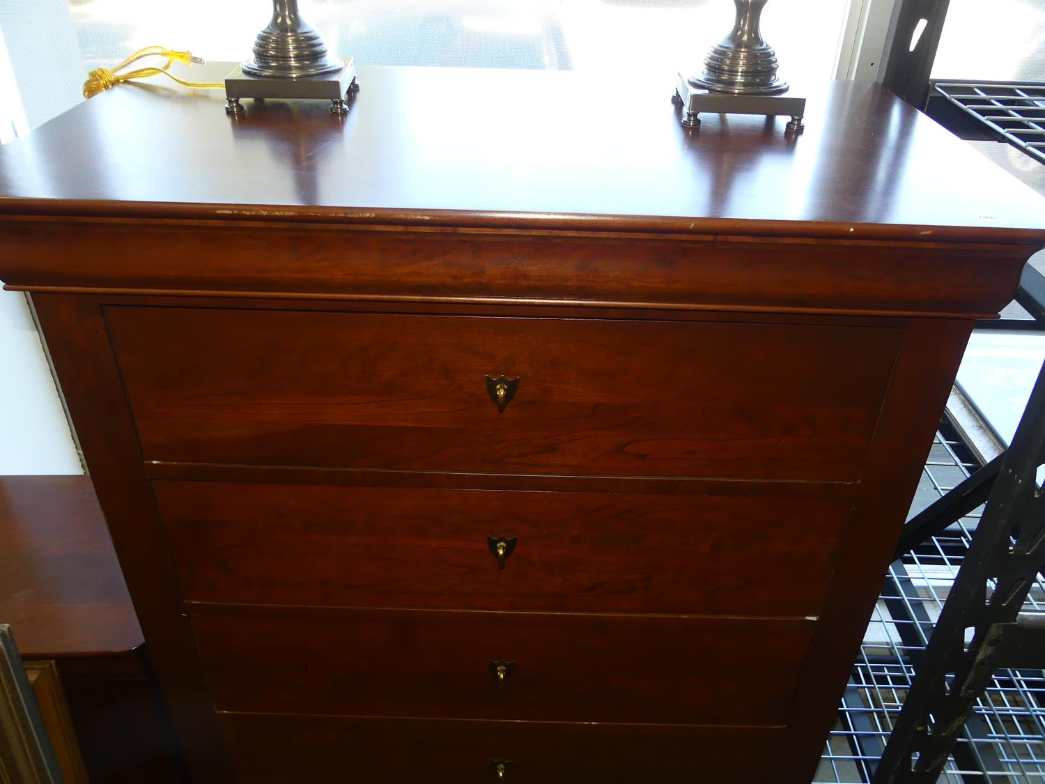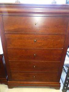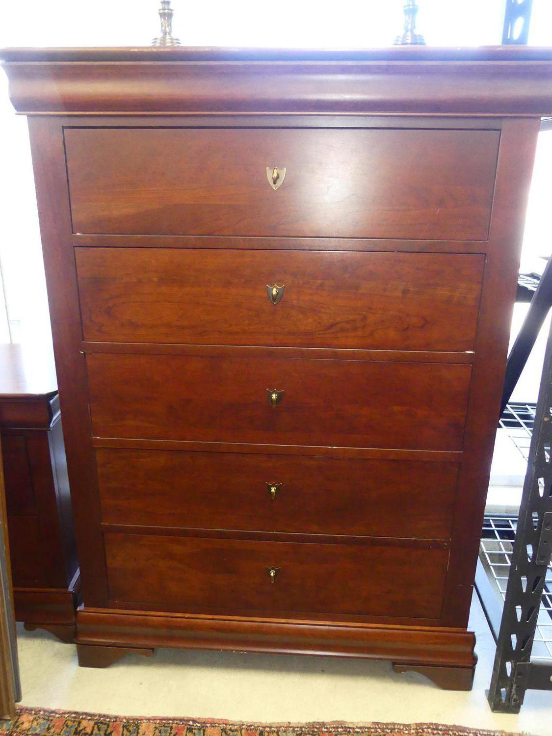 mahogany finish tall chest of drawers by durham furniture, 54" x 39 1/2" x 22"