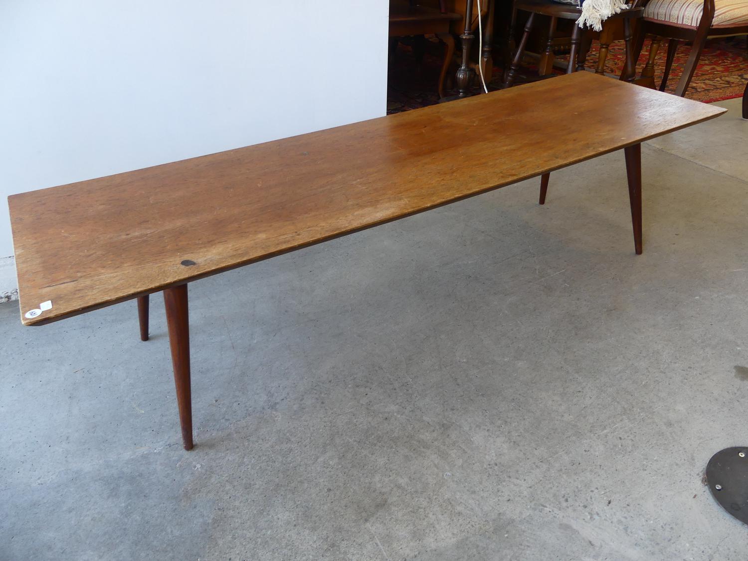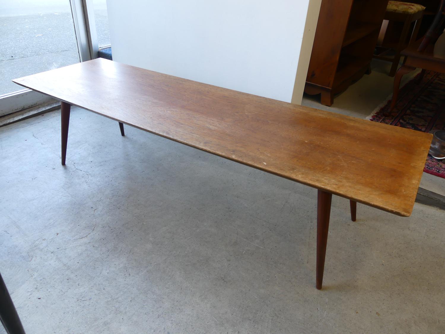 mid century teak coffee table, 14 1/2" x 60" x 18"