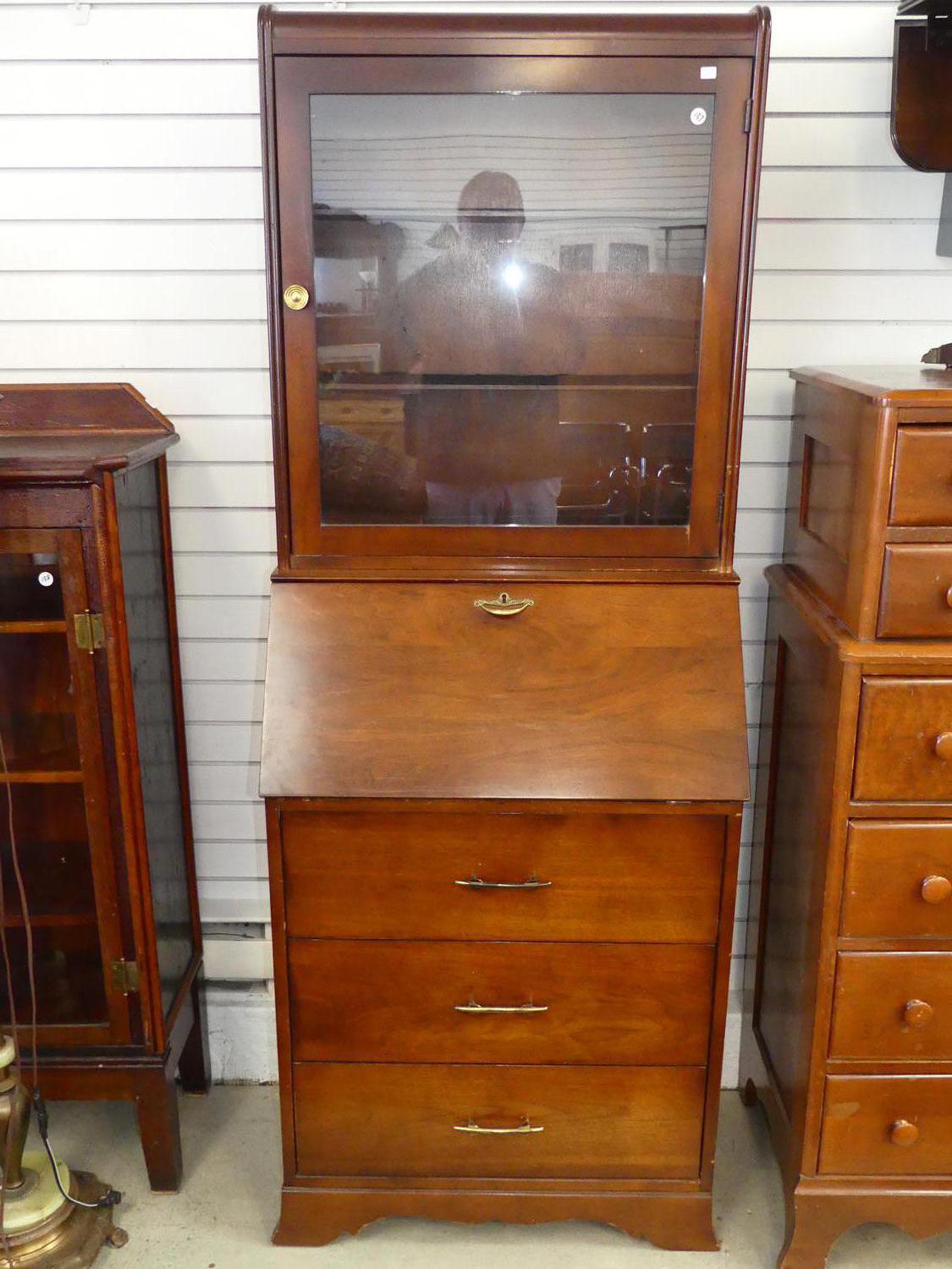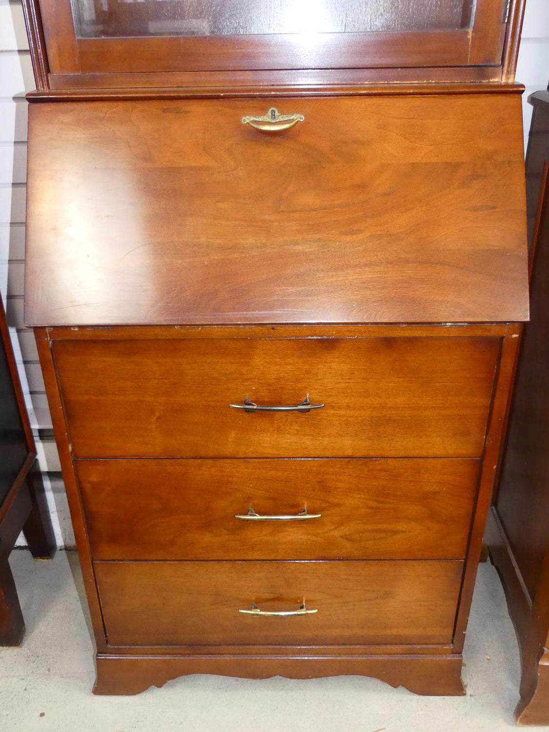 walnut secretaire bookcase, cica 1940, 69 1/2" x 26" x 16"
