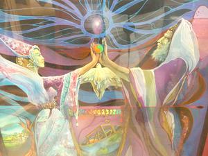 david maclagan (1932-2014), cel-vinel on board, 29" x 21", "untitled - fantasy scene"