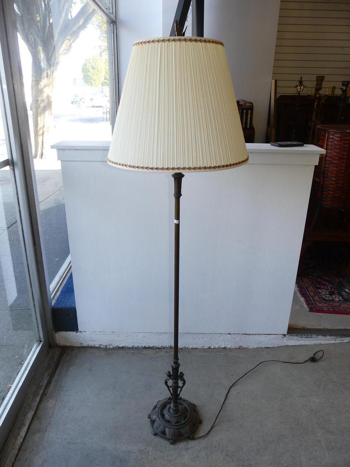 early 20th century brass floor lamp, ht 64"