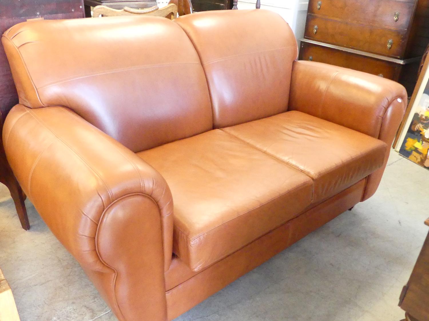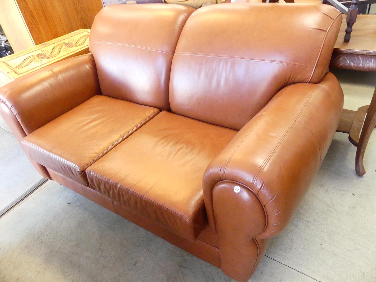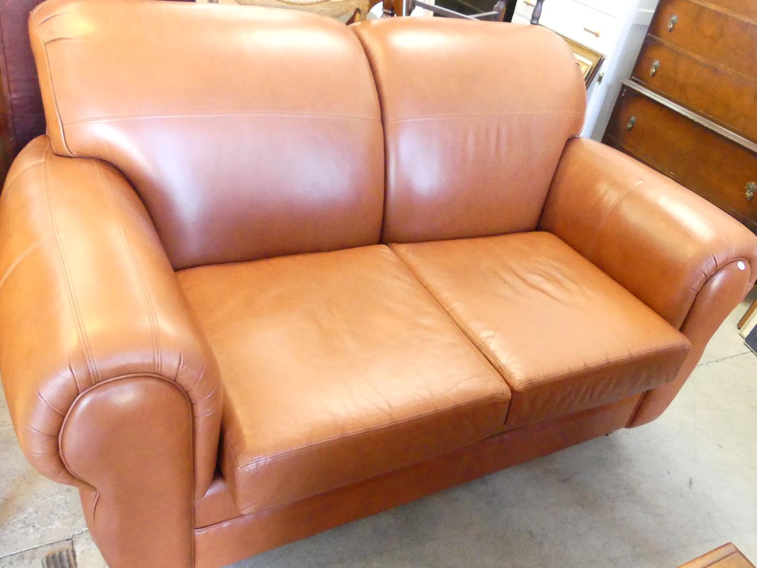 brown "leather" loveseat, 37" x 66" x 38"