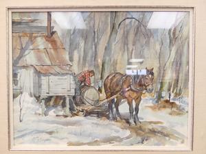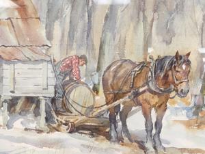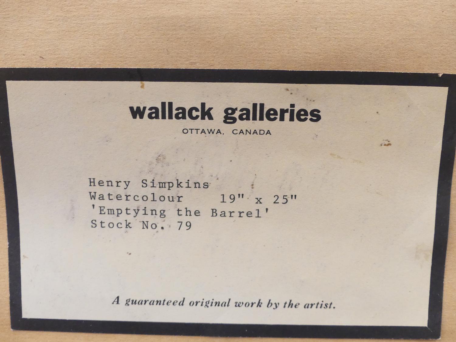 henry john simpkins (1906-1995), watercolour, 20" x 25", "emptying the barrel"