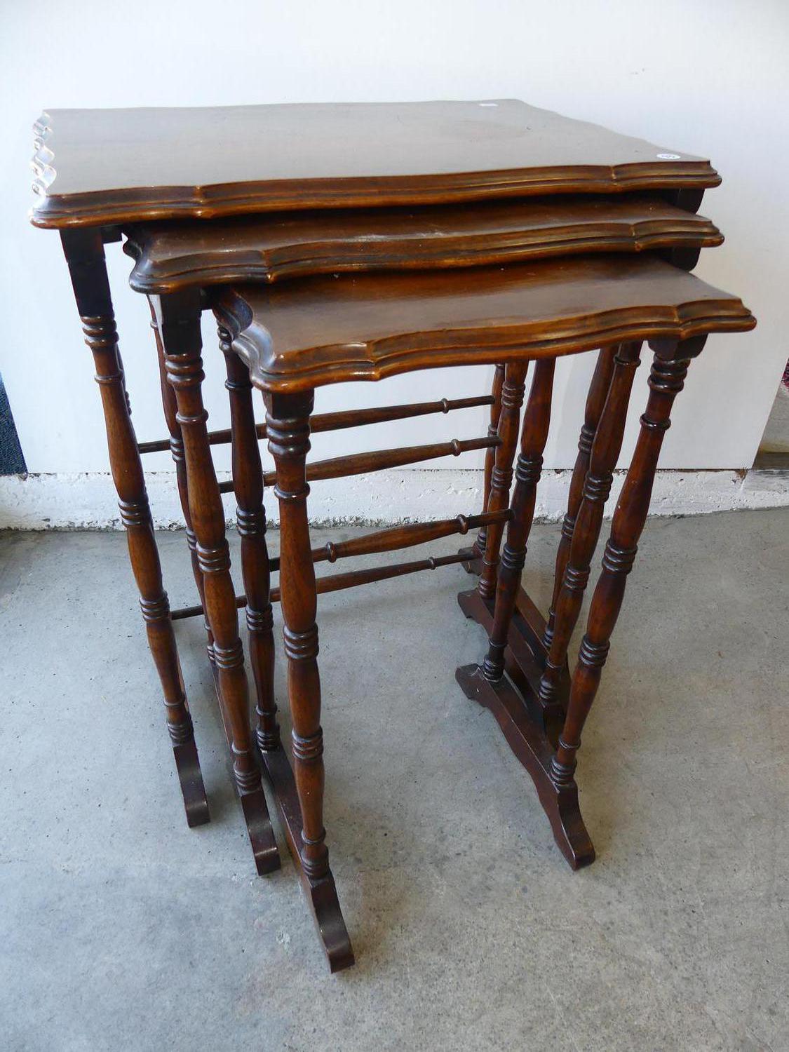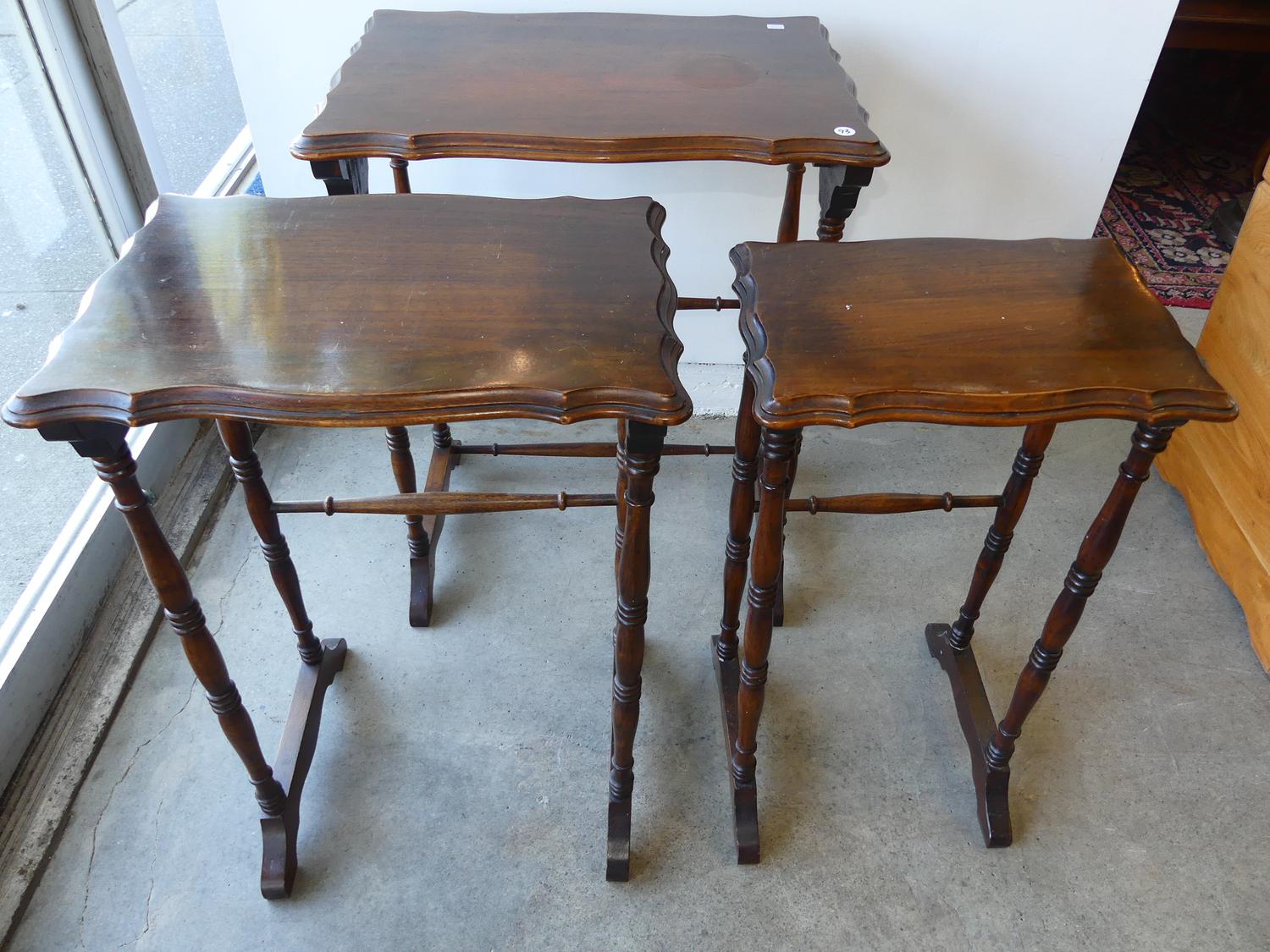 nest of three tables, mid 20th century, 27 1/2" x 22" x 16"