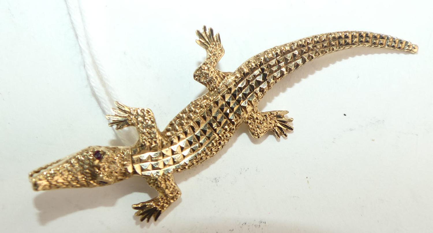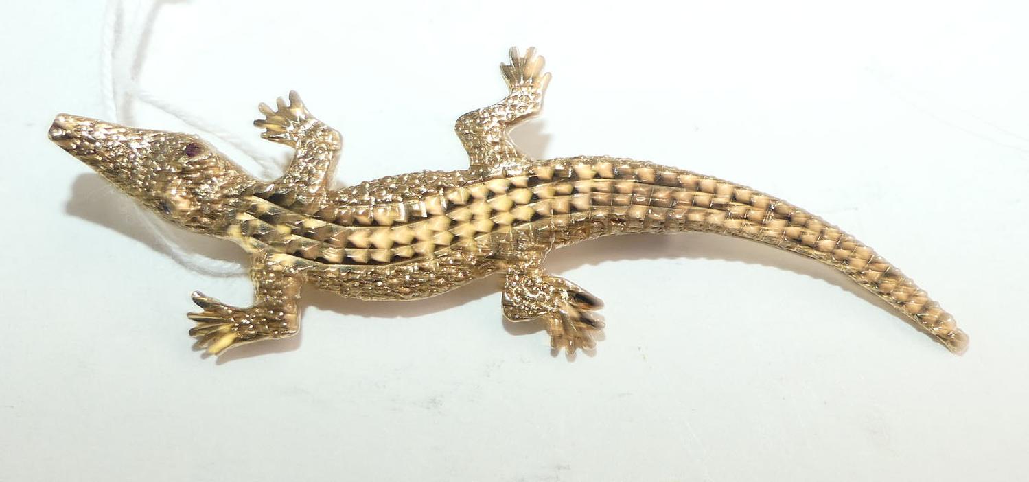 hallmarked 375 pink gold crocodile brooch, 5.9 grams